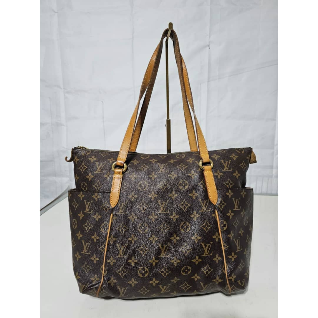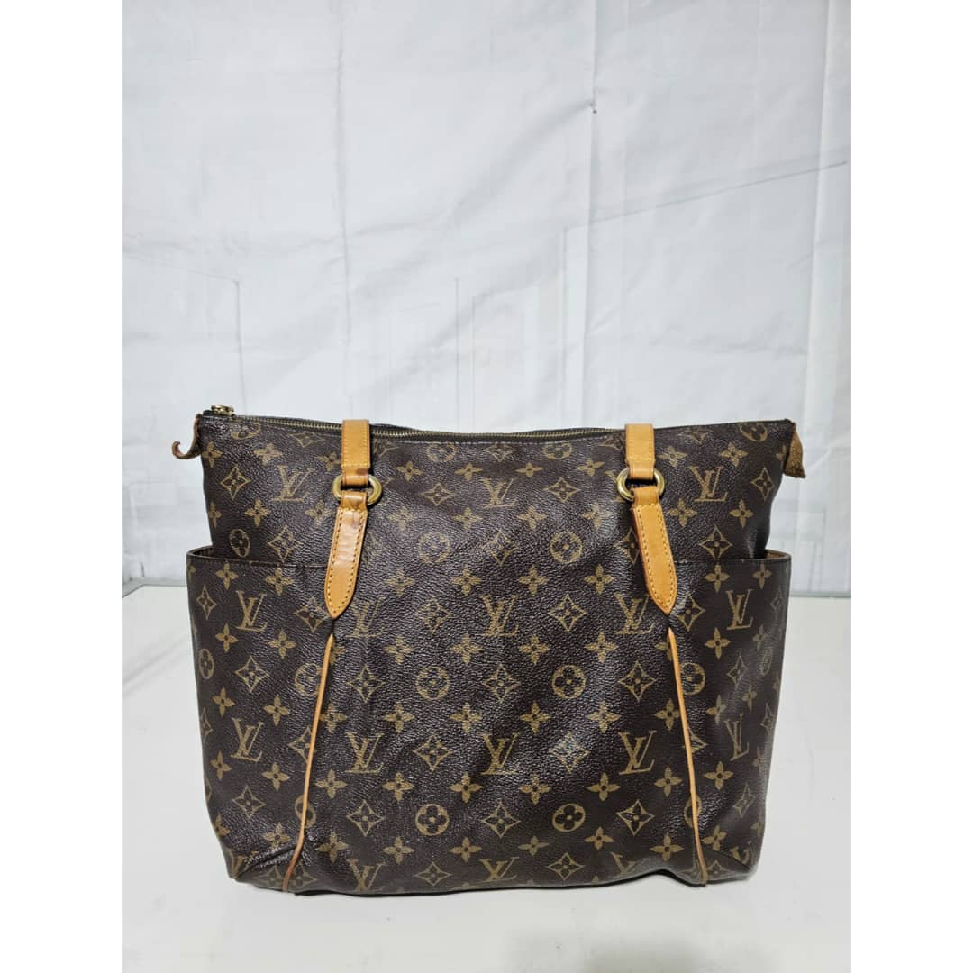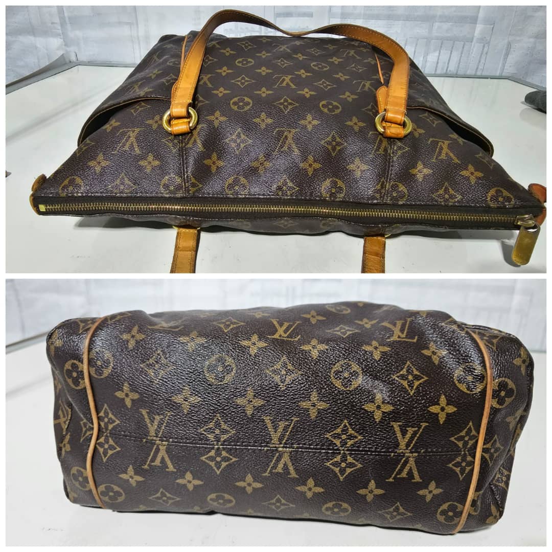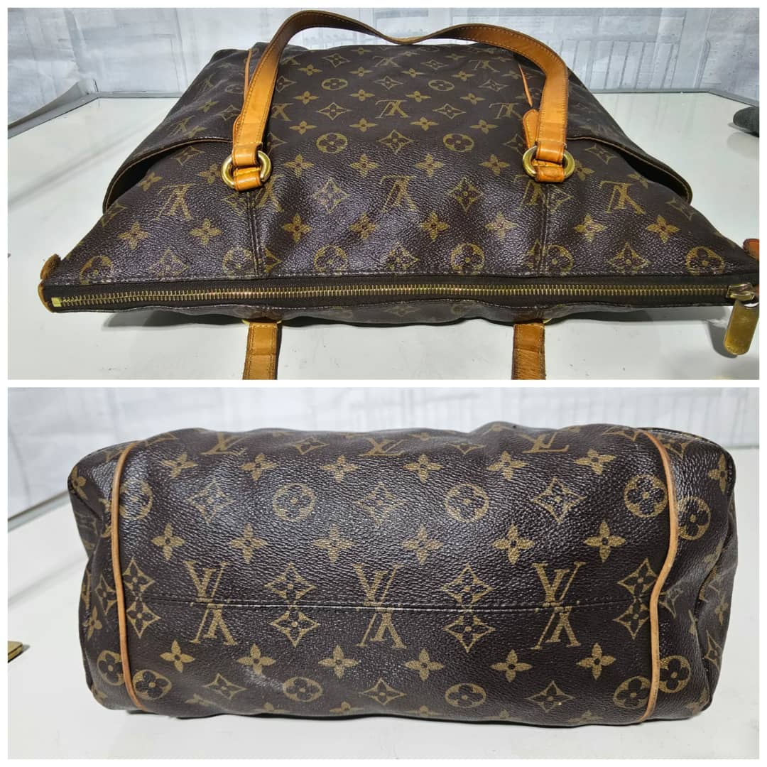 This authentic LOUIS VUITTON Monogram Totally MM is in it’s good pre-owned condition. The exterior leather is clean and beautiful. The interior is clean. The vachatte leather is clean, the base edge of the vachatte leather shows light honey patina on it. Gold hardware.