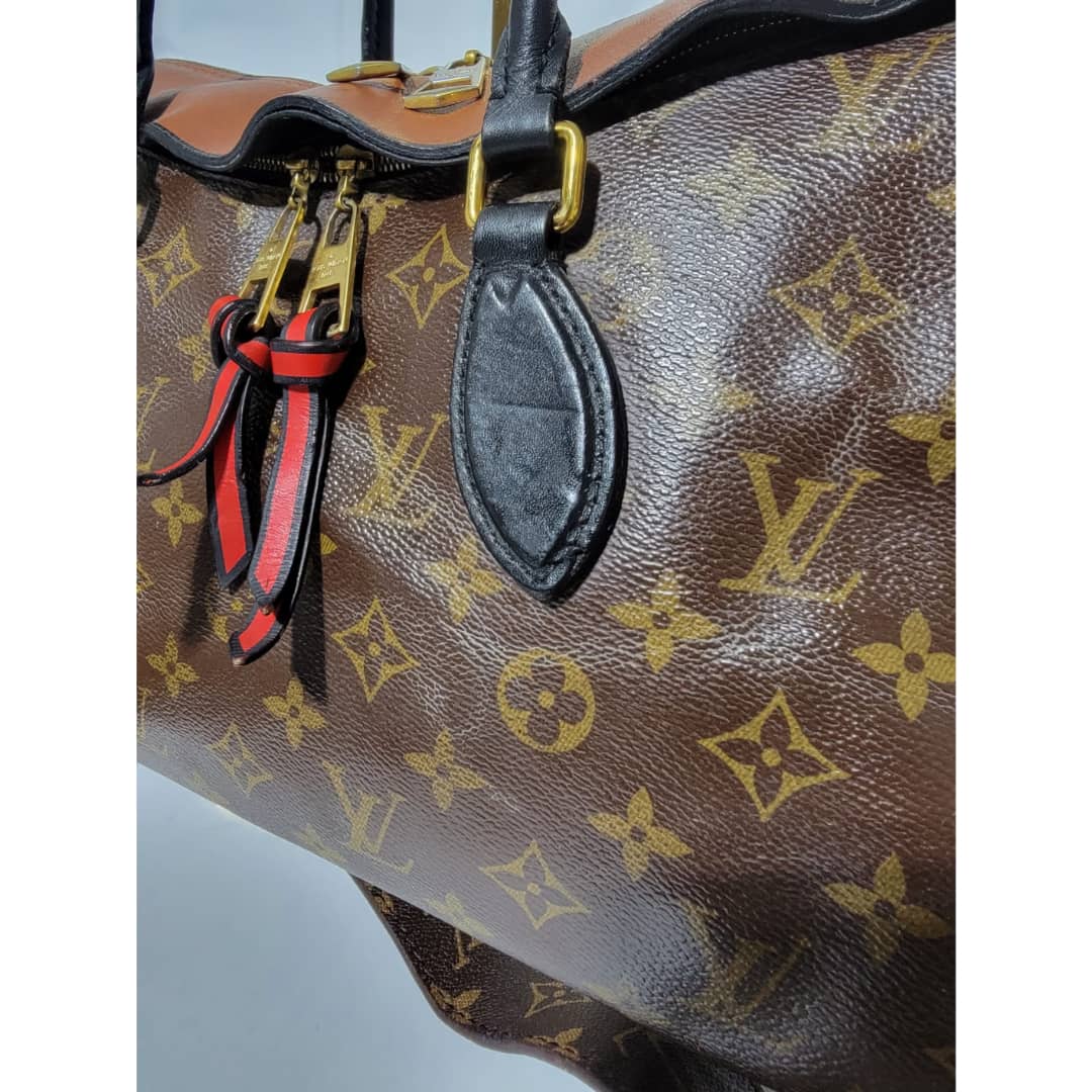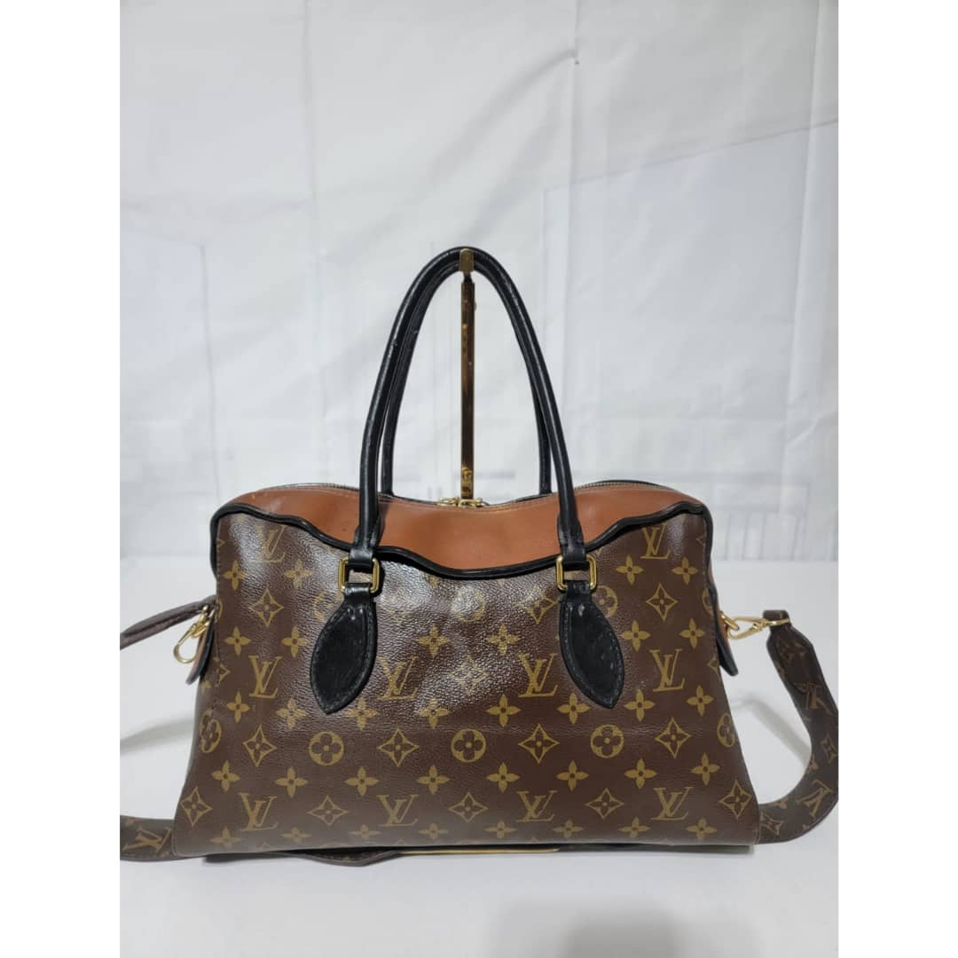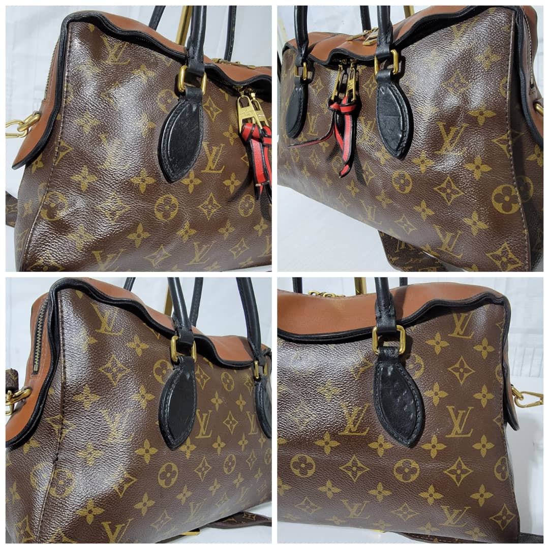 This authentic Louis Vuitton monogram tuileries tote bag Brown is in it’s good pre-owned condition. The exterior canvas and leather is clean and beautiful. Interior is clean. Gold hardware shows little scratches. The strap is a generic strap. There are little scratches on the brown leather that runs on top across the bag (Kindly look at pictures above).