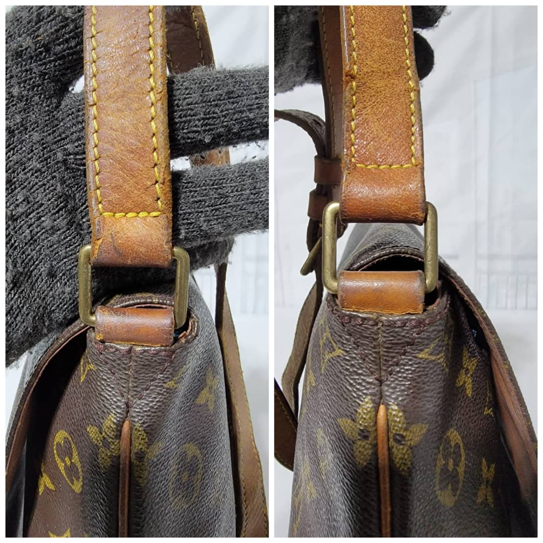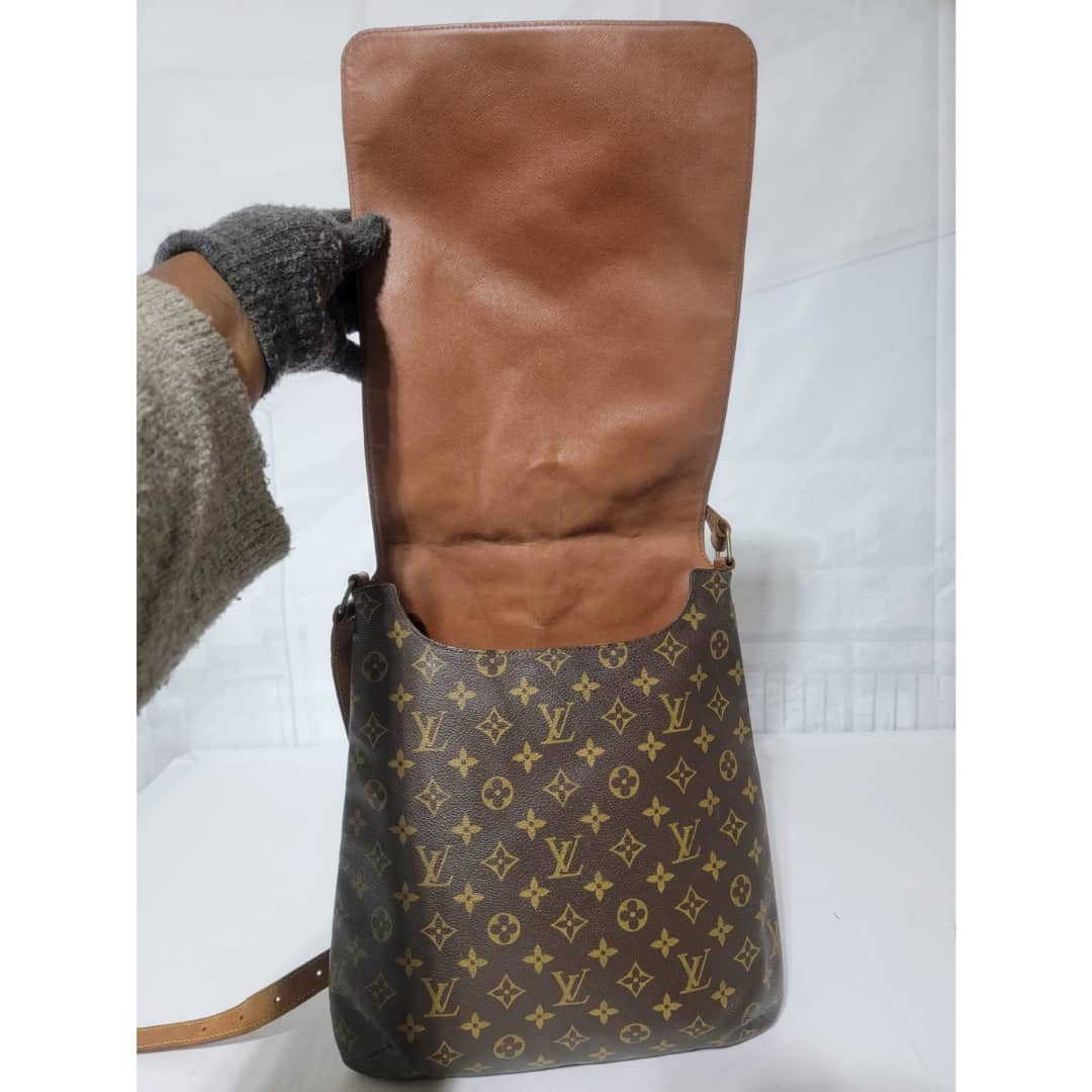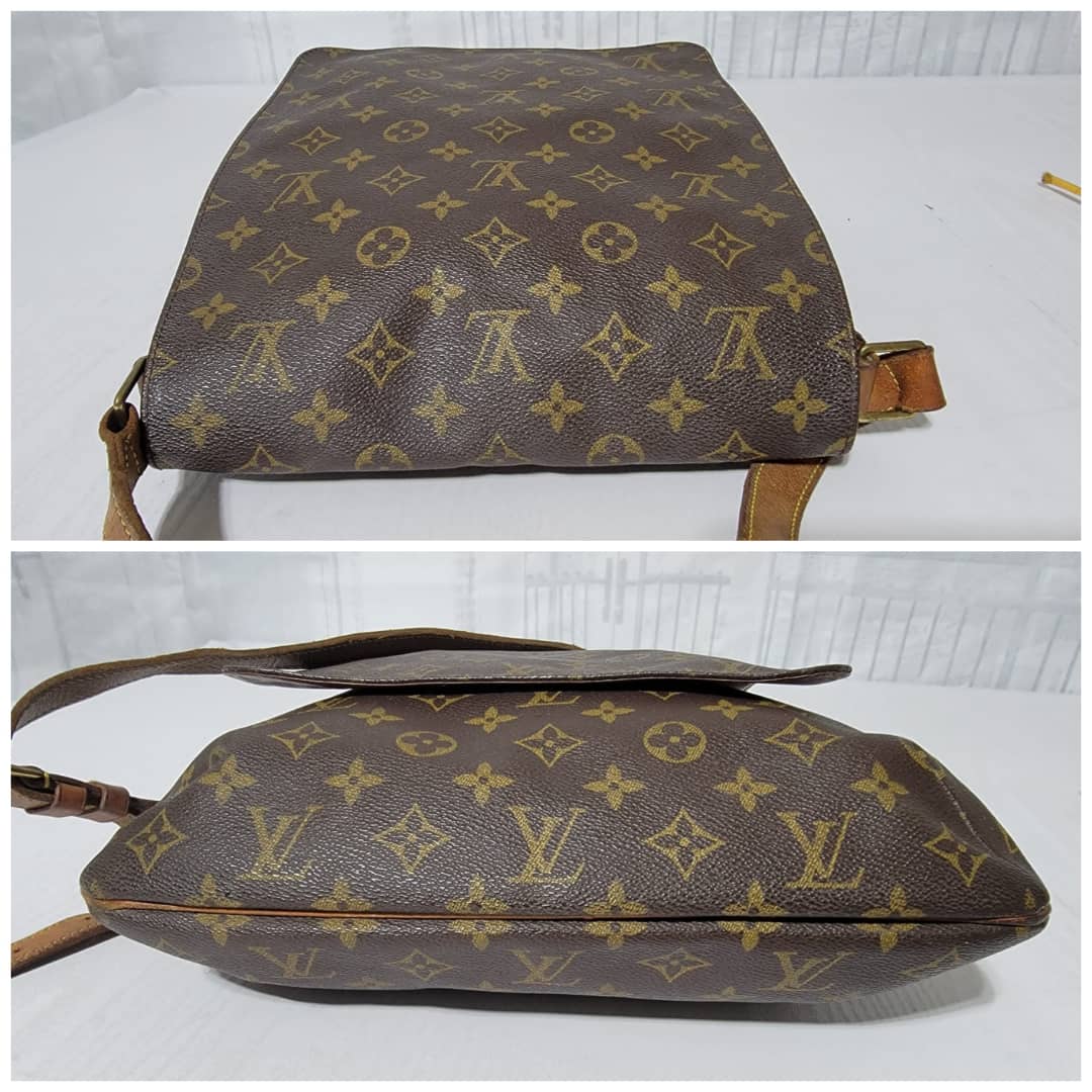 This authentic Louis Vuitton Musette Salsa GM Monogram Crossbody/ Shoulder bag is in it’s good pre-owned condition. The exterior coated canvas is clean and beautiful. The vachatte leather strap shows honey patina wear watermark (Kindly look at pictures above). Interior is clean. The vachatte leather trim that runs by the side of the bag also shows honey patina wear.