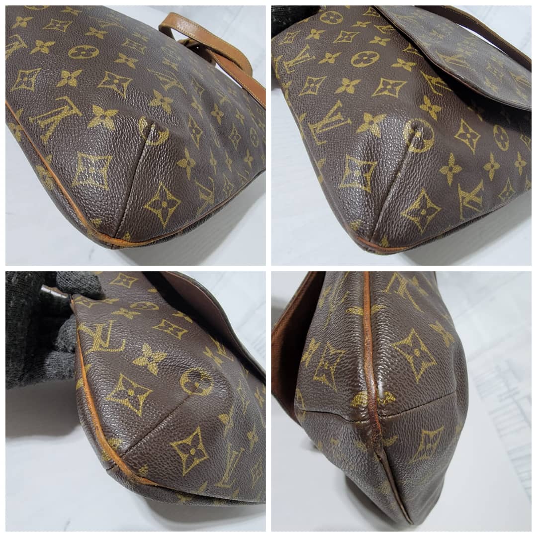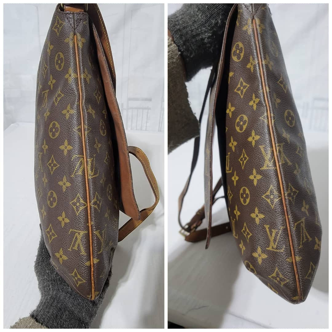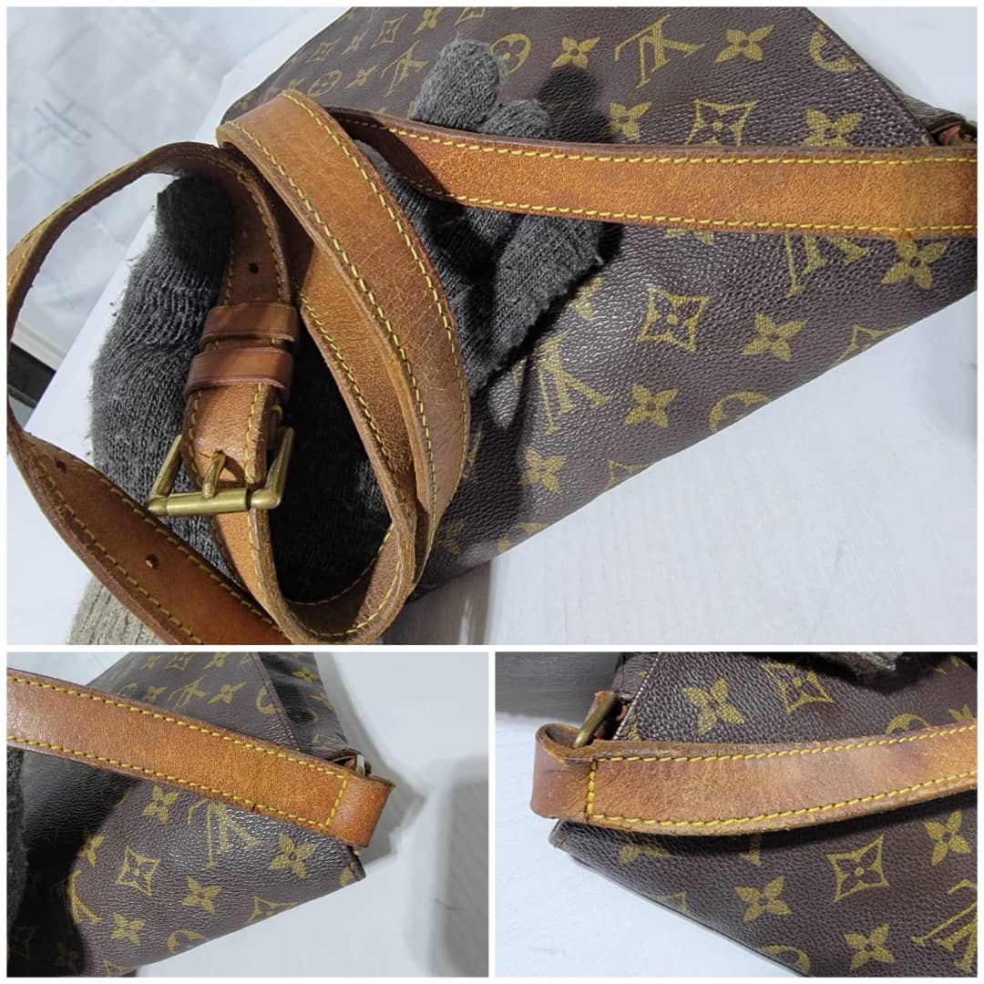 This authentic Louis Vuitton Musette Salsa GM Monogram Crossbody/ Shoulder bag is in it’s good pre-owned condition. The exterior coated canvas is clean and beautiful. The vachatte leather strap shows honey patina wear watermark (Kindly look at pictures above). Interior is clean. The vachatte leather trim that runs by the side of the bag also shows honey patina wear.