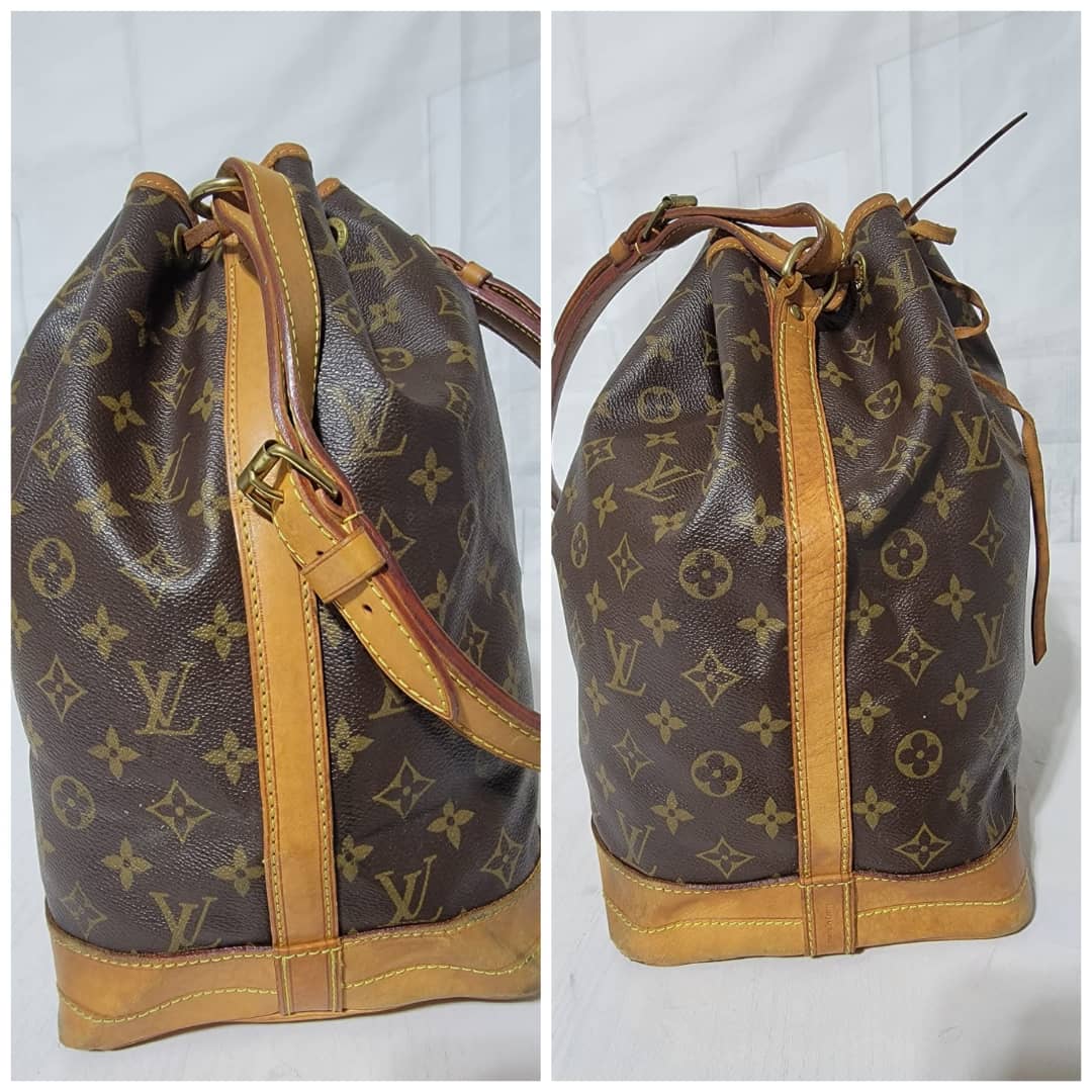 This authentic LOUIS VUITTON NOE GM BUCKET CANVAS MONOGRAM BAG BROWN is in it’s good pre-owned condition. The LV monogram coated canvas is clean and beautiful. Interior is clean. The base edges shows some sign of scratches and little scuffing to the base corner edges. The strap is good. Hardware shows little scratches. The drawstring rope shows some sign of wear like watermark honey patina (Kindly look at pictures above).