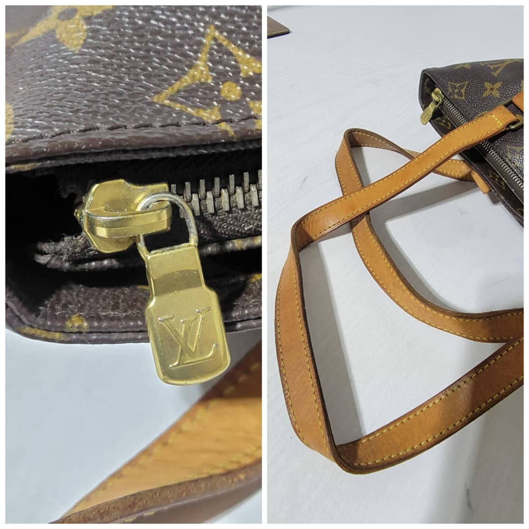 This authentic Louis Vuitton Piano Tote Bag Brown is in it’s good pre-owned condition. The exterior is clean and beautiful. The interior is clean. The vachatte leather that runs across the bag and the straps shows honey patina wear (Kindly look at pictures above)
