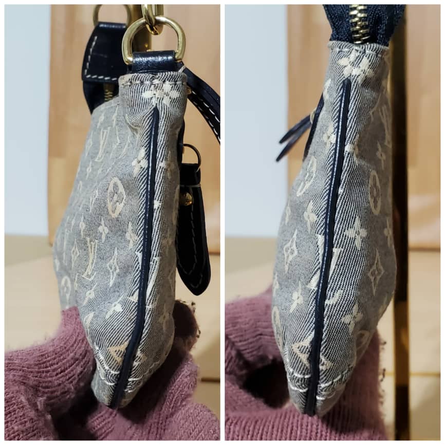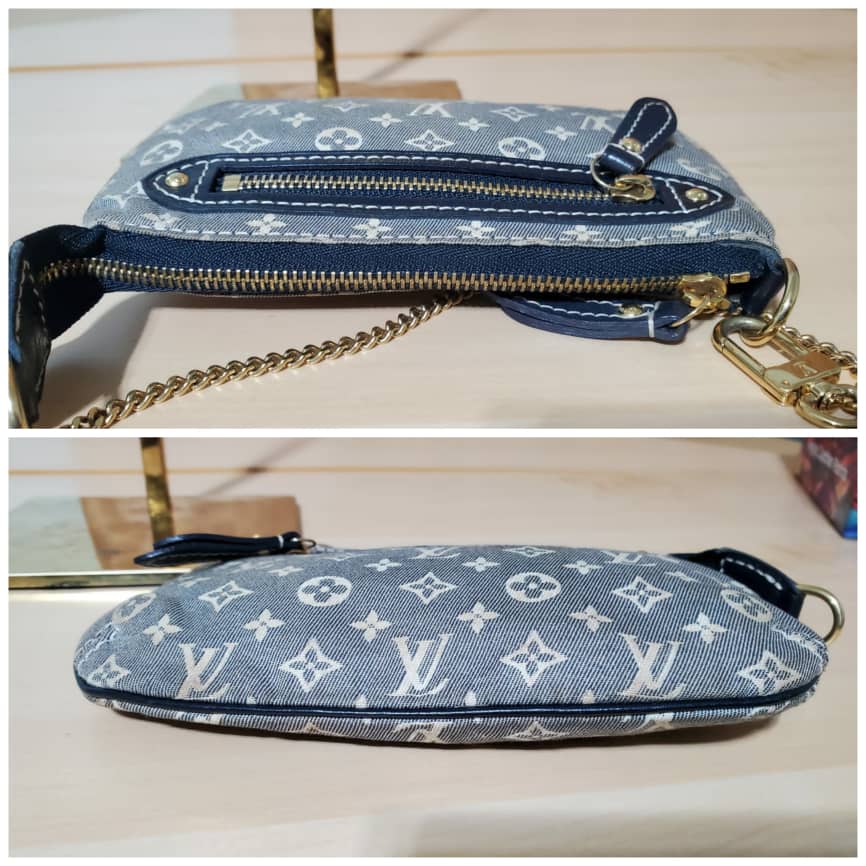 This authentic Louis Vuitton Pochette Accessoires Monogram Idylle Mini is in it’s pre-owned good condition. The exterior canvas is clean and beautiful. Interior is clean. Beautiful mini pochette.