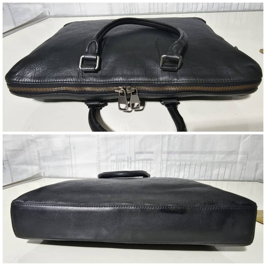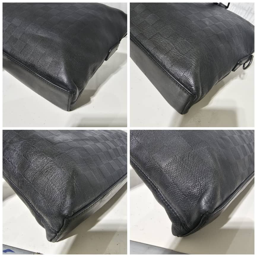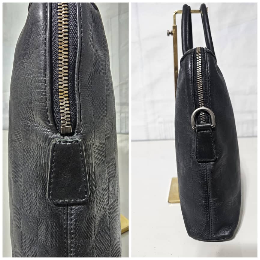 This authentic Louis Vuitton Porte-Documents Jour Bag Damier Infini Leather is in it’s good pre-owned condition. The exterior leather is clean and beautiful. The interior is clean. The bag has no strap and one side ring of the bag used for strap is broken (Kindly refer to pictures above).