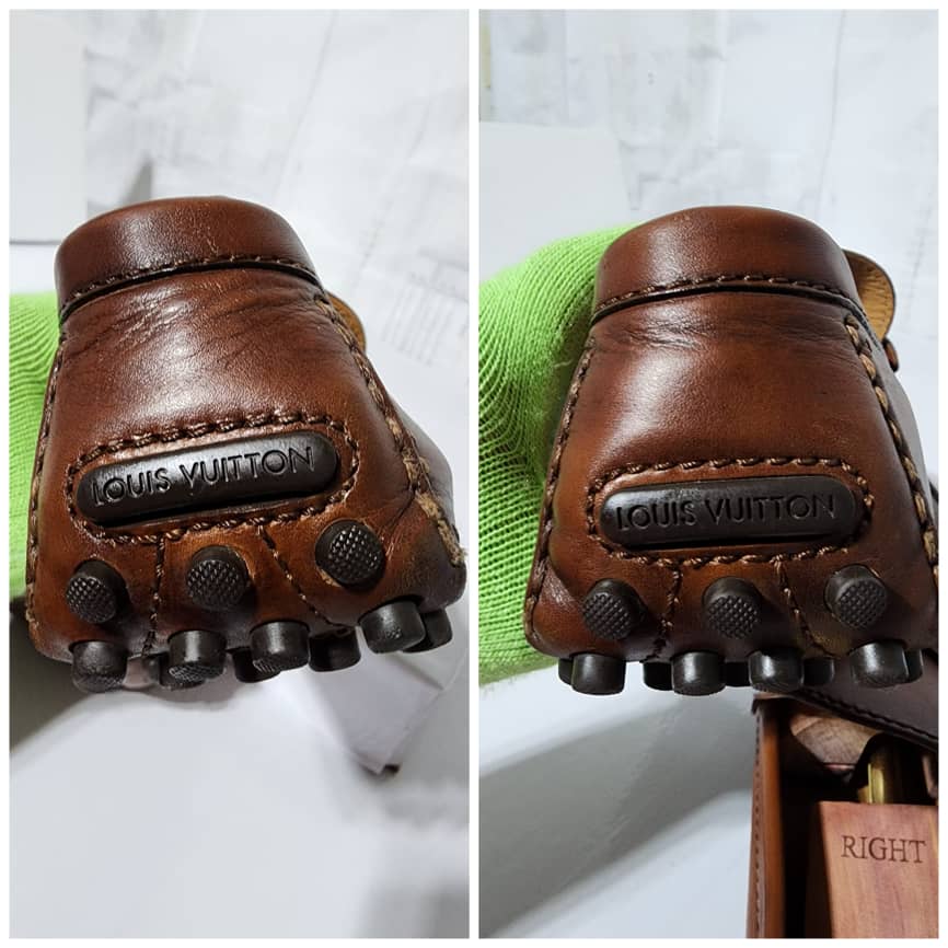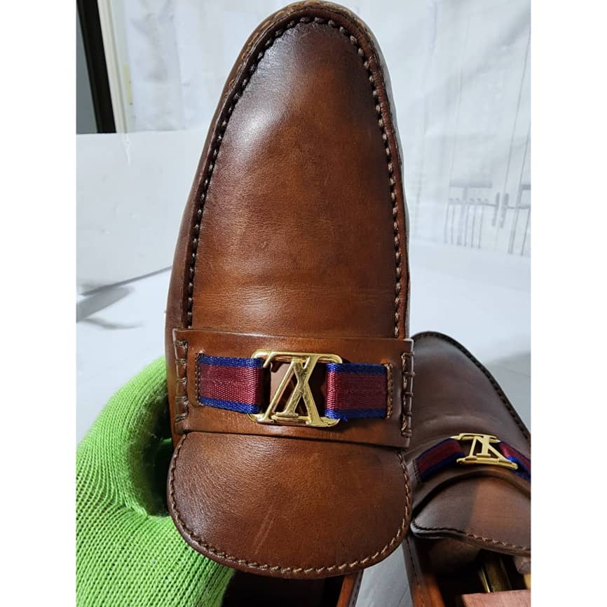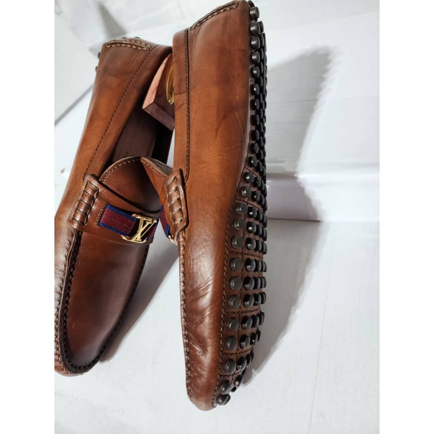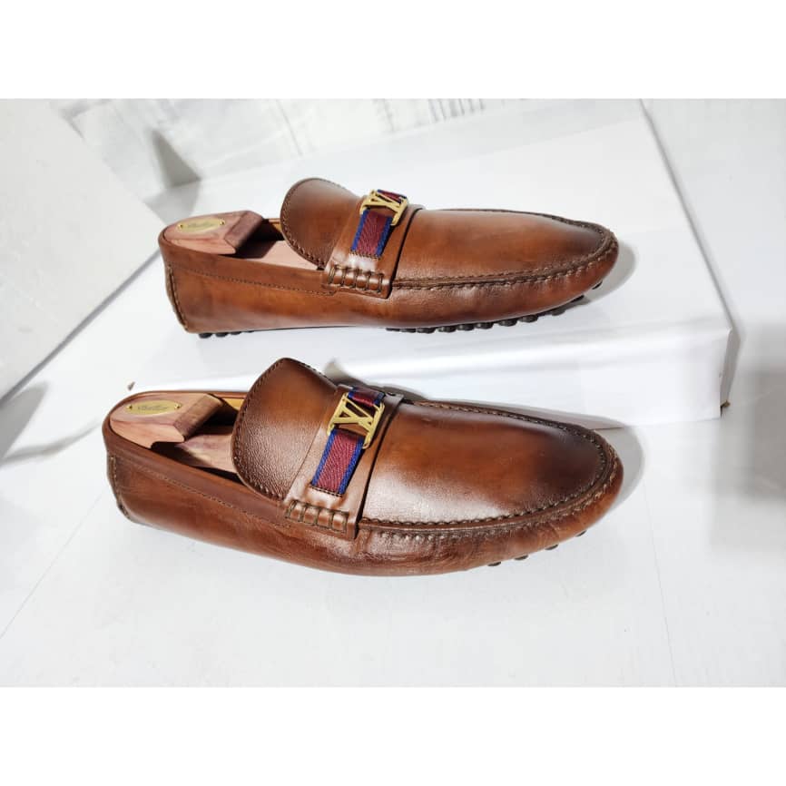 This authentic Louis Vuitton Cognac Leather Hockenheim Slip On Loafers Brown Size 11 is in it’s good pre-owned condition. The cognac brown leather is clean and beautiful, it has a two tone shade of brown to it, there are little scratches to the leather. The interior is clean. Kindly look at pictures above
