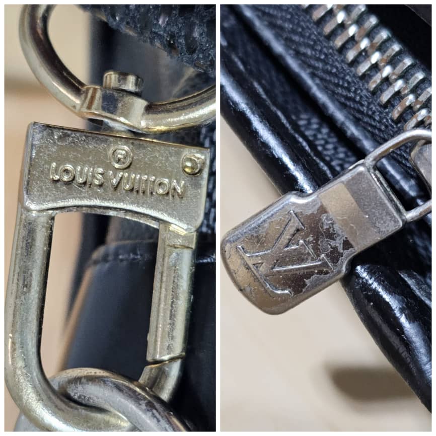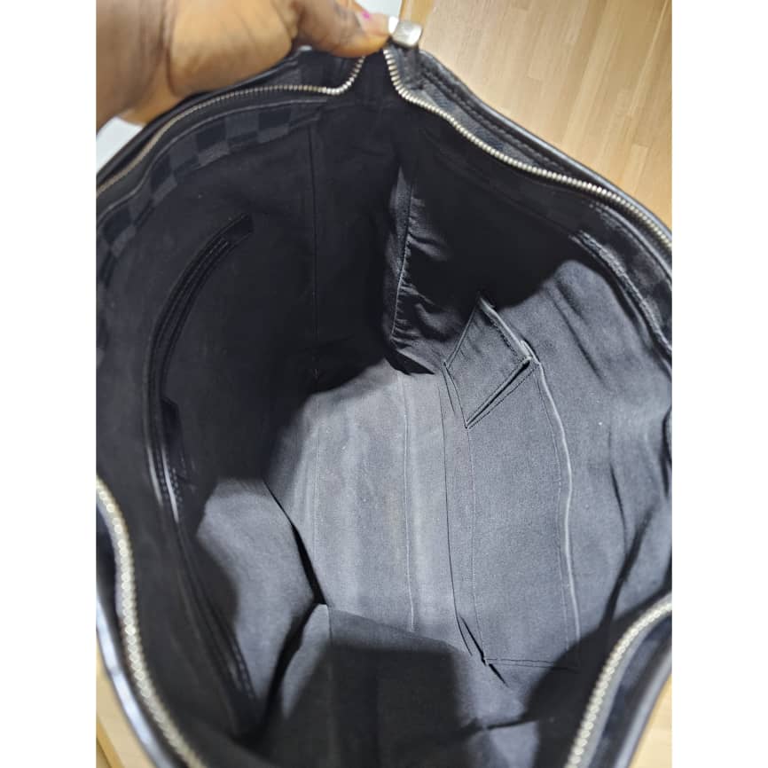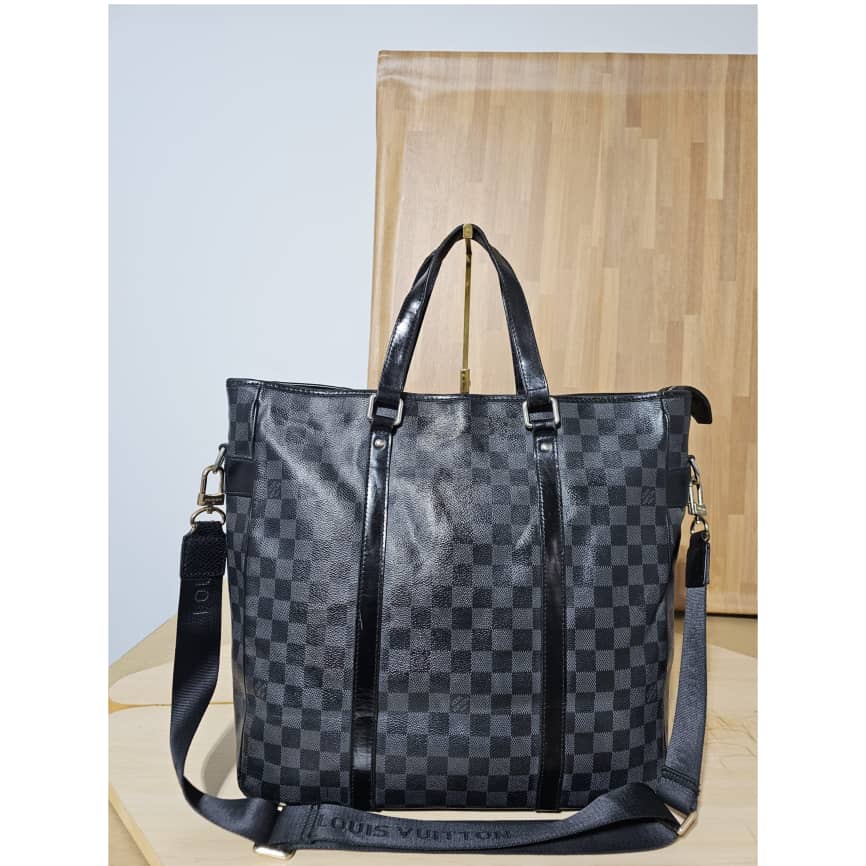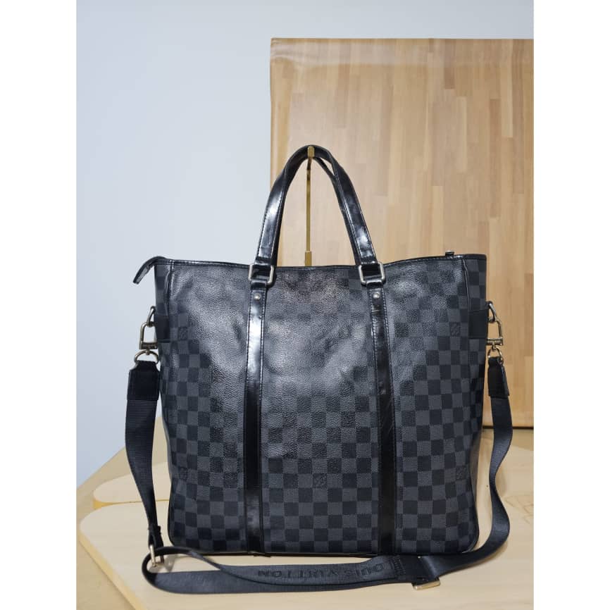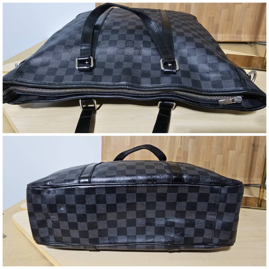This authentic LOUIS VUITTON Tadao PM Damier Graphite Bag is in it’s good pre-owned condition. The exterior canvas is clean and beautiful. The interior is clean. It has a silver hardware. The strap is from a different Louis Vuitton bag with a gold hardware.