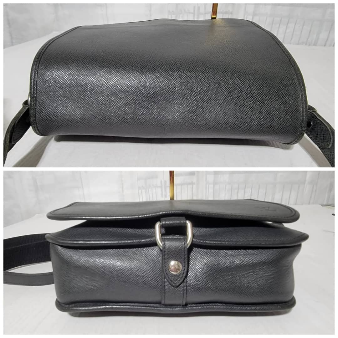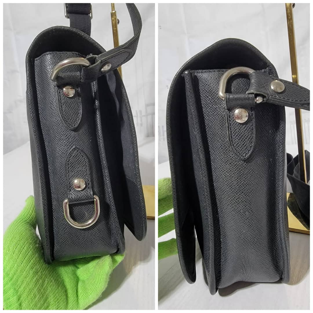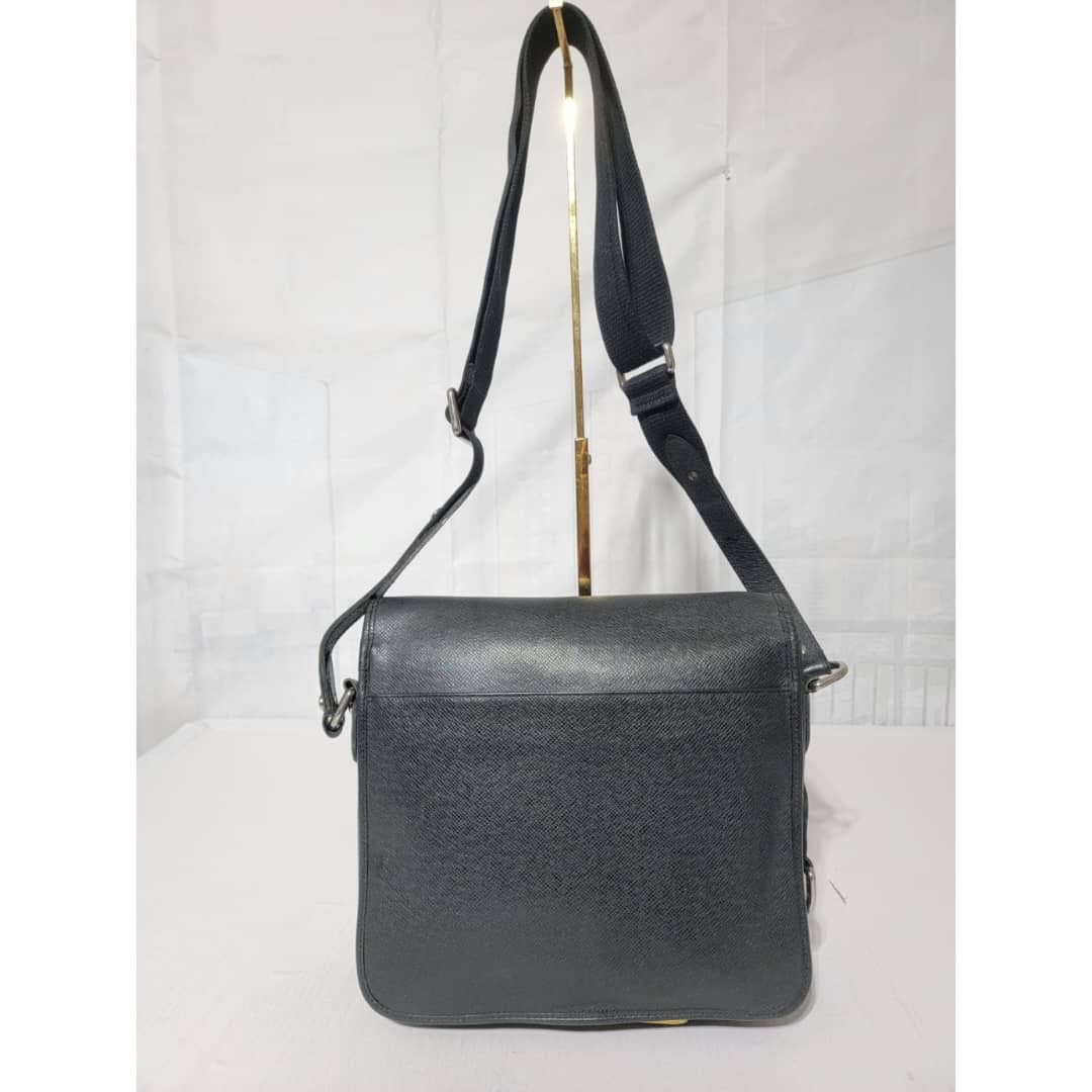 This authentic Louis Vuitton Taiga Andrei Messenger Bag Black is in it’s good pre-owned condition. The exterior is clean and beautiful. Interior is clean. Silver hardware.