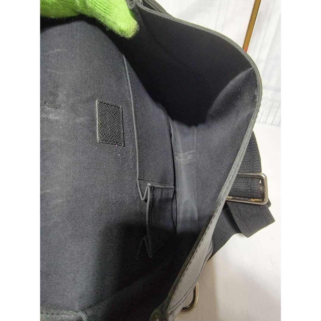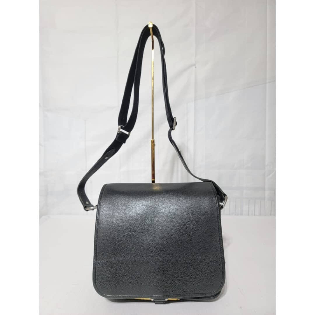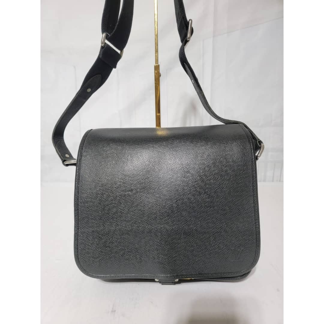 This authentic Louis Vuitton Taiga Andrei Messenger Bag Black is in it’s good pre-owned condition. The exterior is clean and beautiful. Interior is clean. Silver hardware.