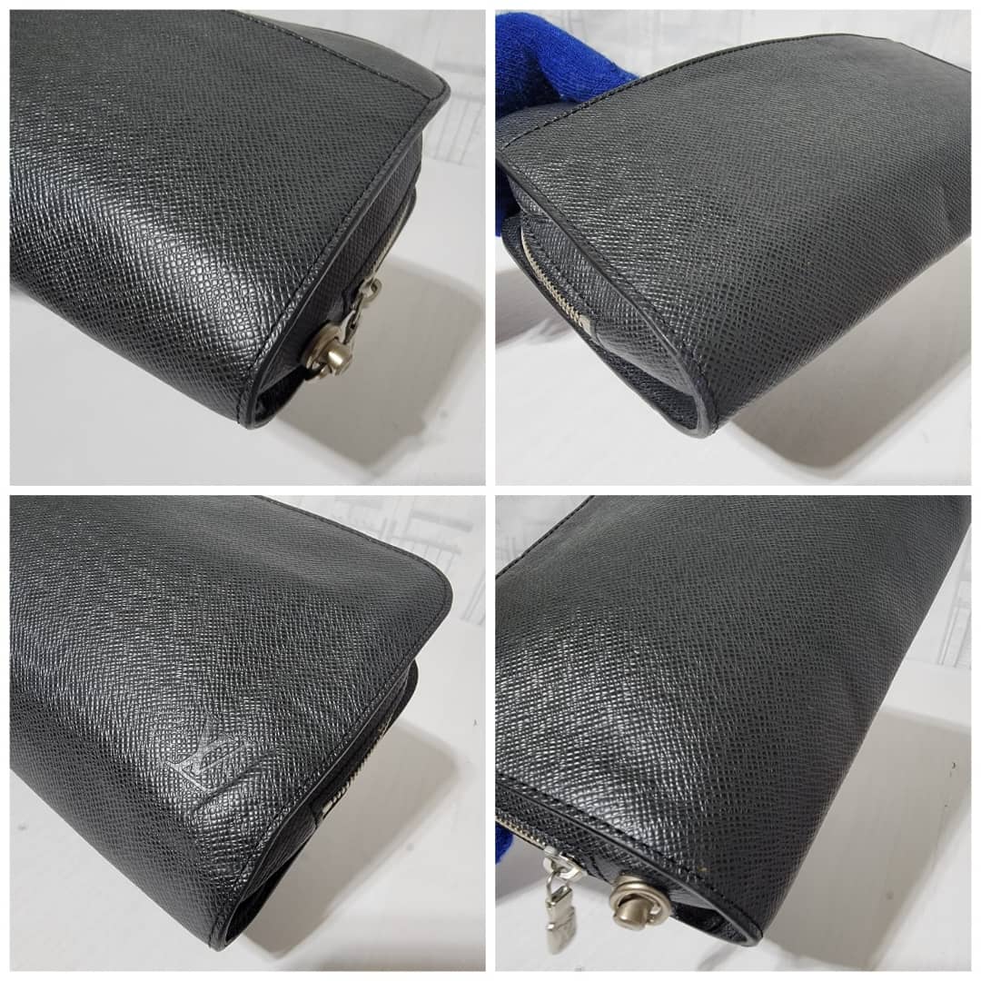 This authentic Louis Vuitton Taiga Baikal Clutch Black is in it’s good pre-owned condition. The exterior is clean and beautiful. Interior is clean. Silver hardware. Kindly look at pictures for any sign of wear. No wristlet strap