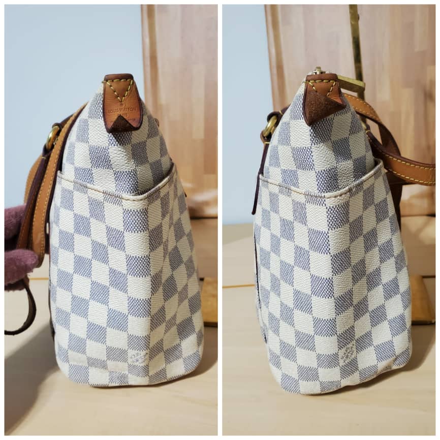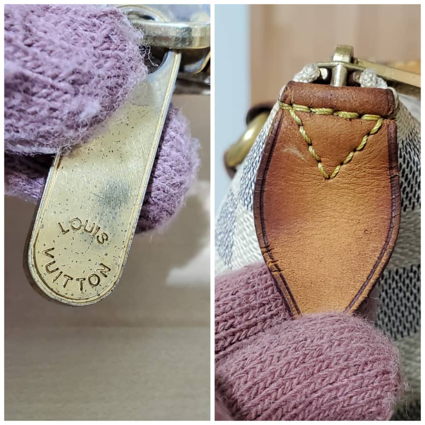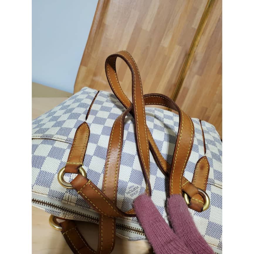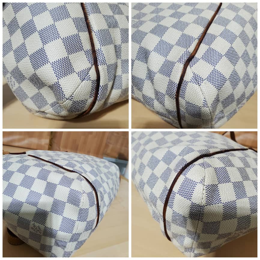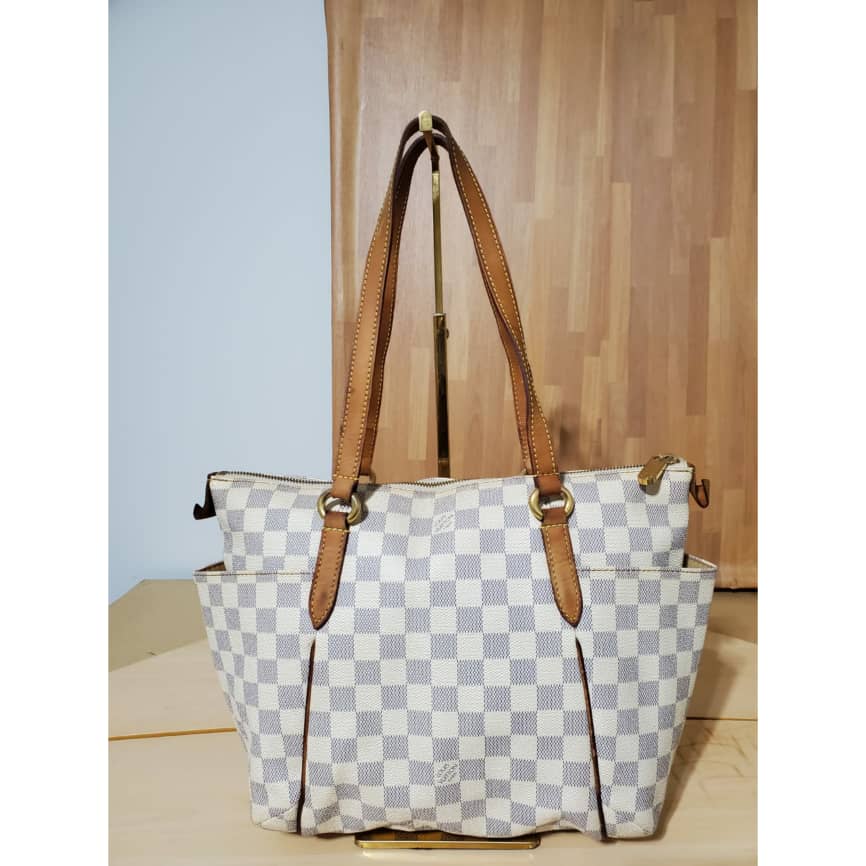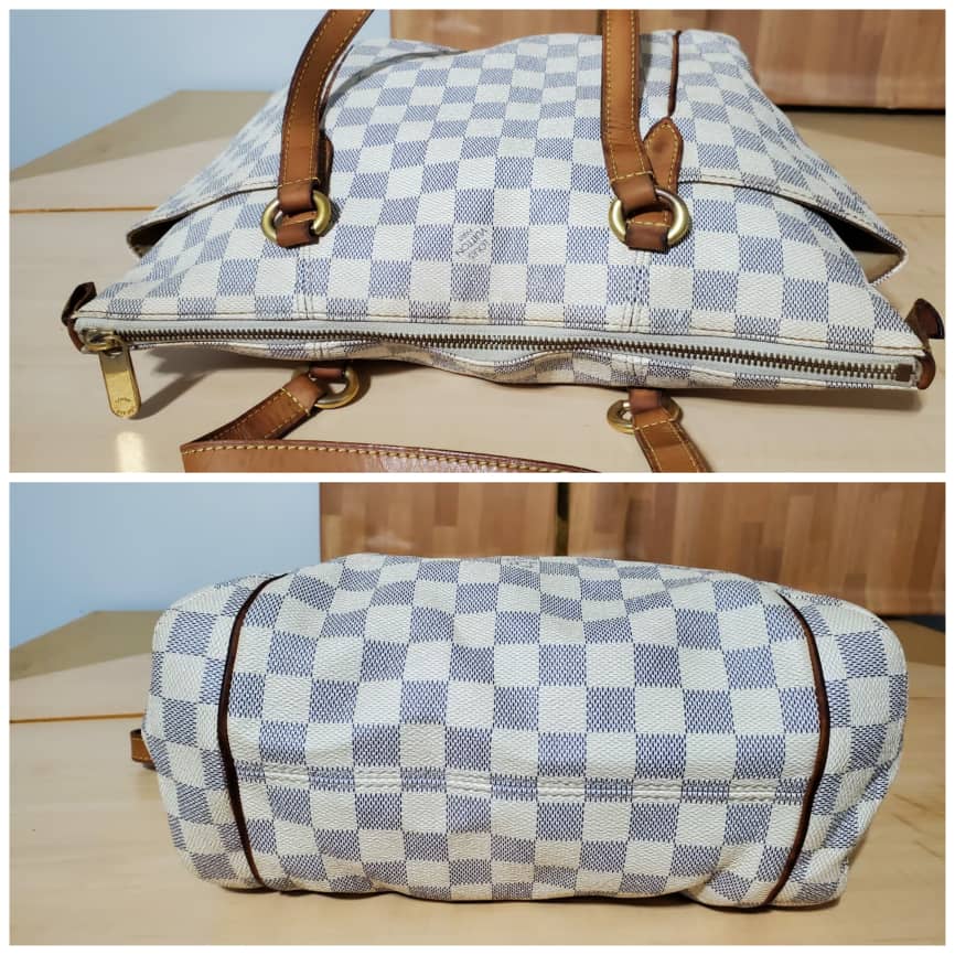 This authentic LOUIS VUITTON TOTALLY PM DAMIER AZUR is in it’s pre-owned condition.has sign of use. The exterior canvas is clean and beautiful the interior is clean. The vachatte leather throughout the bag shows honey patina rubbing. It’s a great shoulder bag pm.