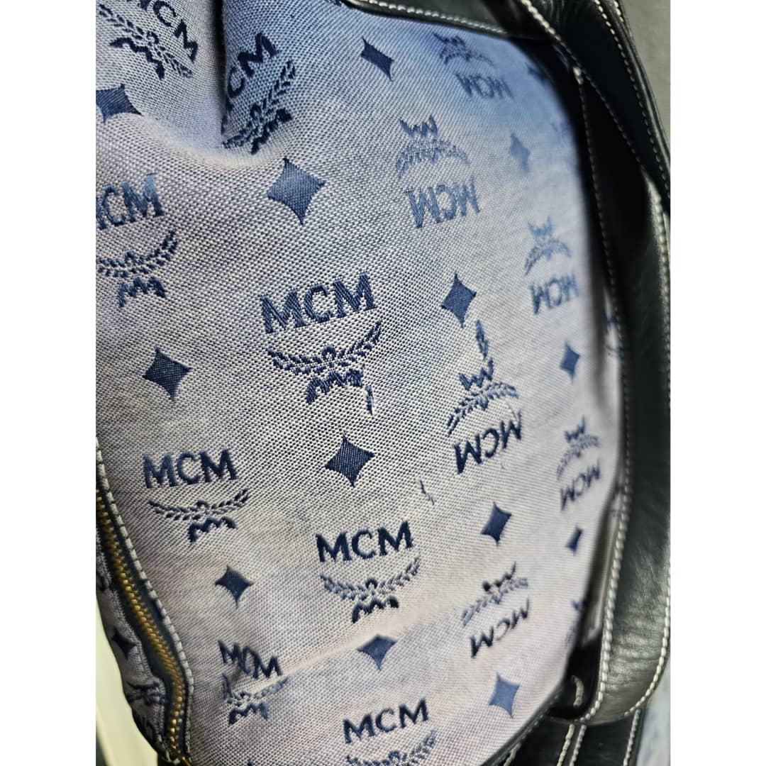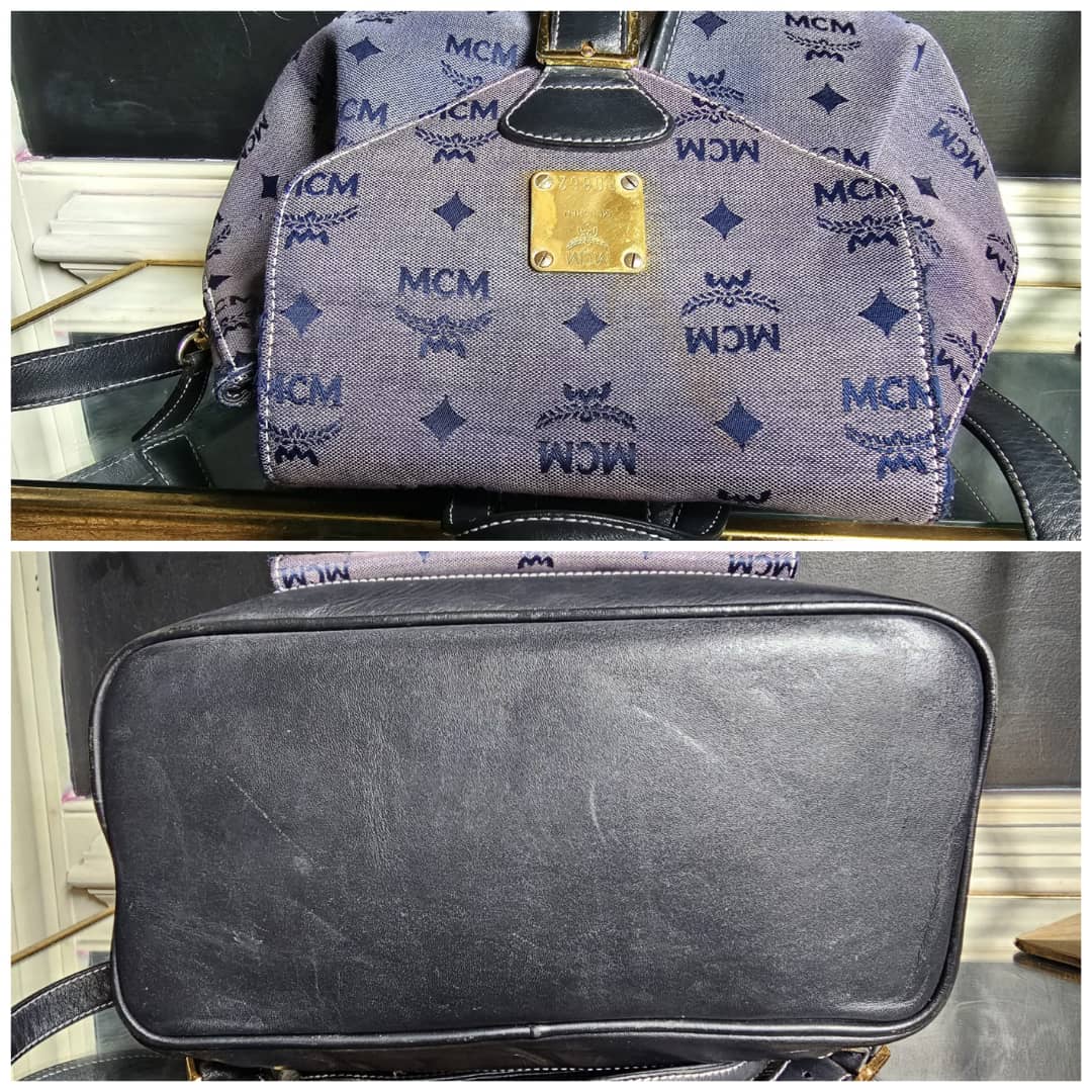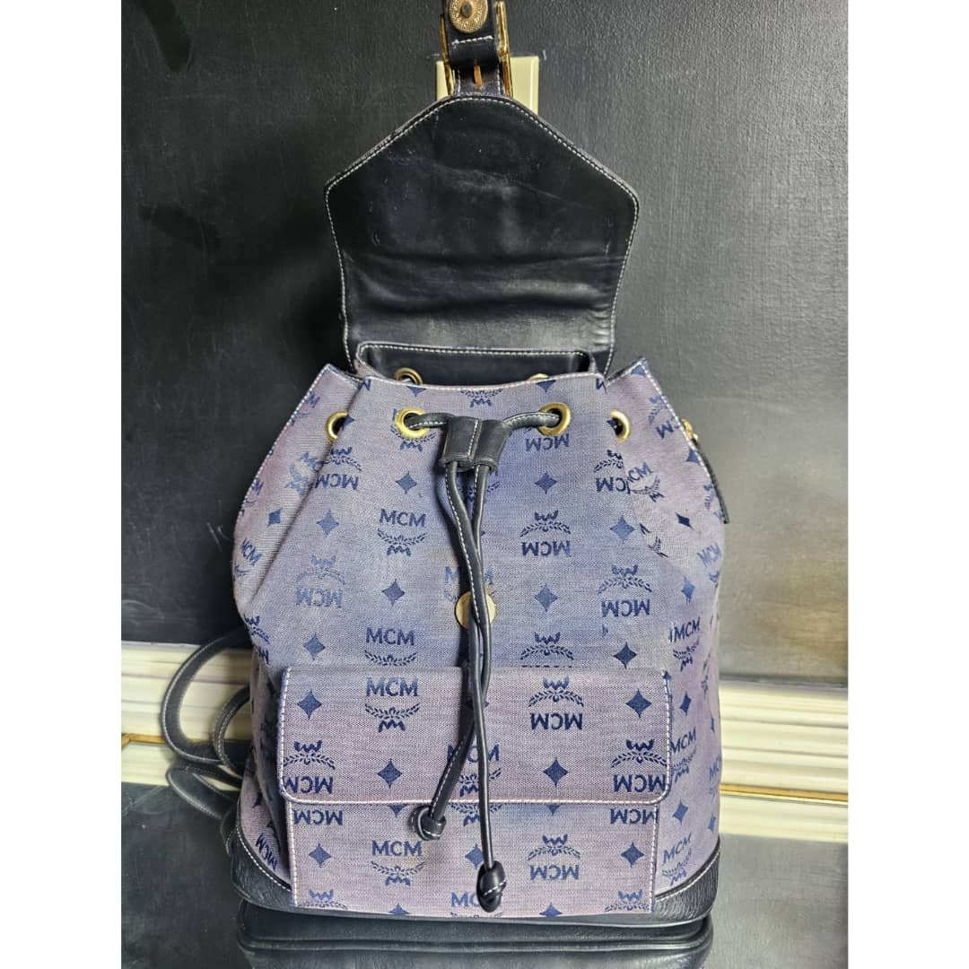 This authentic MCM canvas leather backpack gray blue is in it’s good pre-owned condition. The exterior blue canvas is clean but faded. The navy blue leather trim is clean. Interior is clean.