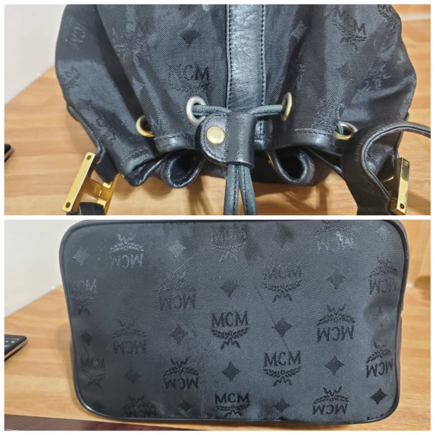 This authentic MCM Black Nylon & Leather Drawstring Bucket Bag is in it’s pre-owned condition.has sign of use. The exterior is clean and beautiful. Interior is clean. Can be worn as Crossbody and shoulder bag.