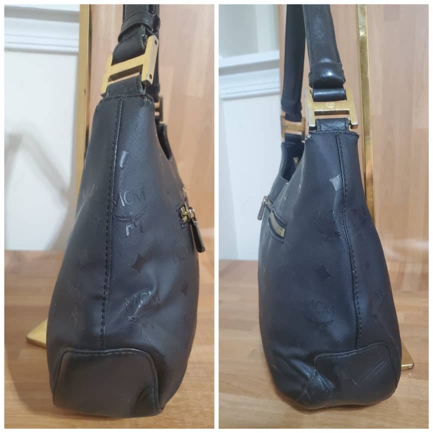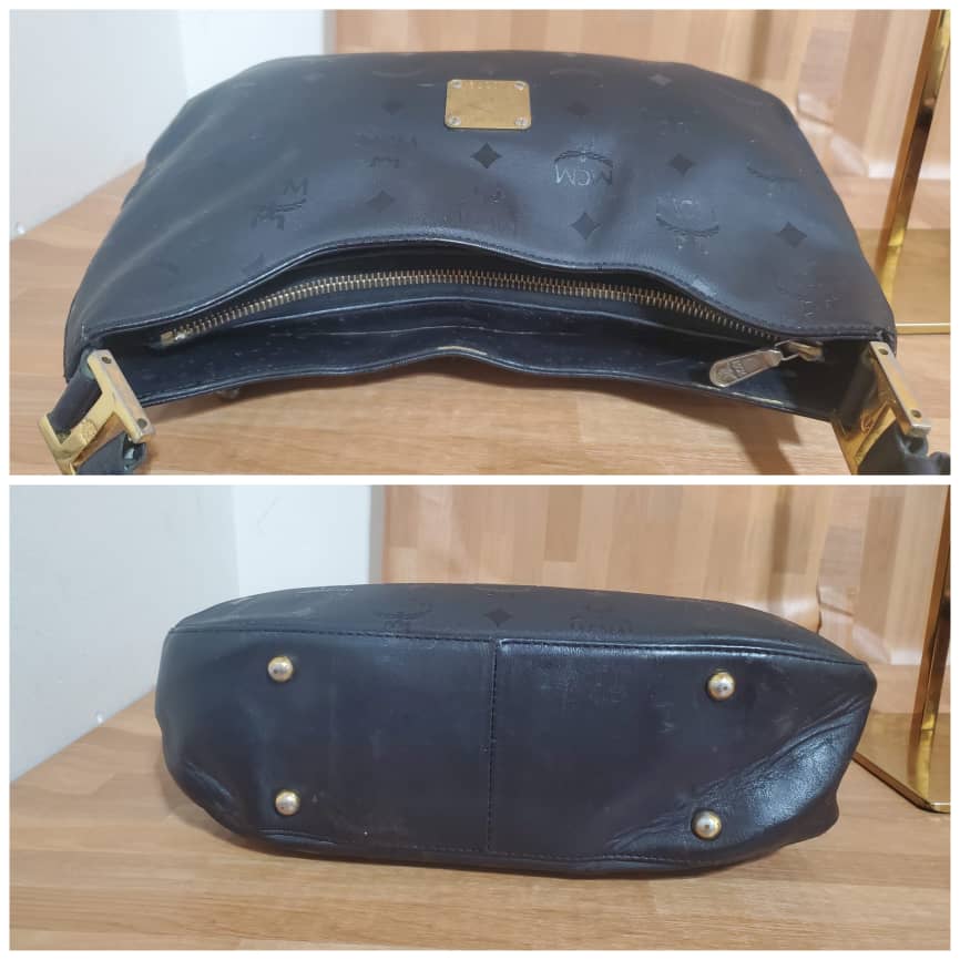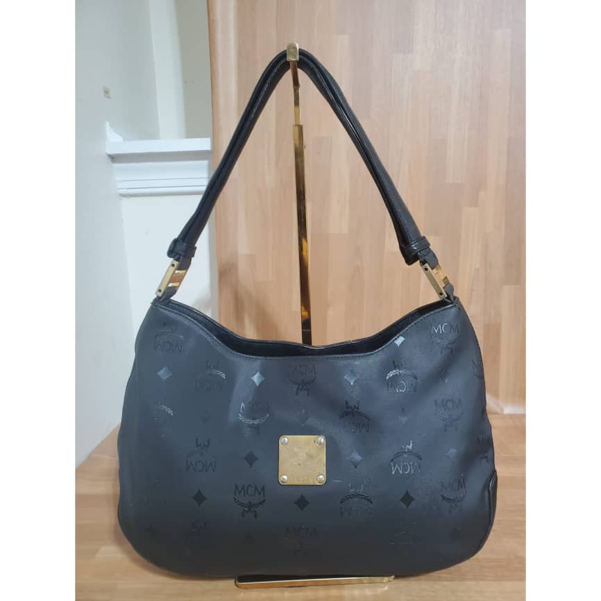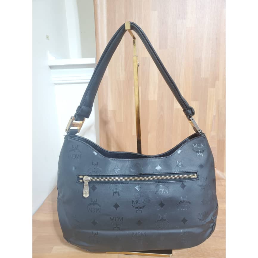 This authentic MCM Black Signature Visetos Monogram Shoulder Bag is in it’s pre-owned good condition has sign of use. The exterior is clean and beautiful. Interior is clean. Great shoulder Hobo bag.