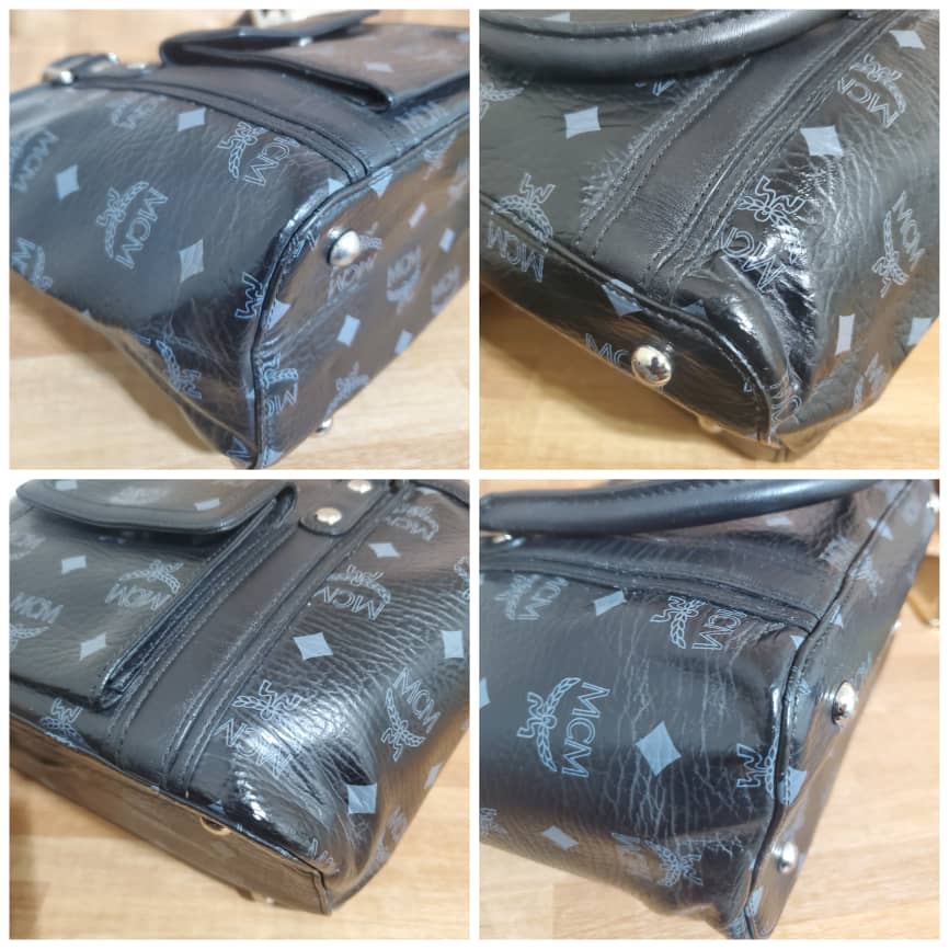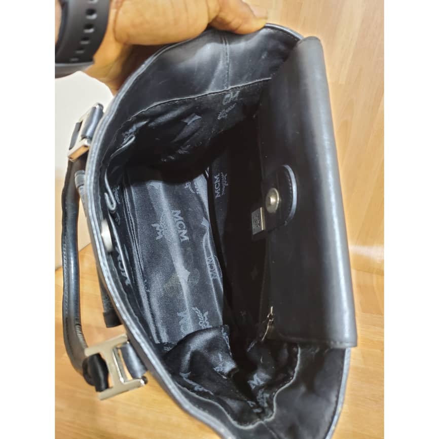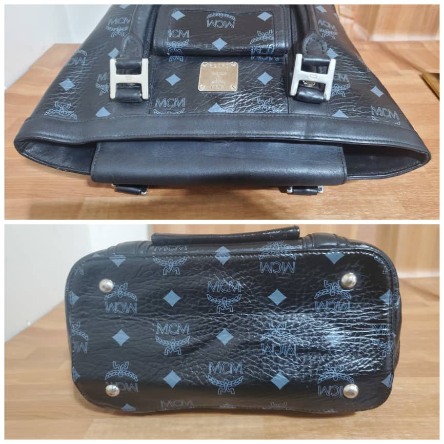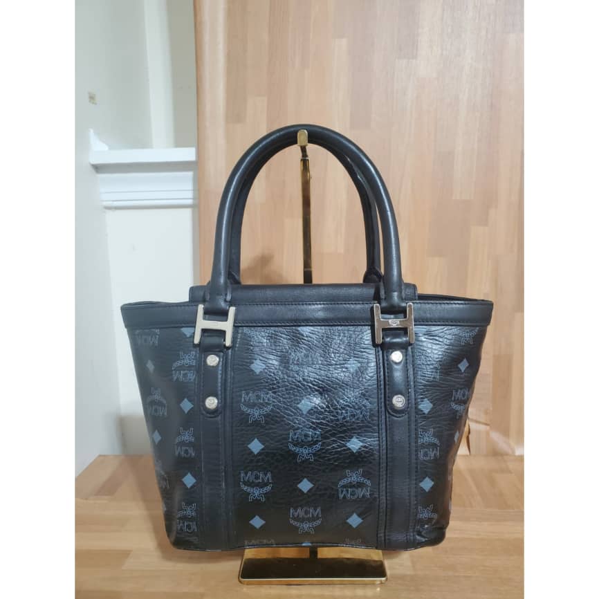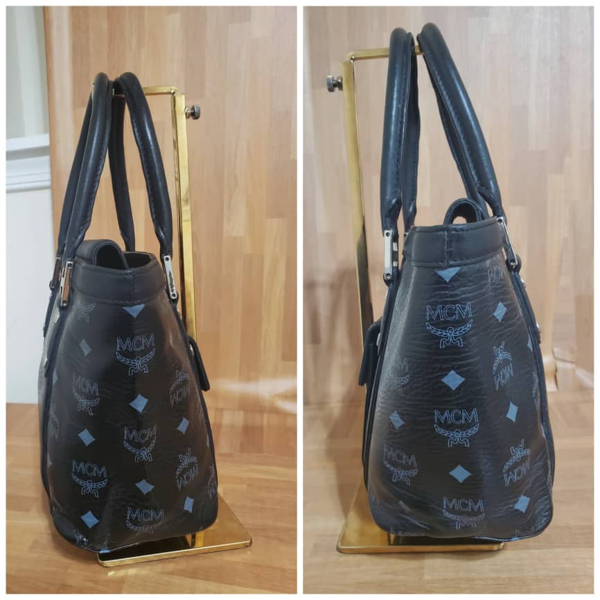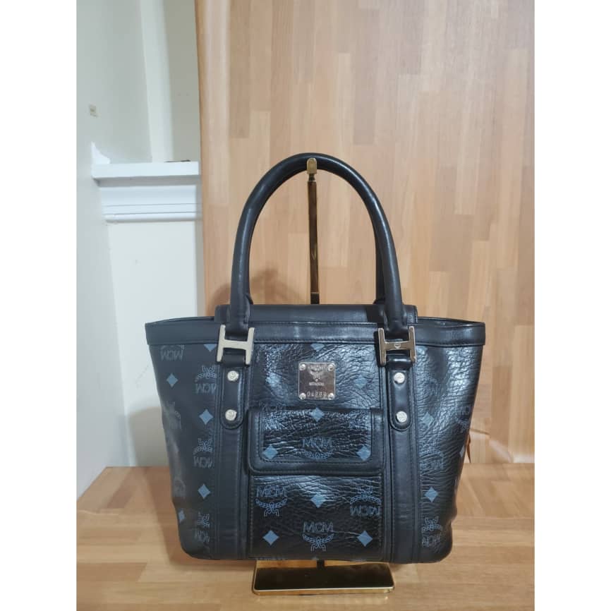 This authentic MCM Black Visetos Coated Canvas and Leather Pocket Tote is in its pre-owned good condition.has sign of use. The exterior coated canvas is clean and beautiful. Interior is clean. It’s a cute little small tote. Beautiful and classy