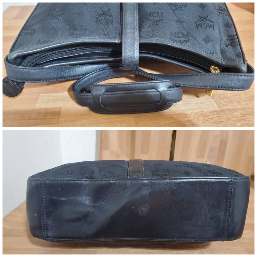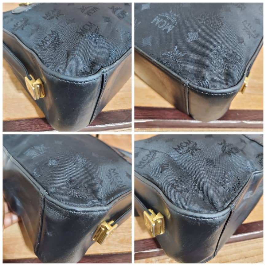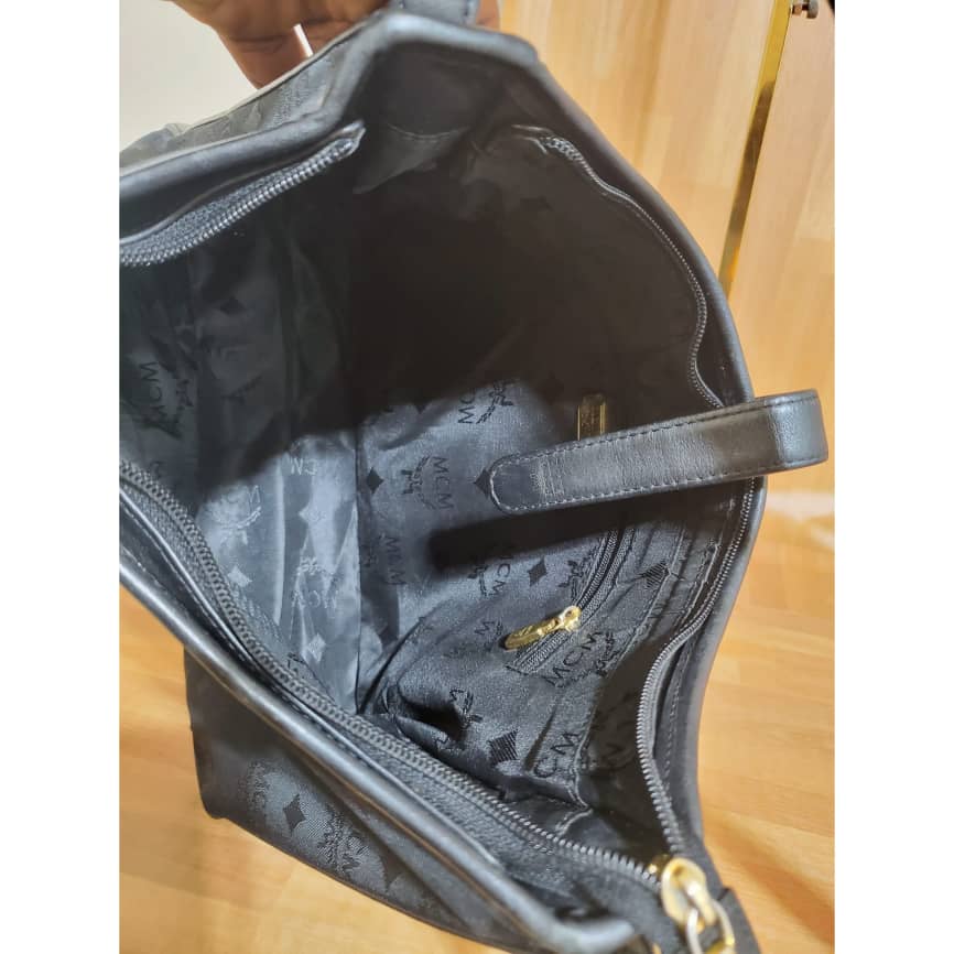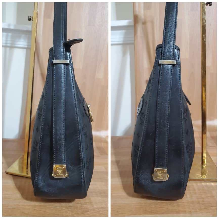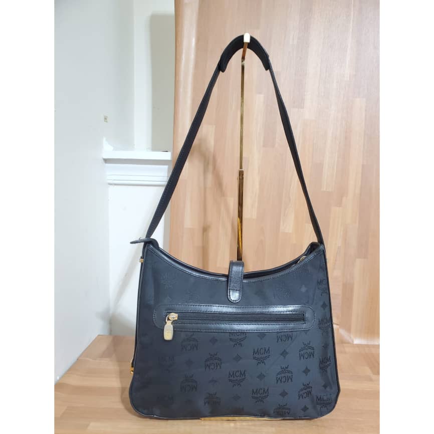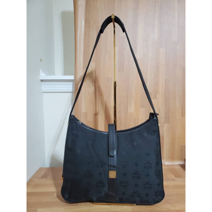 This authentic MCM Black Visetos Nylon and Leather Hobo bag is in it’s pre-owned good condition. The exterior nylon and leather is clean and beautiful. Gold hardware. Shows slight scratches. Interior is clean.