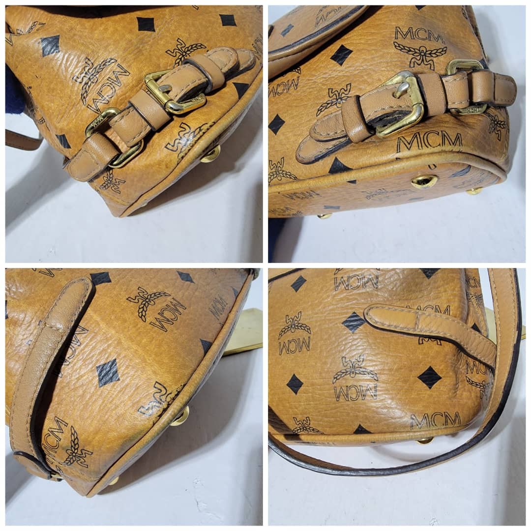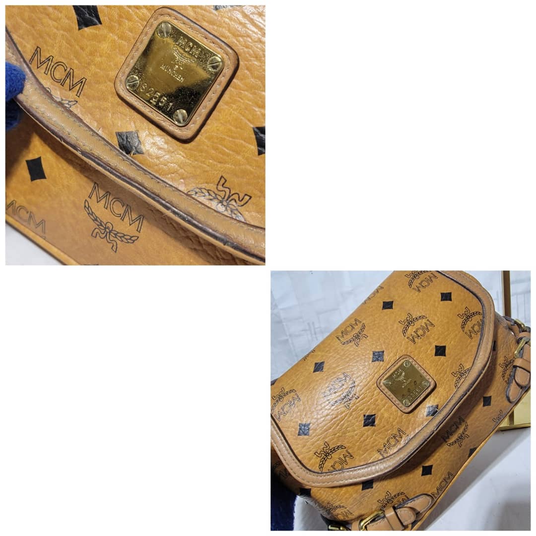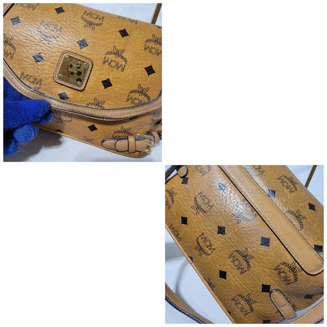 This authentic MCM Cognac Monogram Visetos 2way Flap Messenger / CrossBody Bag is in it’s pre-owned condition. The exterior coated canvas is clean but shows some rubbing stain at the side it’s not obvious. The flap shows sign of little wear. No long term. Kindly look at pictures above.
