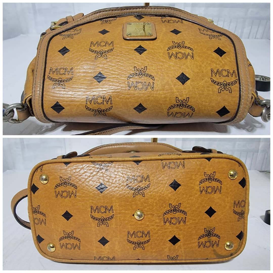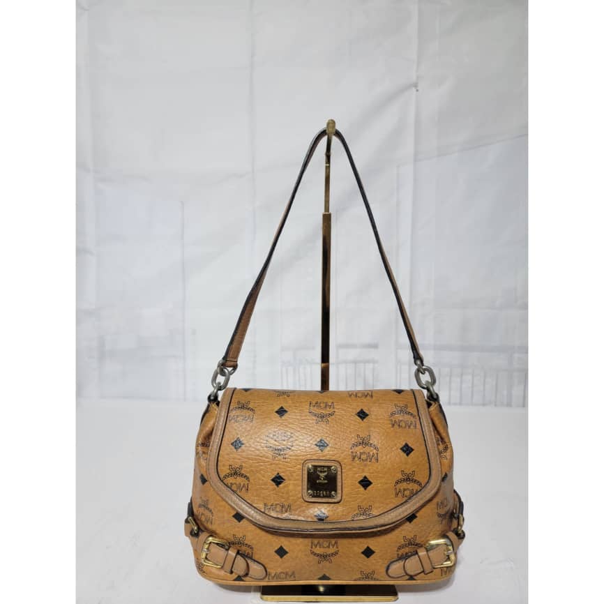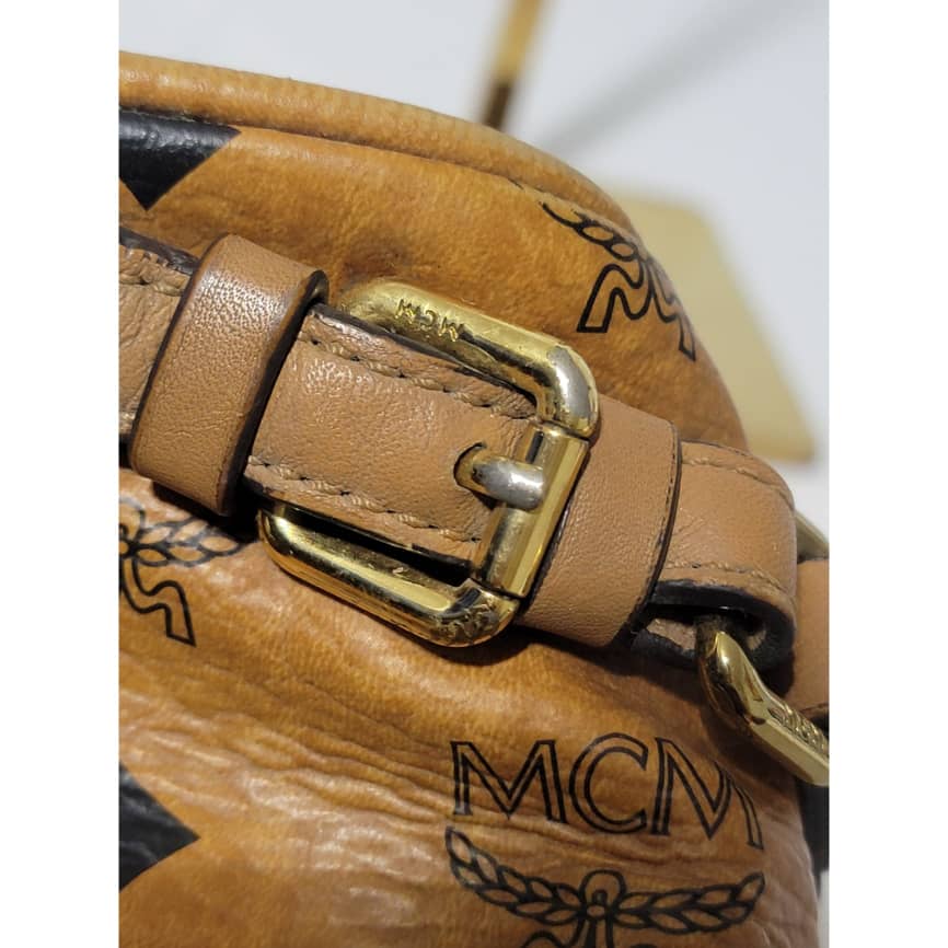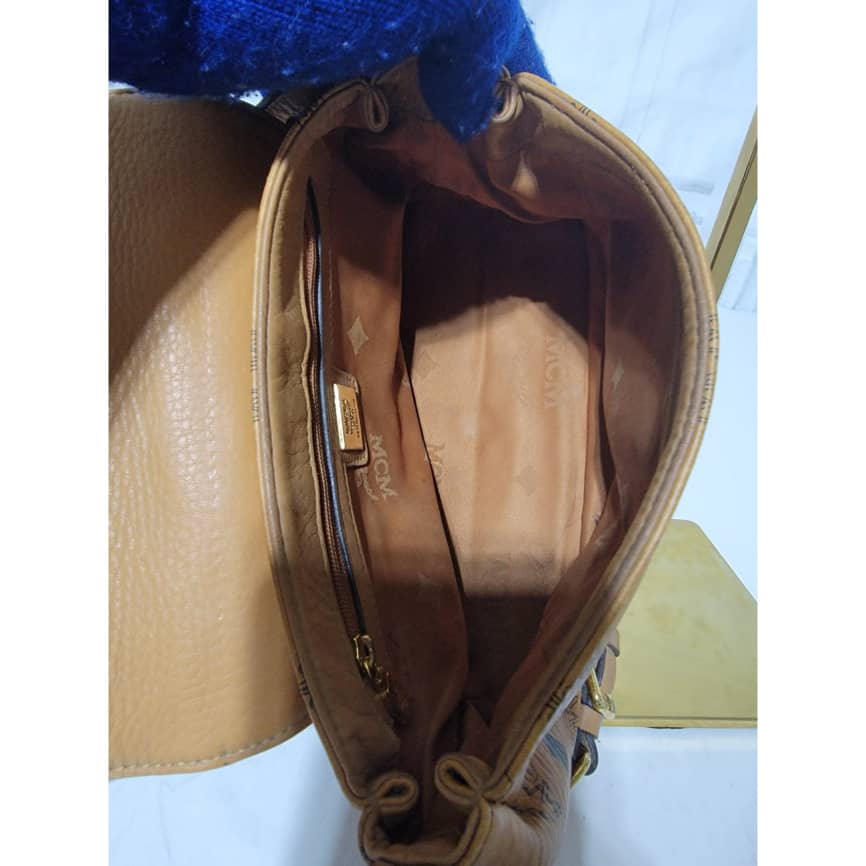 This authentic MCM Cognac Monogram Visetos 2way Flap Messenger / CrossBody Bag is in it’s pre-owned condition. The exterior coated canvas is clean but shows some rubbing stain at the side it’s not obvious. The flap shows sign of little wear. No long term. Kindly look at pictures above.