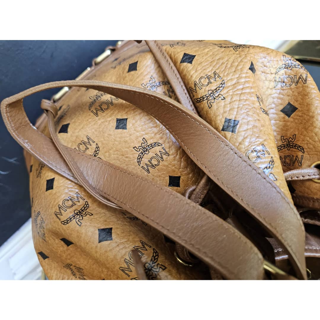 This authentic MCM Cognac Visetos Coated Canvas Bucket Bag Limited Edition is in it’s good pre-owned condition. The exterior canvas is clean and beautiful. Interior is clean. Gold hardware. Can be worn as a crossbody or shoulder bag. Shiny and bright beautiful bag.