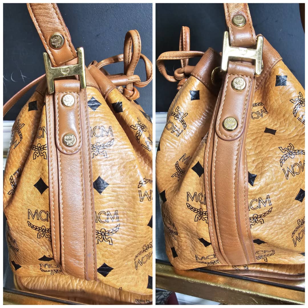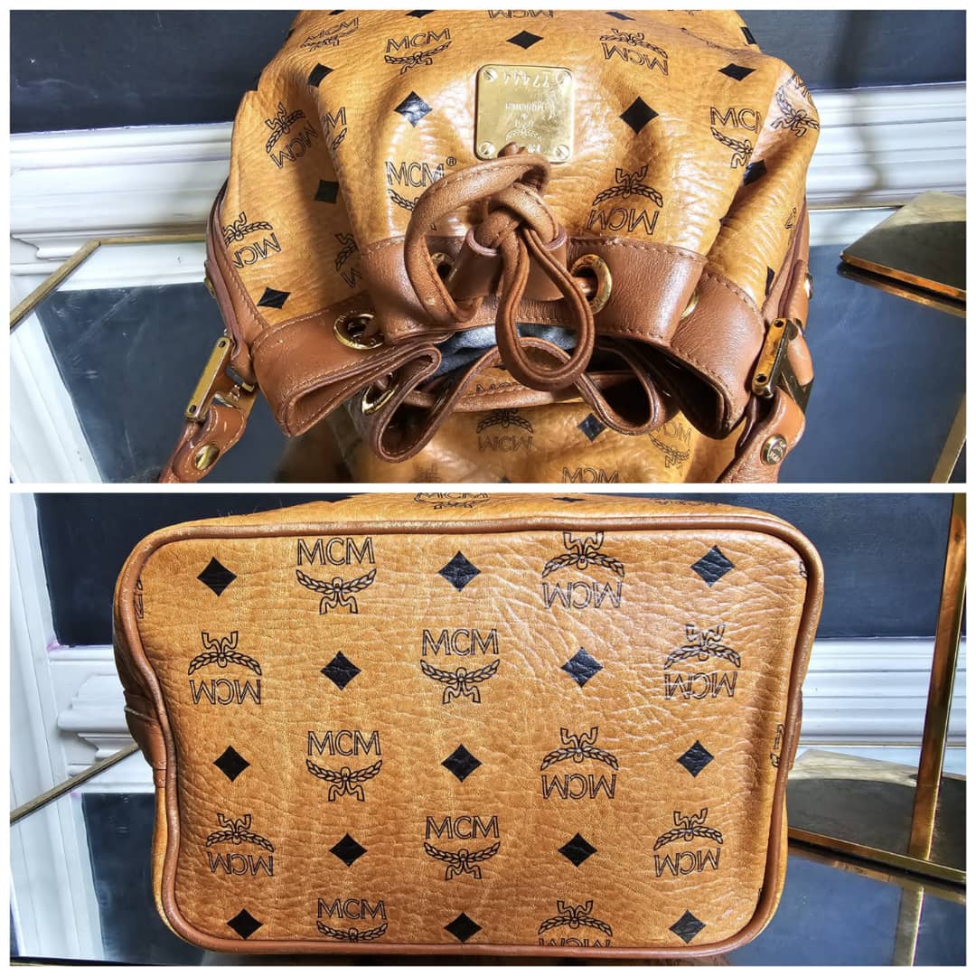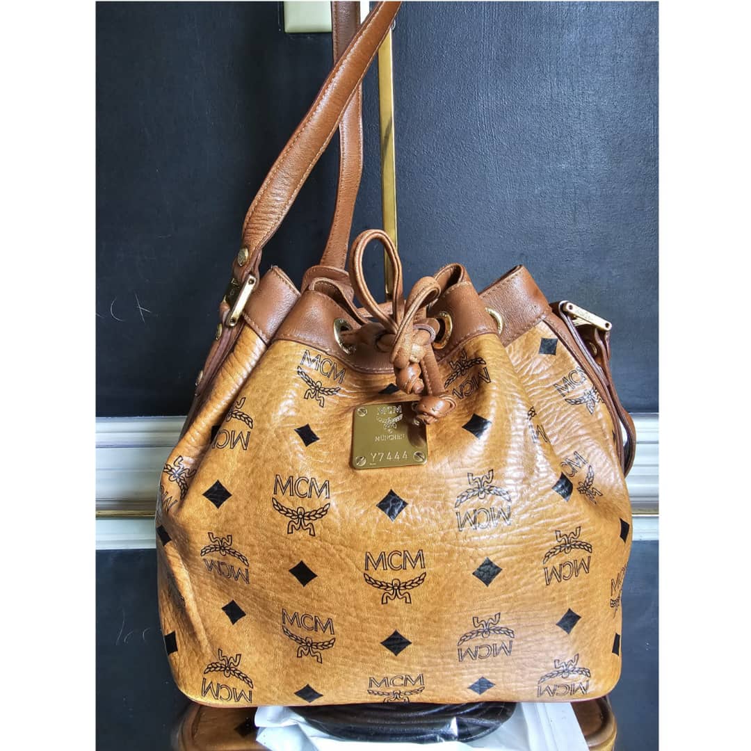 This authentic MCM Cognac Visetos Coated Canvas Heritage Drawstring Bag is in it’s good pre-owned condition. The exterior canvas is clean and beautiful. Interior is clean. Gold hardware. Can be worn as a shoulder/crossbody bag.