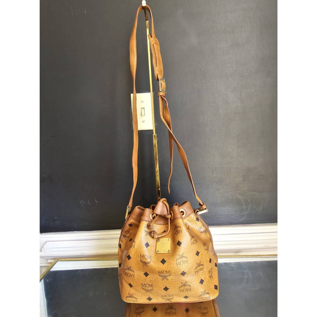 This authentic MCM Cognac Visetos Coated Canvas Heritage Drawstring Bag is in it’s good pre-owned condition. The exterior canvas is clean and beautiful, shows light rubbing at the base edges. Interior is clean. Handle shows little scratches. Gold hardware. Can be worn as a shoulder/crossbody bag.