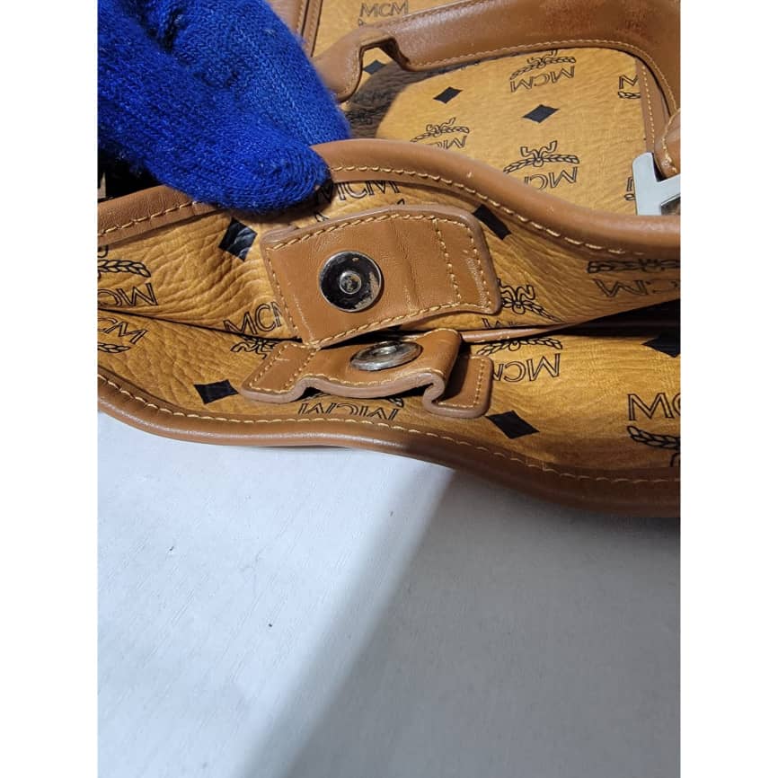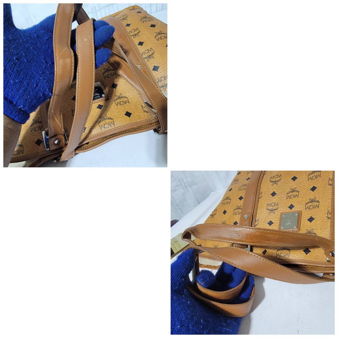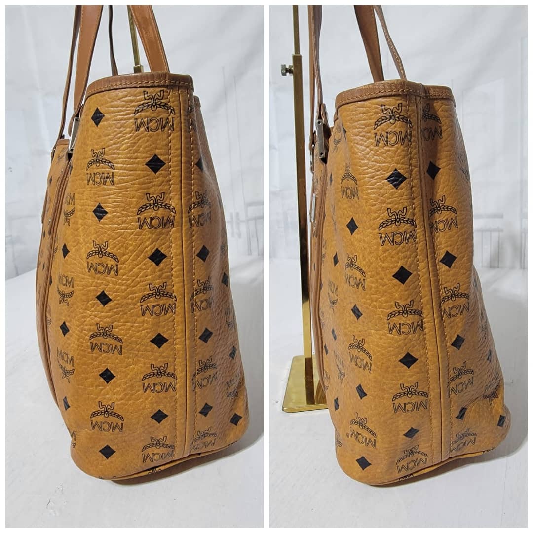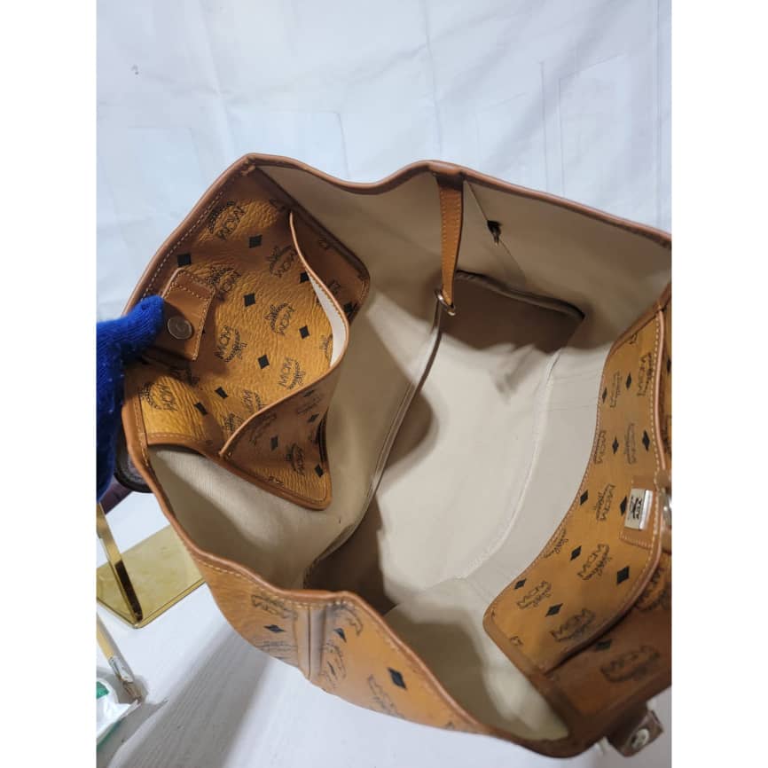 This authentic MCM Cognac Visetos Shopper Tote. Is in it’s good pre-owned condition the exterior leather is clean and beautiful. Interior is clean