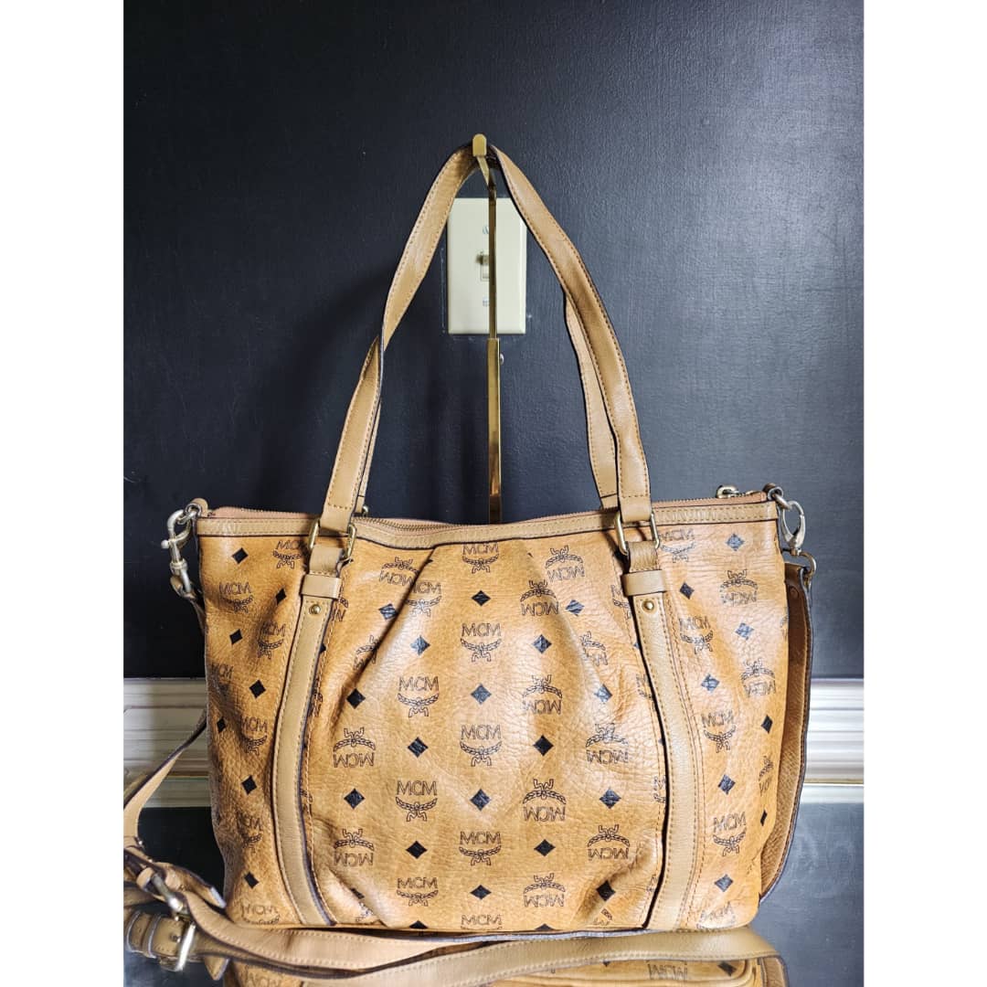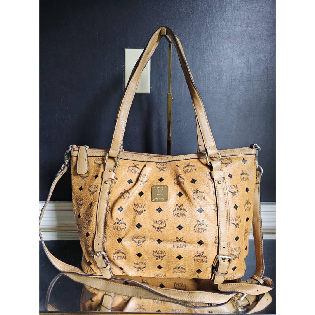 This authentic MCM Visetos Handbag/Shoulder Bag Leather Brown is in it’s good pre-owned condition. The exterior leather is clean and beautiful. Interior is clean. Gold hardware with little scratches. It can be worn as a shoulder/handbag.