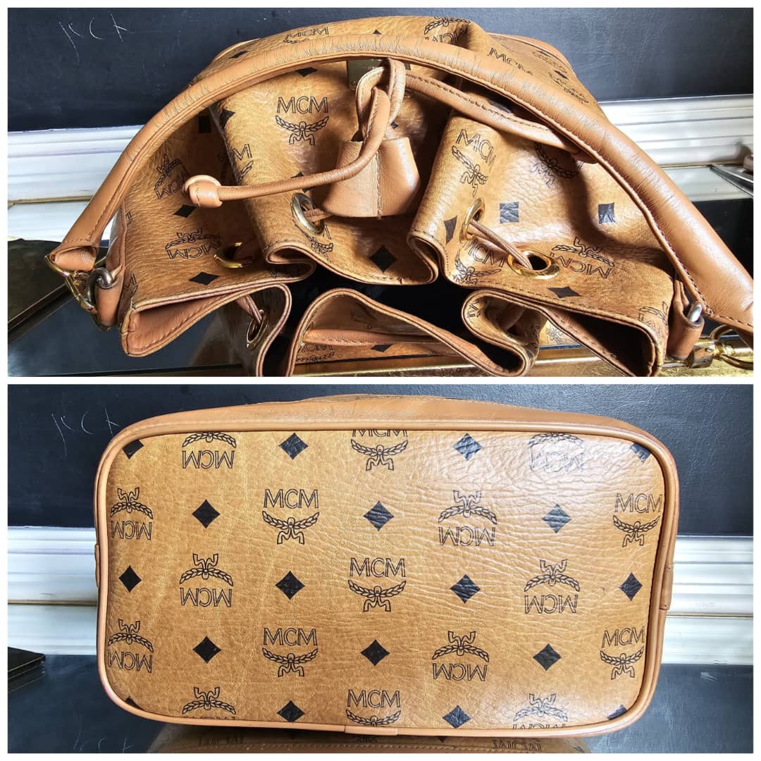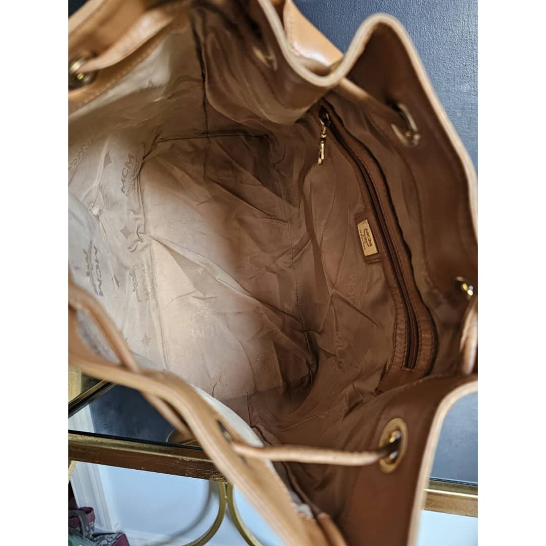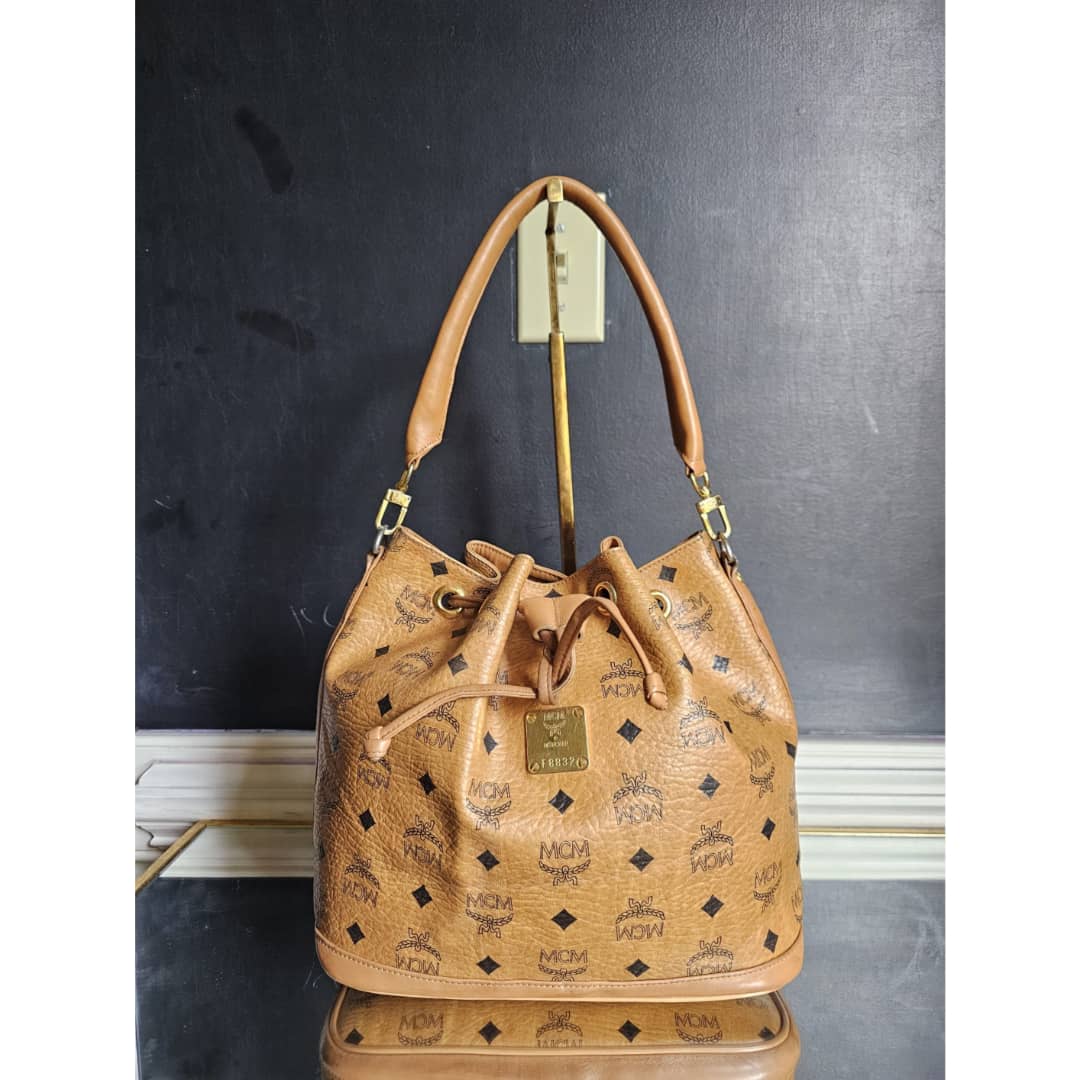 This authentic MCM Dessau Drawstring Medium Bag Brown is in it’s good pre-owned condition. The exterior is clean and beautiful. Base edges shows some rubbing. Interior is clean. Gold hardware.