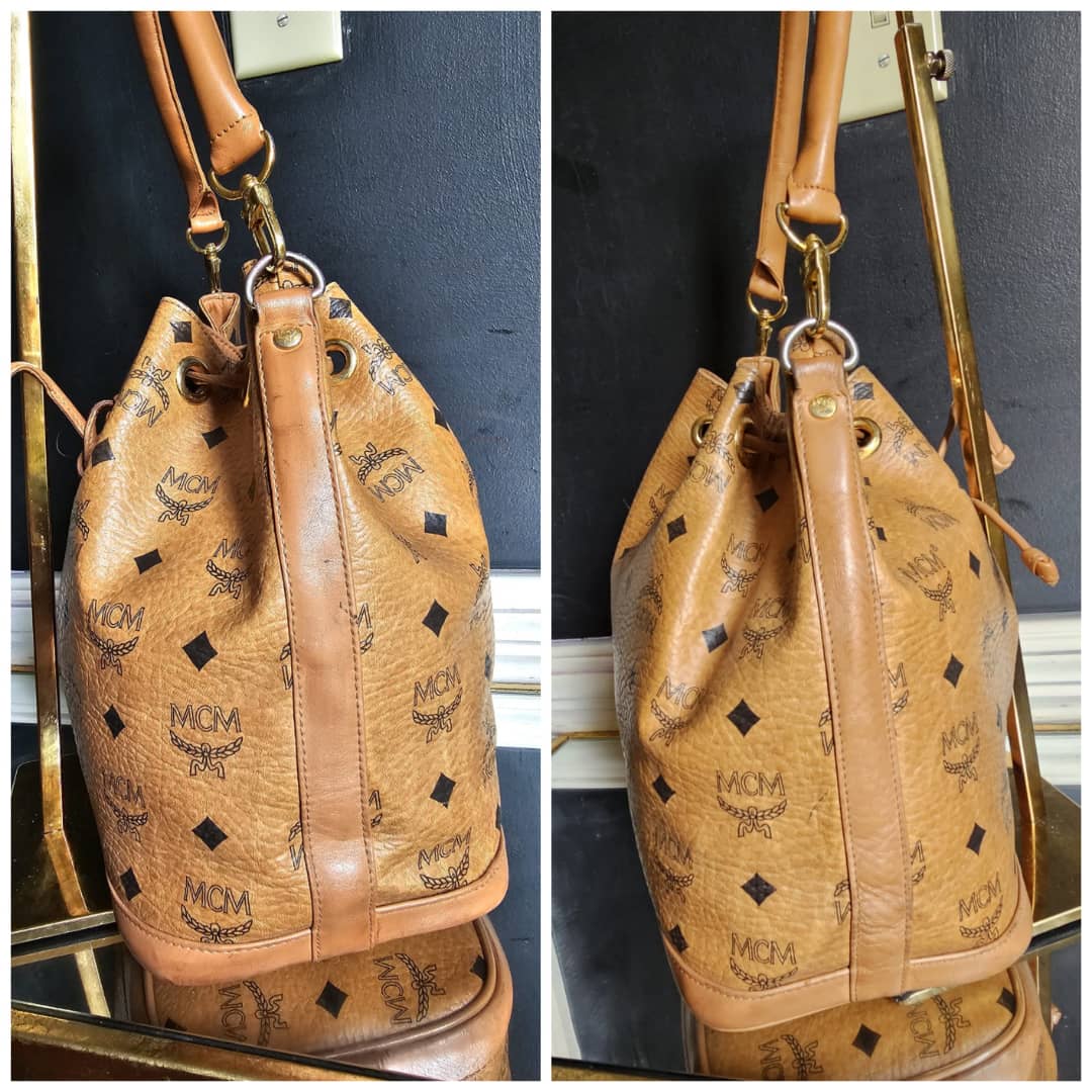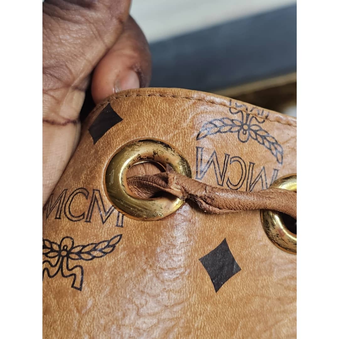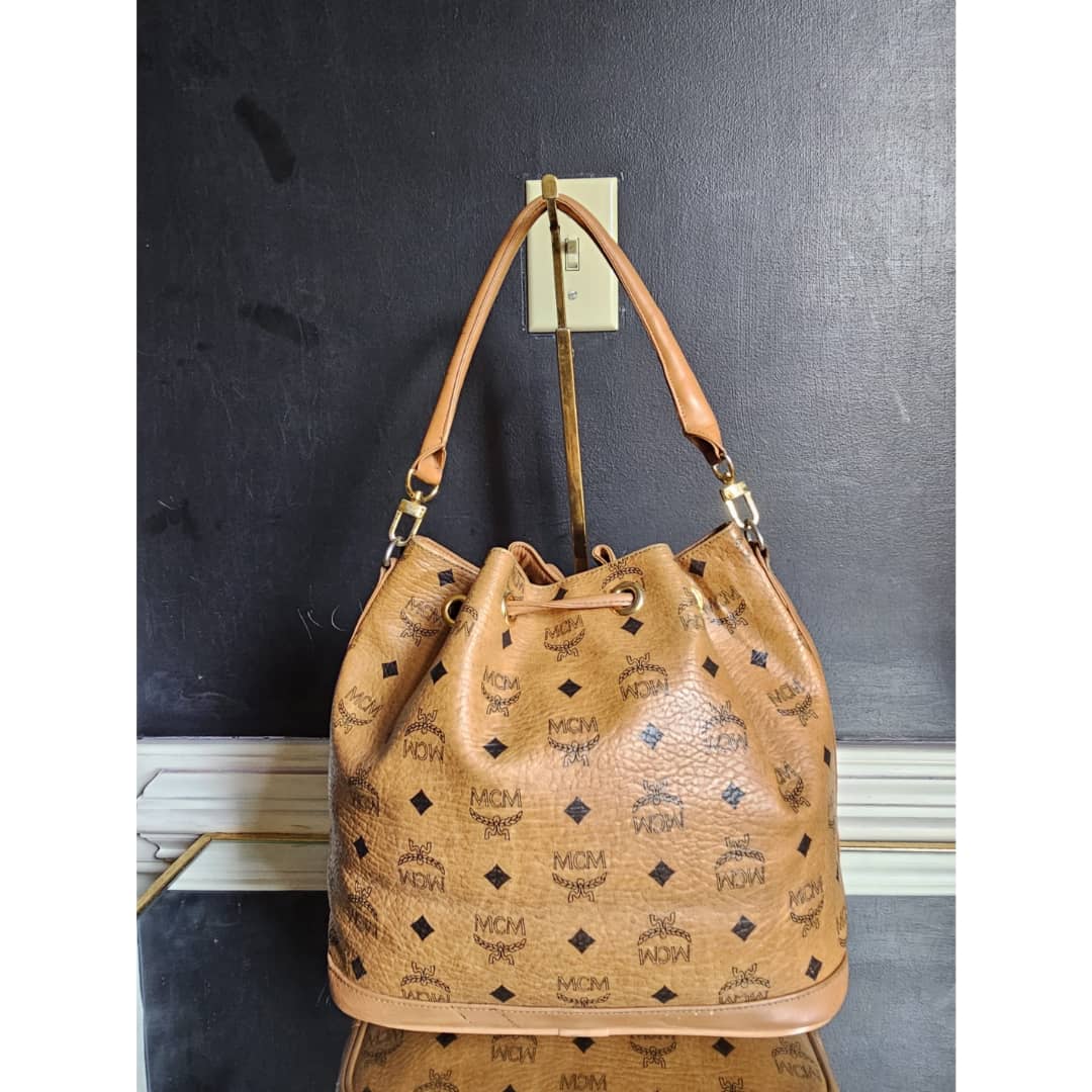 This authentic MCM Dessau Drawstring Medium Bag Brown is in it’s good pre-owned condition. The exterior is clean and beautiful. Base edges shows some rubbing. Interior is clean. Gold hardware.
