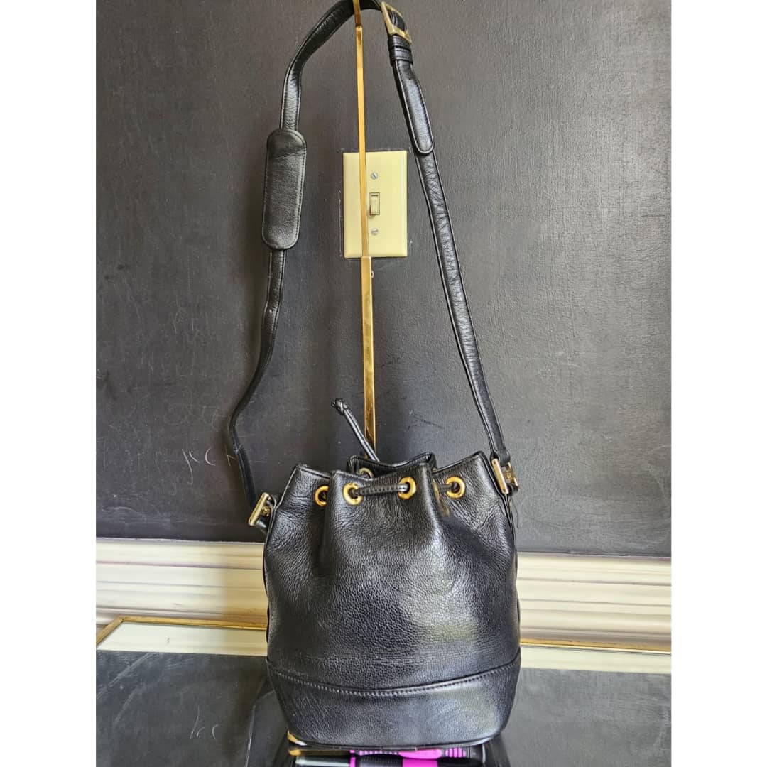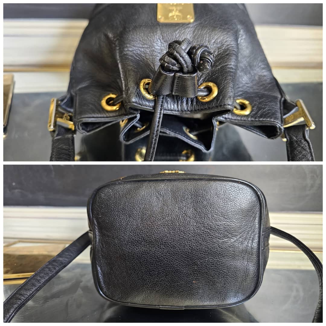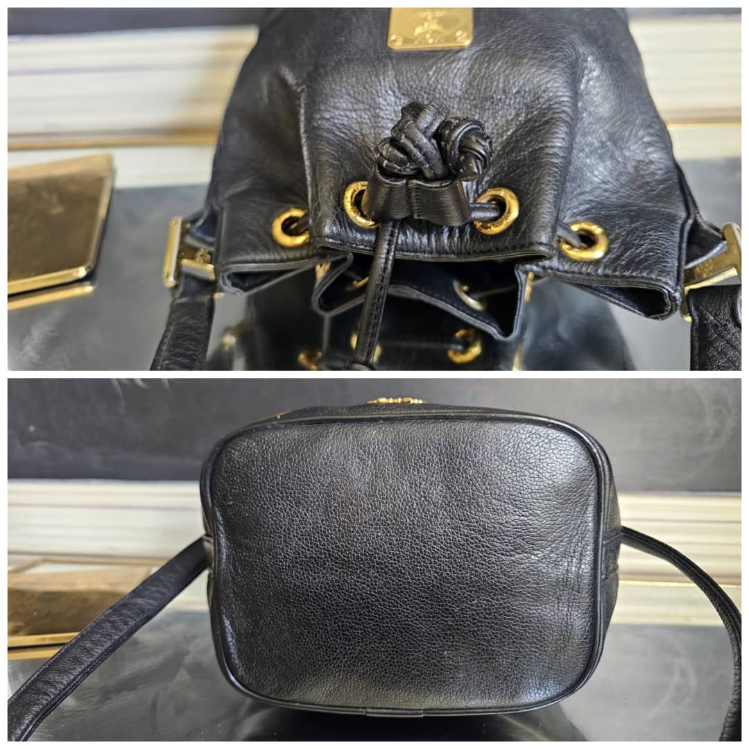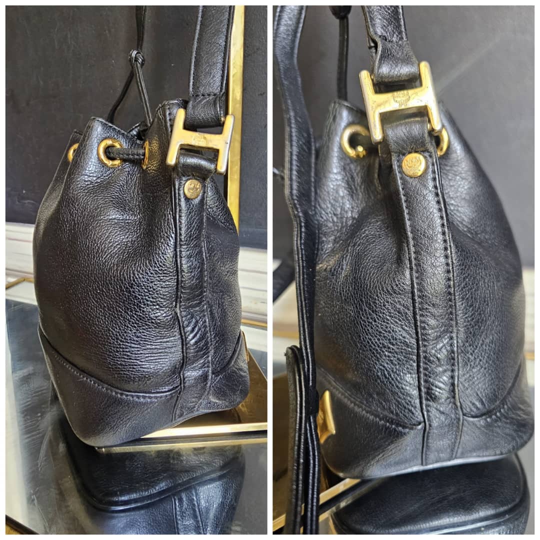 This authentic MCM Leather Drawstring Bucket Bag Black is in it’s good pre-owned condition. The exterior leather is clean and beautiful. Interior is clean. Can be worn as a shoulder/crossbody bag. Has an adjustable strap.