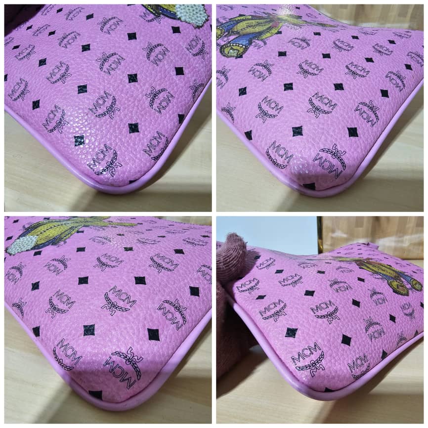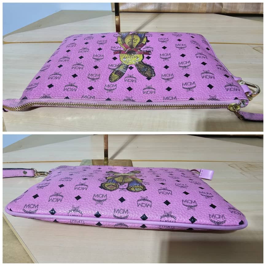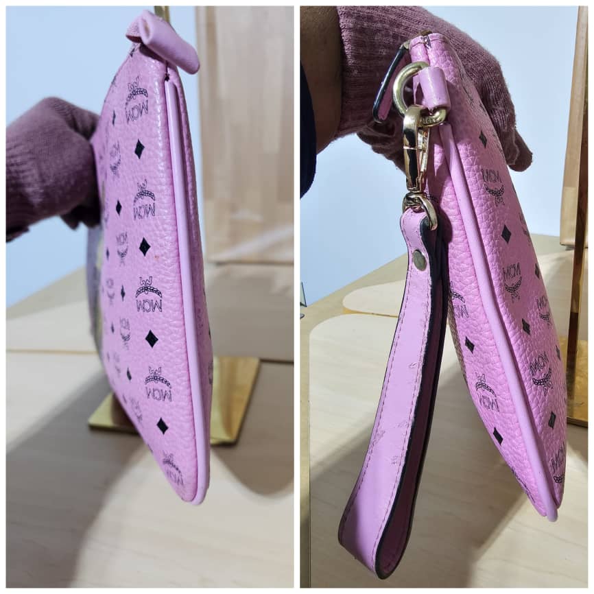This authentic MCM Limited Edition Rabbit Pink Clutch/Wristlet is in it’s good pre-owned condition. The exterior leather is clean and beautiful. The interior is clean too. It can also be worn as a clutch & Wristlet.