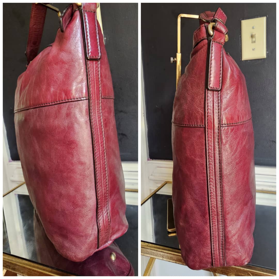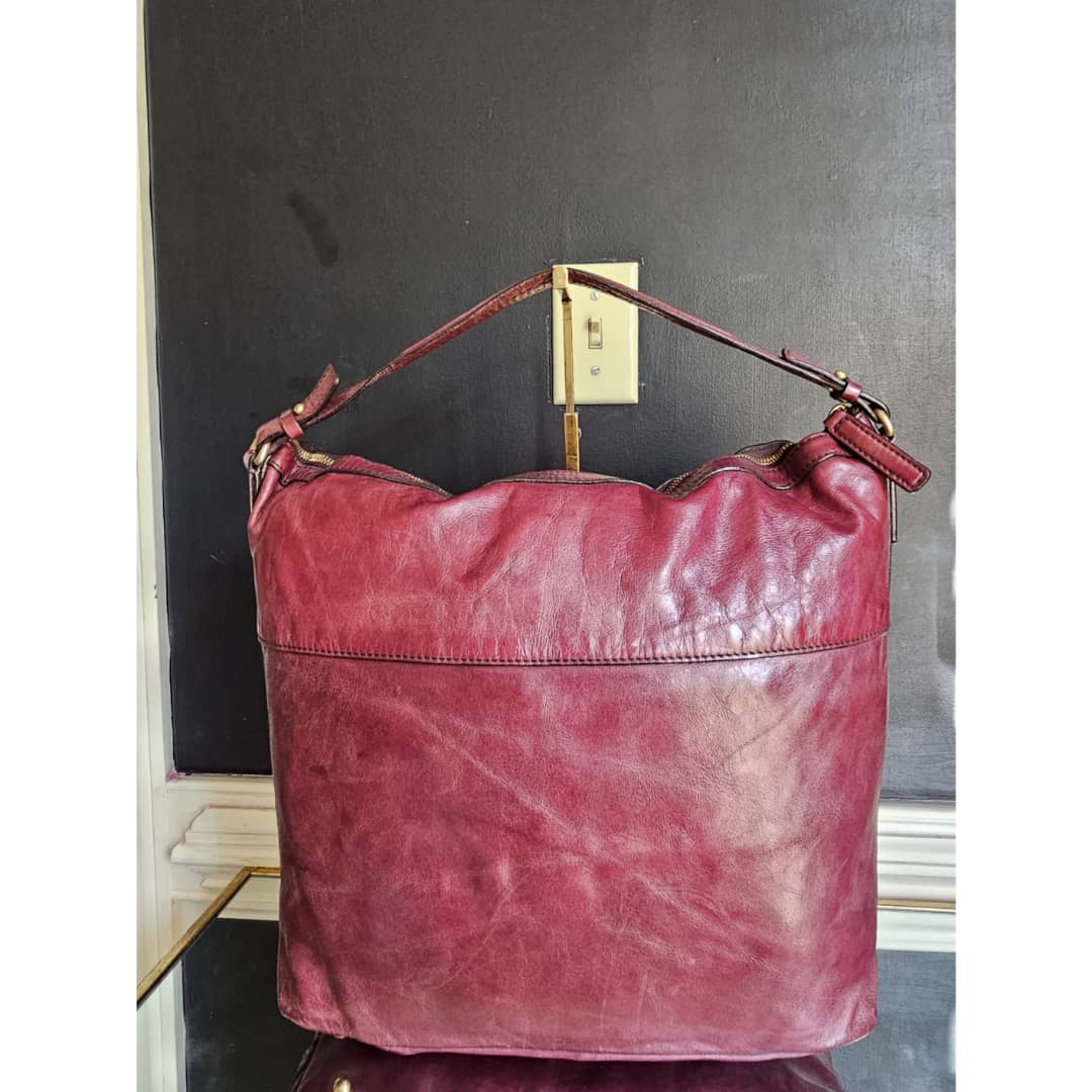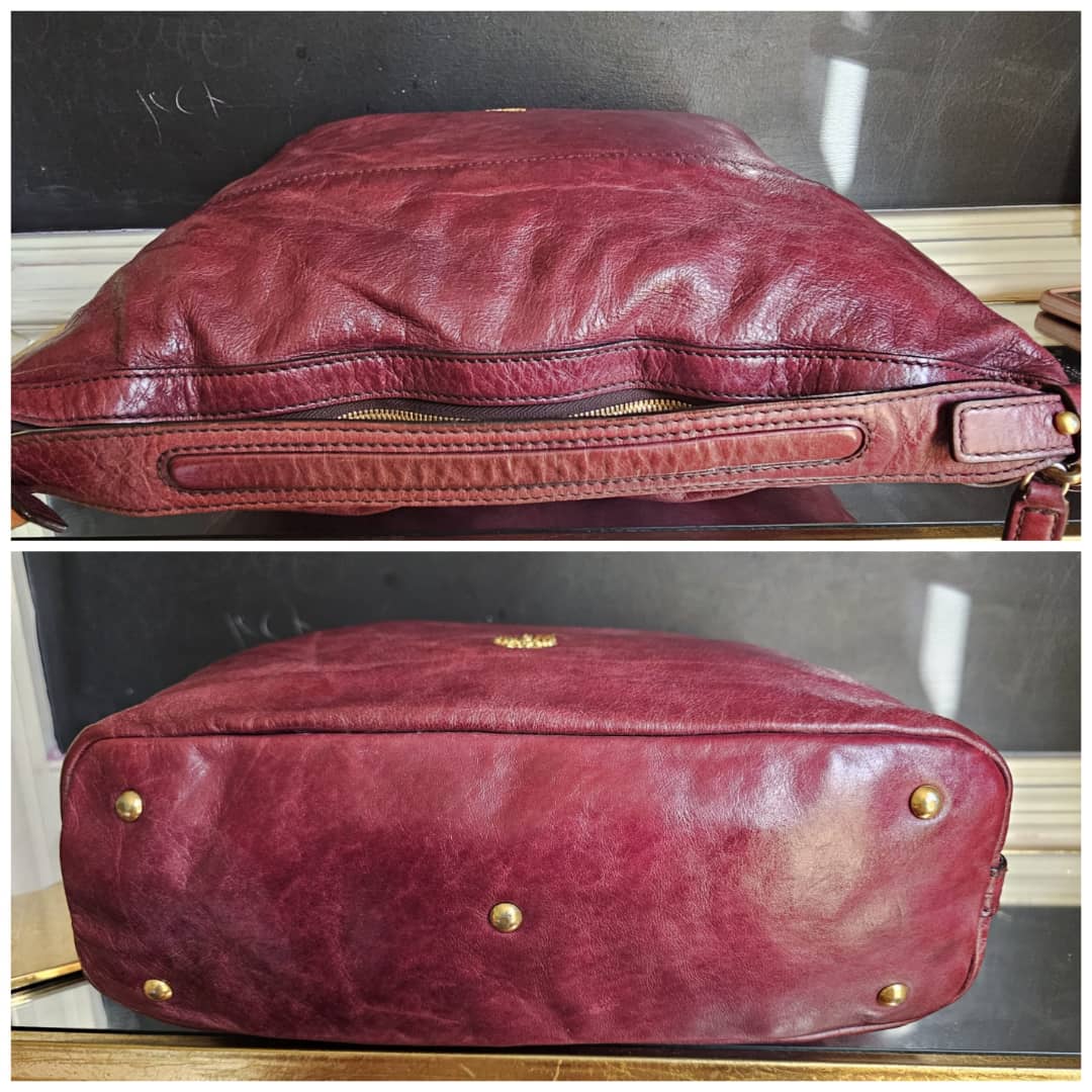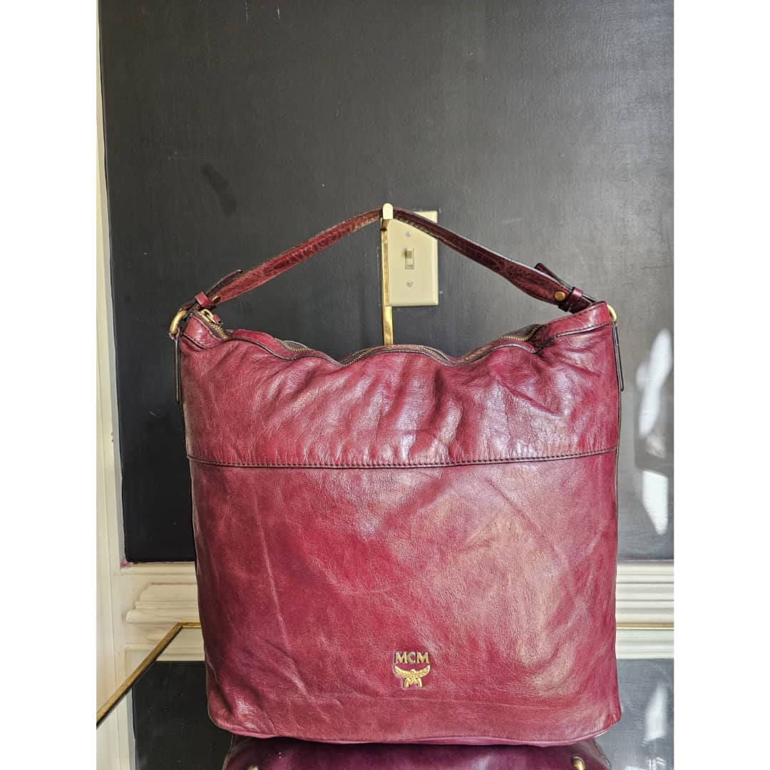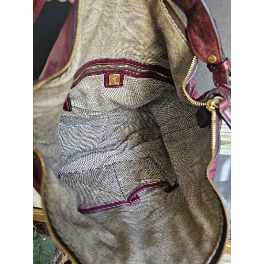 This authentic MCM Monogram Leather Hobo Bag Wine is in it’s good pre-owned condition. The exterior leather is clean and beautiful, shows little sign of leather aging and scratches (Kindly review pictures above). Interior is clean. Gold hardware.