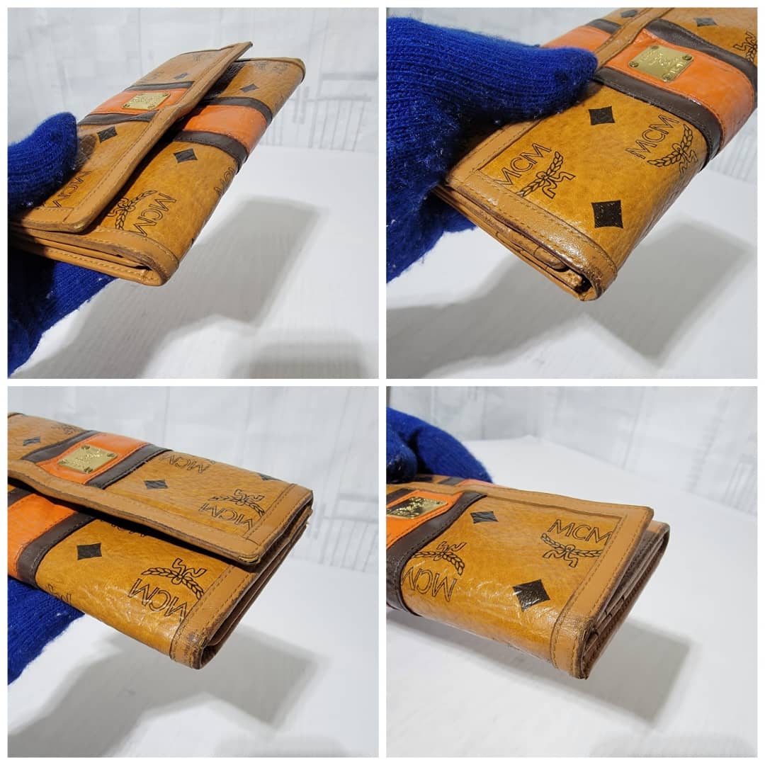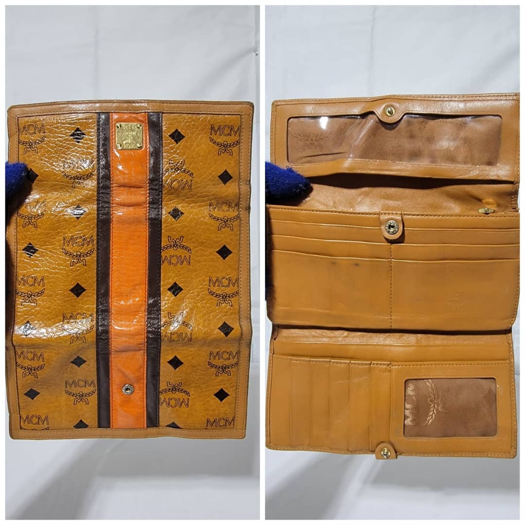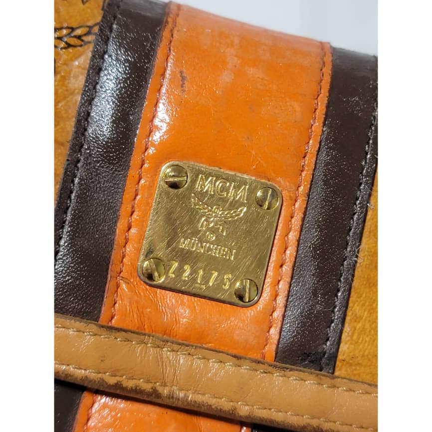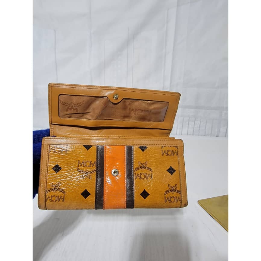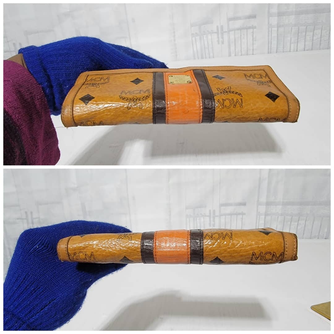 This authentic MCM Multicolor Visetos Coated canvas and leather Trifold wallet is in it’s good pre-owned condition. The exterior and interior is clean. The edges shows rubbing and scratches also the orange leather trim that runs as the strip in between the wallet shows a sign of rubbing and fade to the leather.