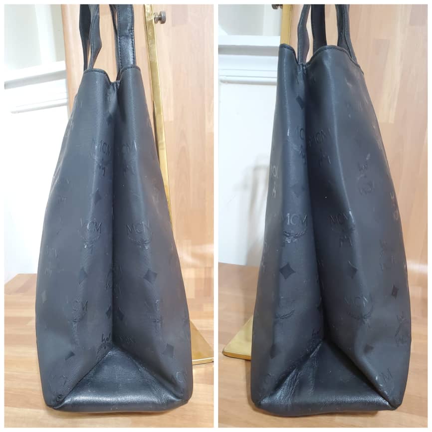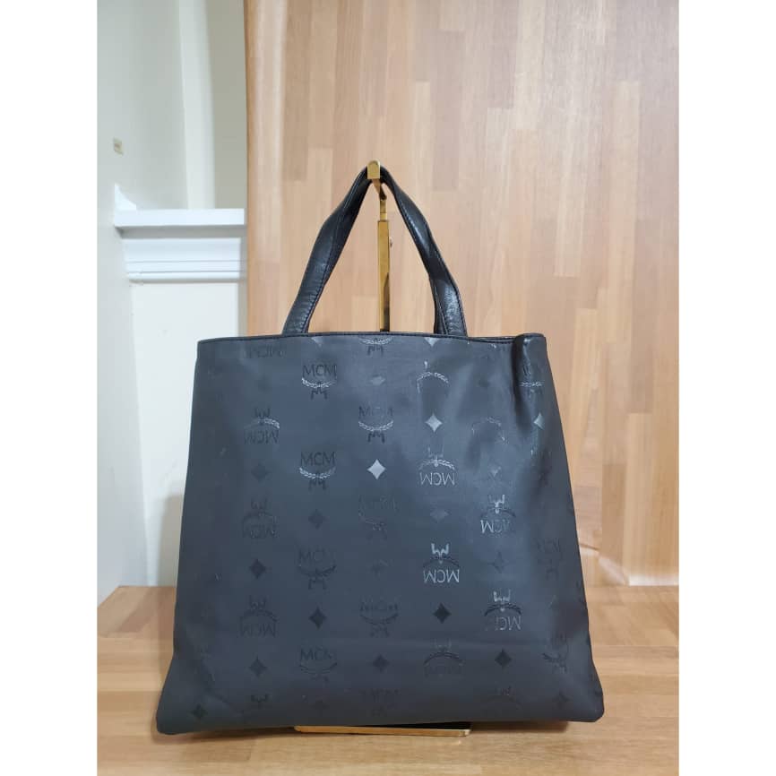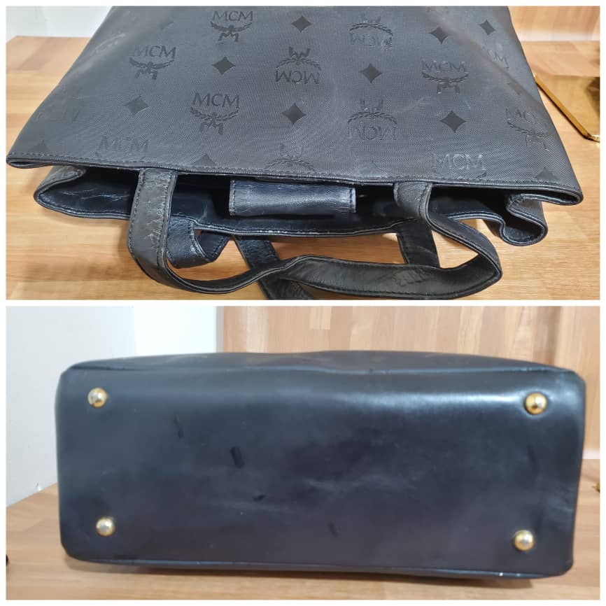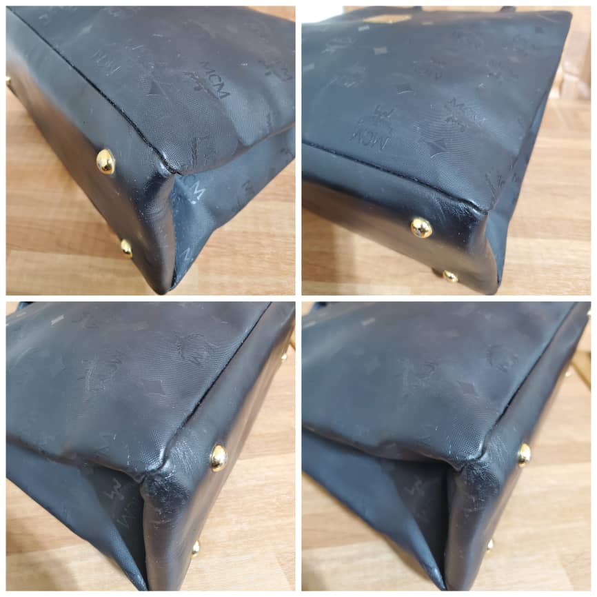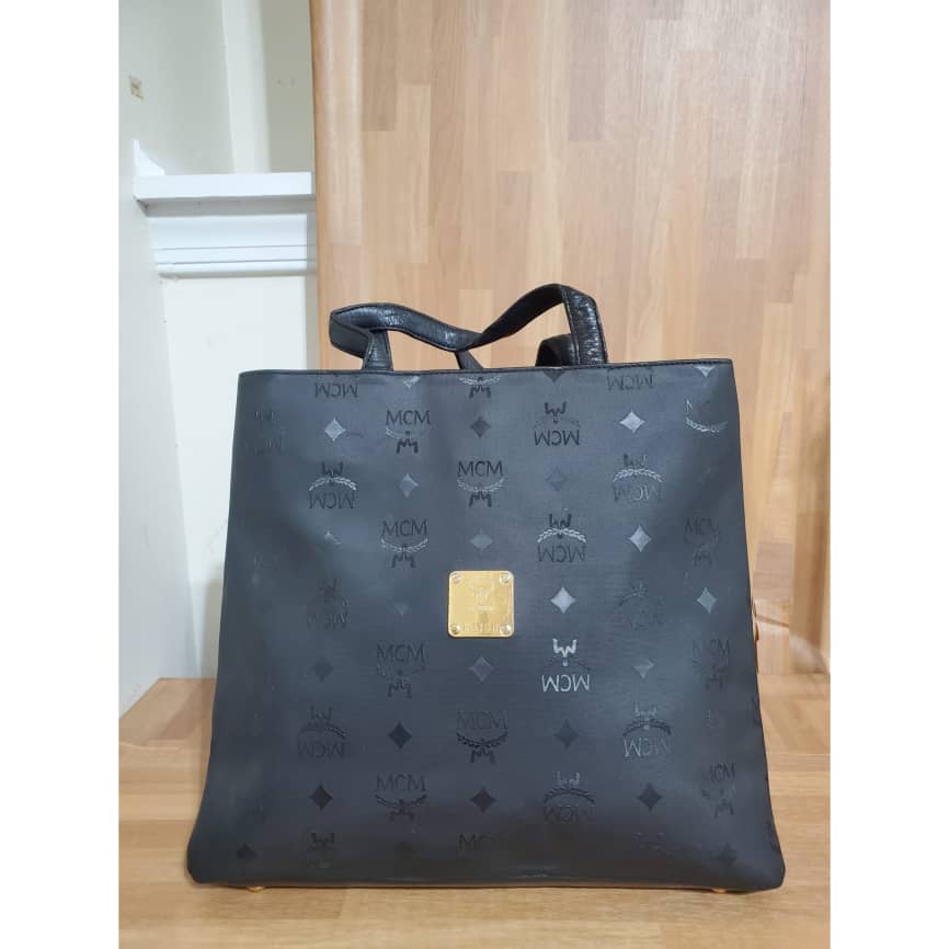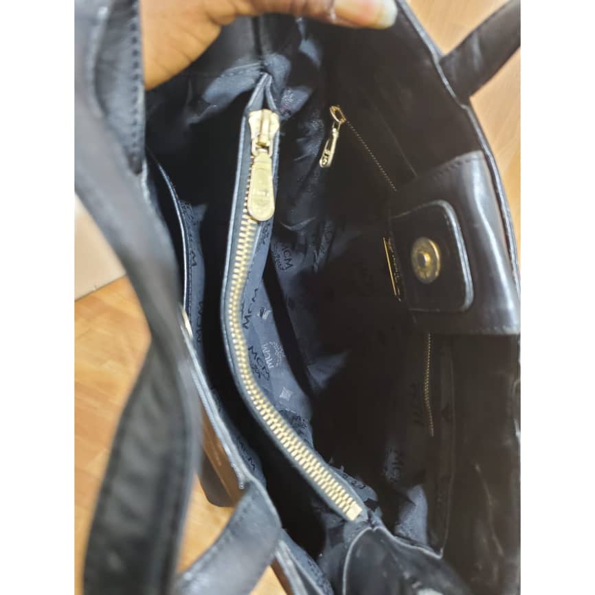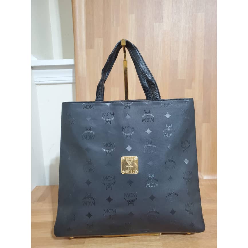 This authentic MCM MUNCHEN Black LOGO Canvas tote HandBAG is in it’s pre-owned good condition. The exterior coated canvas clean and beautiful .interior is clean. It’s a beautiful Tote with gold hardware