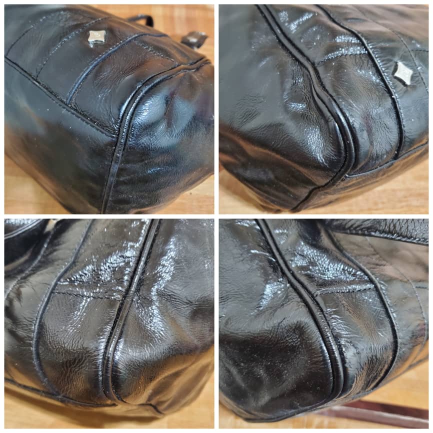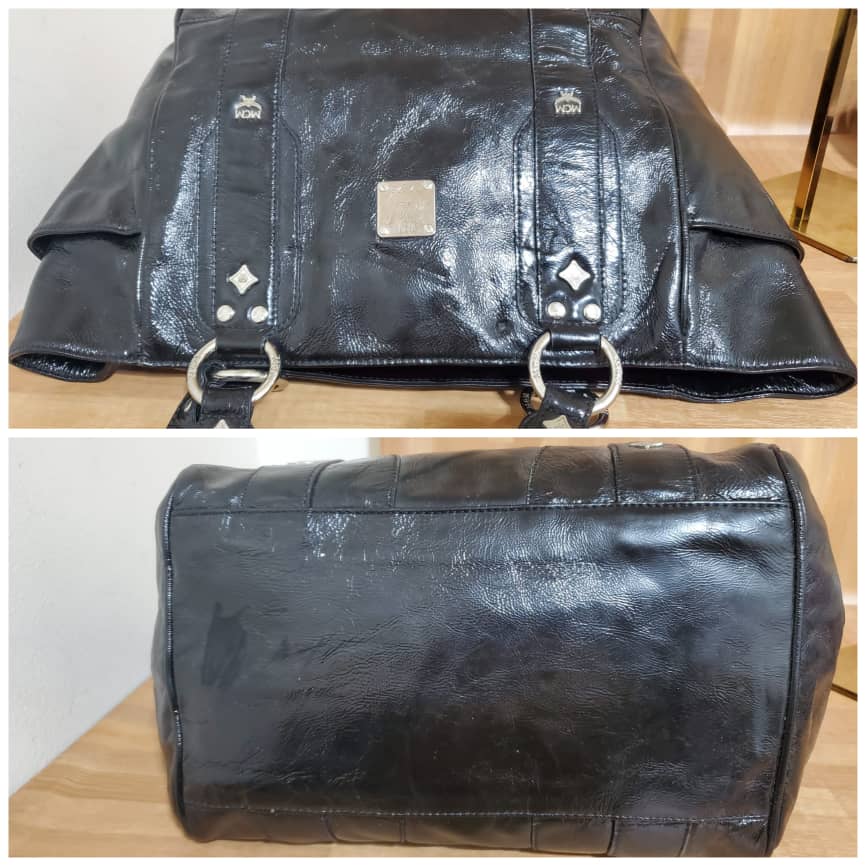 This authentic Mcm Vintage Patent Leather Large Shoulder Bag Tote with Silver Hardware is in it’s pre-owned good condition. Has sign of use. The exterior patent leather is clean and beautiful. Interior is clean. It’s a beautiful rare Tote