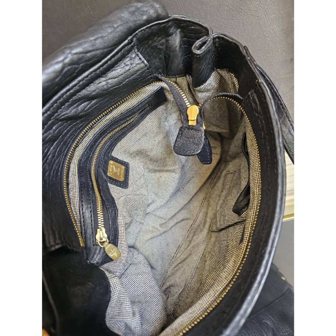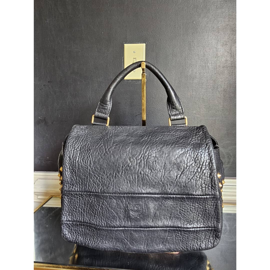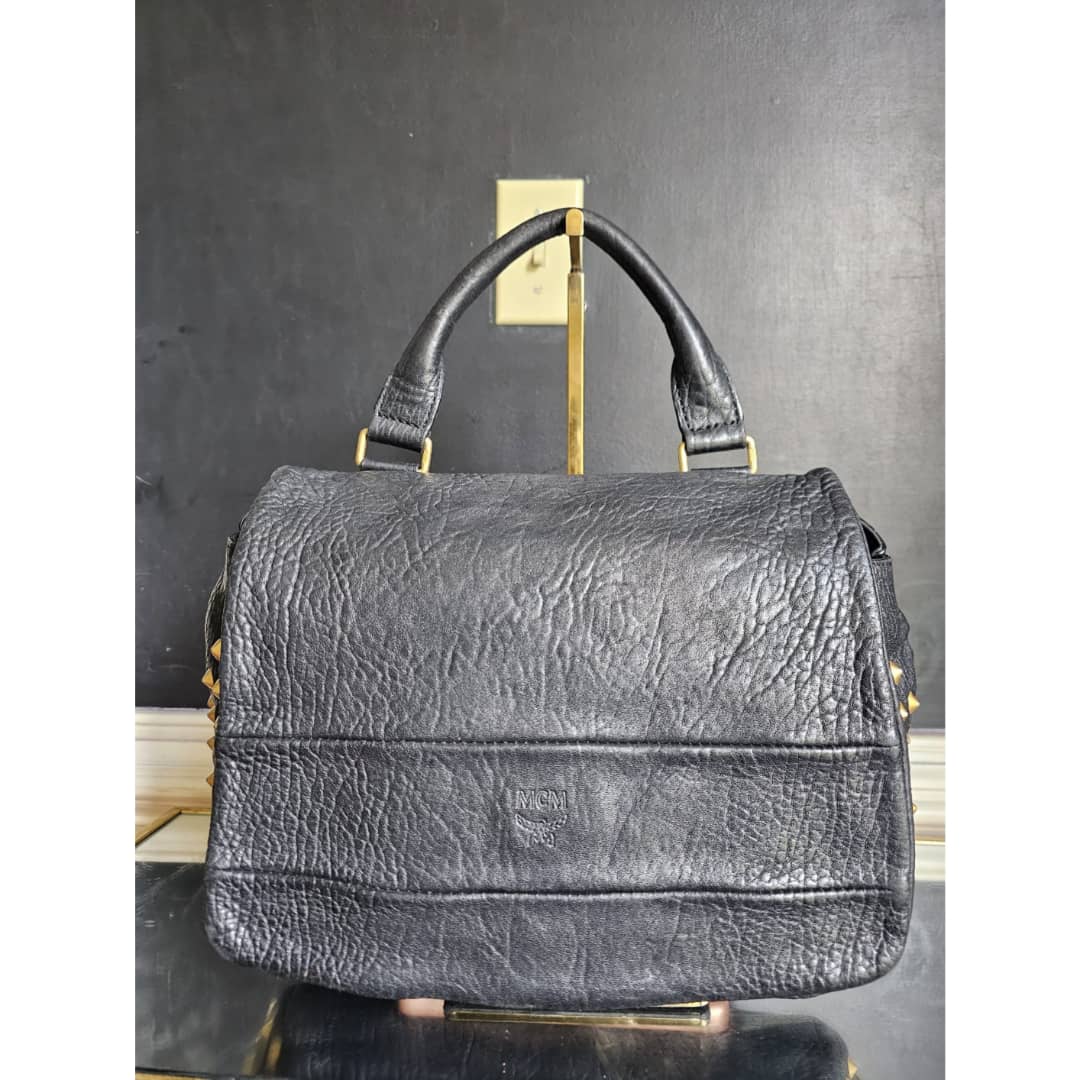 This authentic MCM Pebbled Leather Studded Bag Black is in it’s good pre-owned condition. The exterior leather is clean and beautiful. Interior is clean. Gold hardware. Comes with a top handle and long adjustable strap. Can be worn as a handbag or shoulder bag.