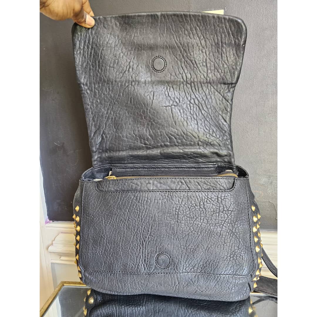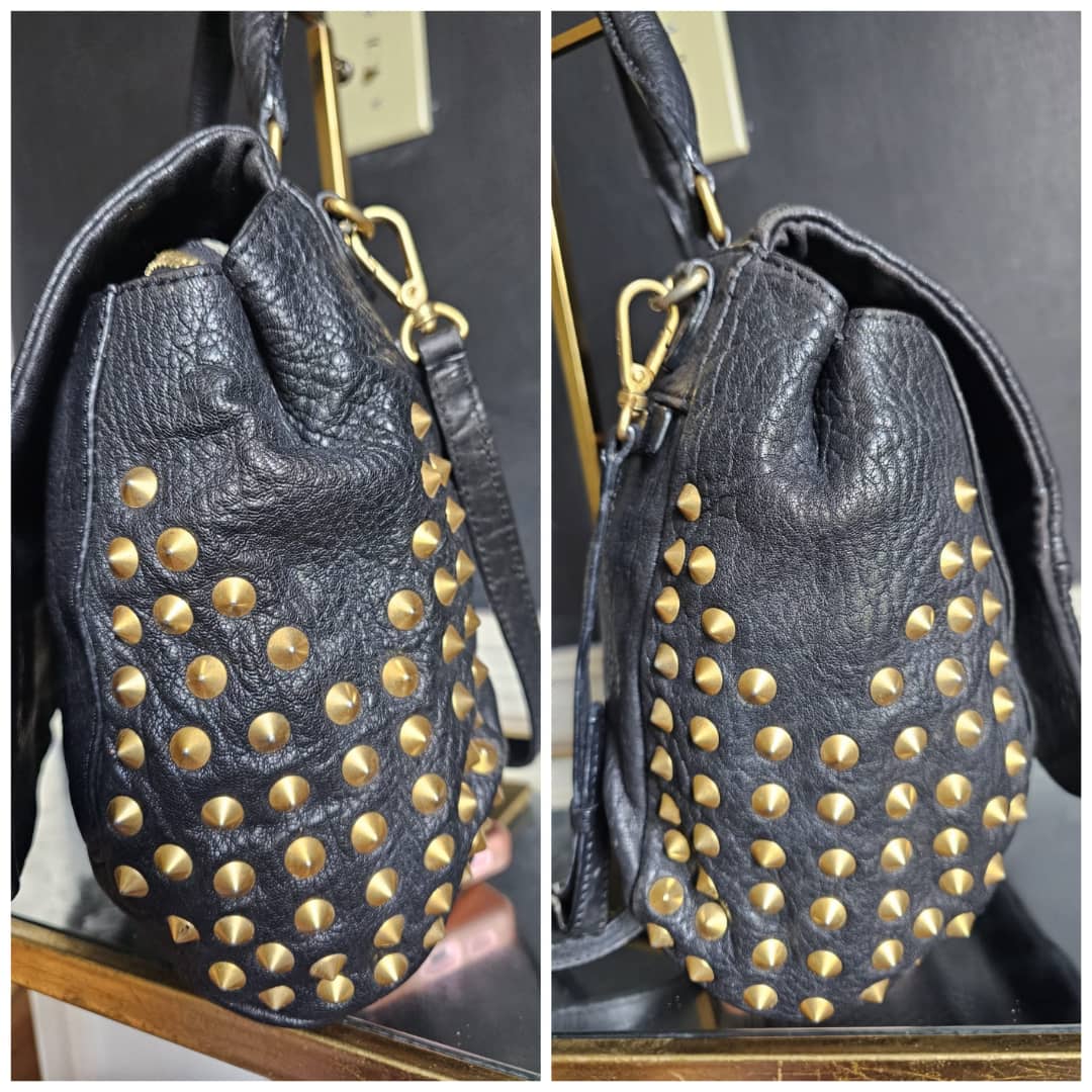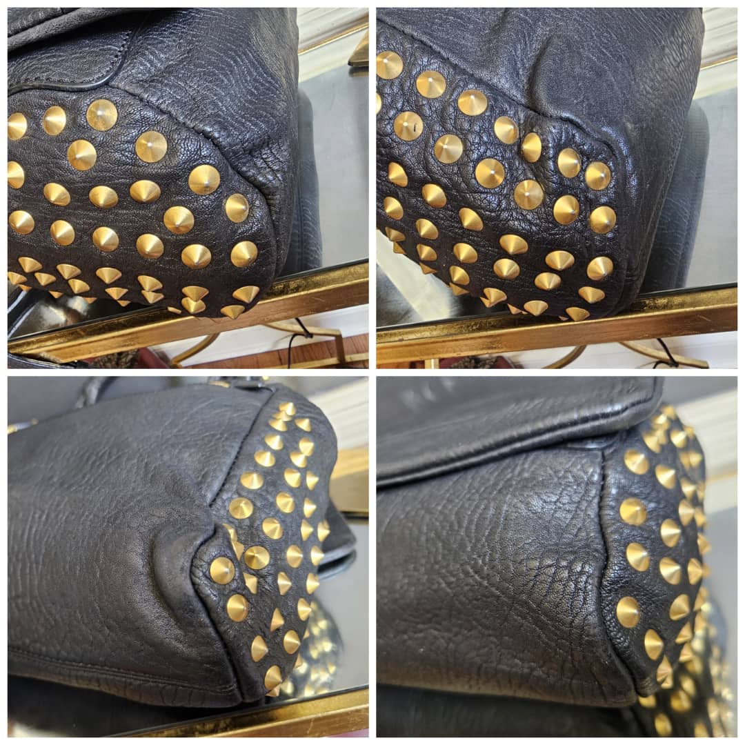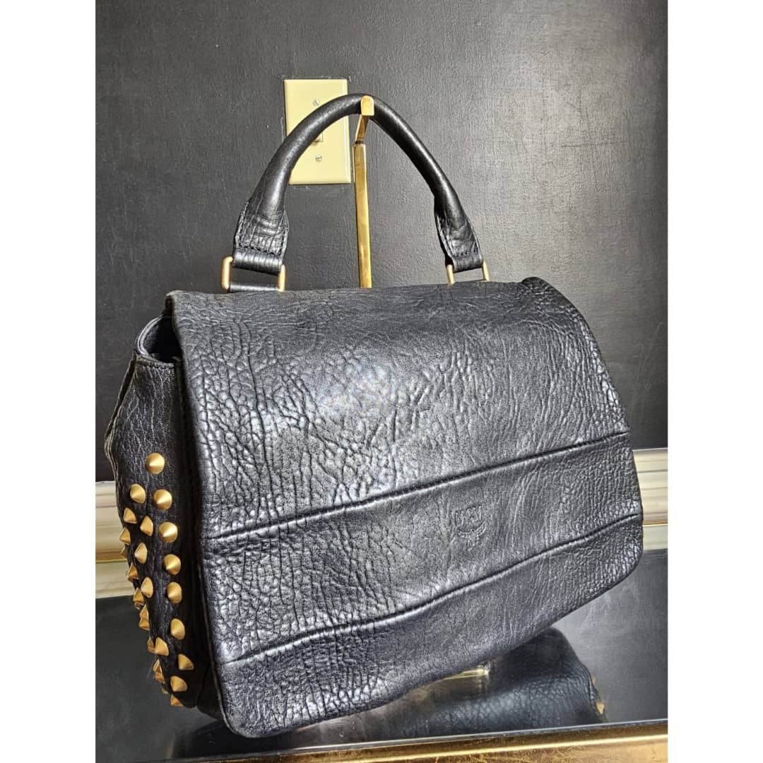 This authentic MCM Pebbled Leather Studded Bag Black is in it’s good pre-owned condition. The exterior leather is clean and beautiful. Interior is clean. Gold hardware. Comes with a top handle and long adjustable strap. Can be worn as a handbag or shoulder bag.