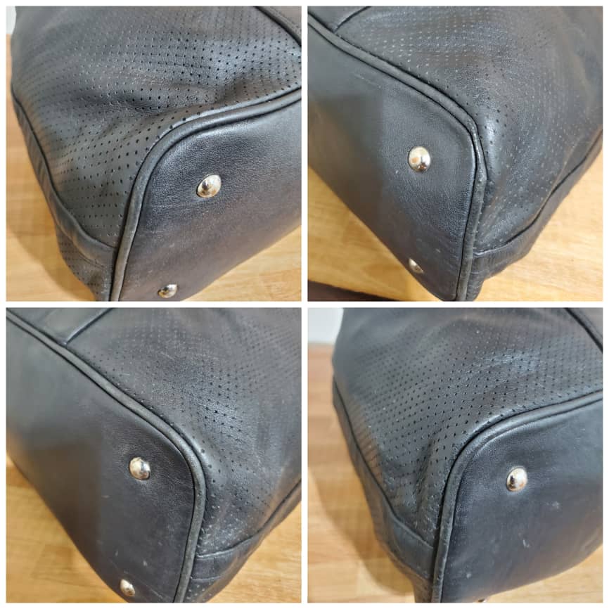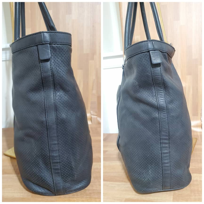 This authentic MCM Perforated Black Tote is in its pre-owned condition.has sign of use. The exterior Perforated leather is clean and beautiful. Interior is clean and beautiful. Kindly note it doesn’t hold up shape. I will include a bag organizer to keep shape up