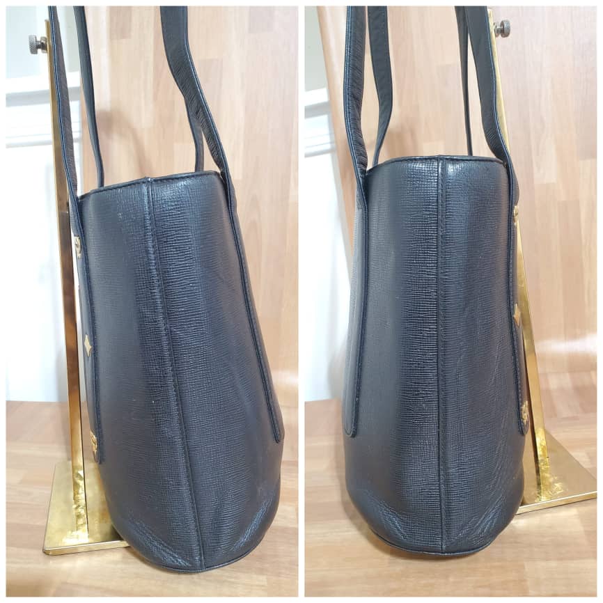 This authentic MCM Small Leather Tote Bag is in it’s pre-owned good condition. The exterior leather is clean and beautiful. Interior is excellent. Great small tote bag.