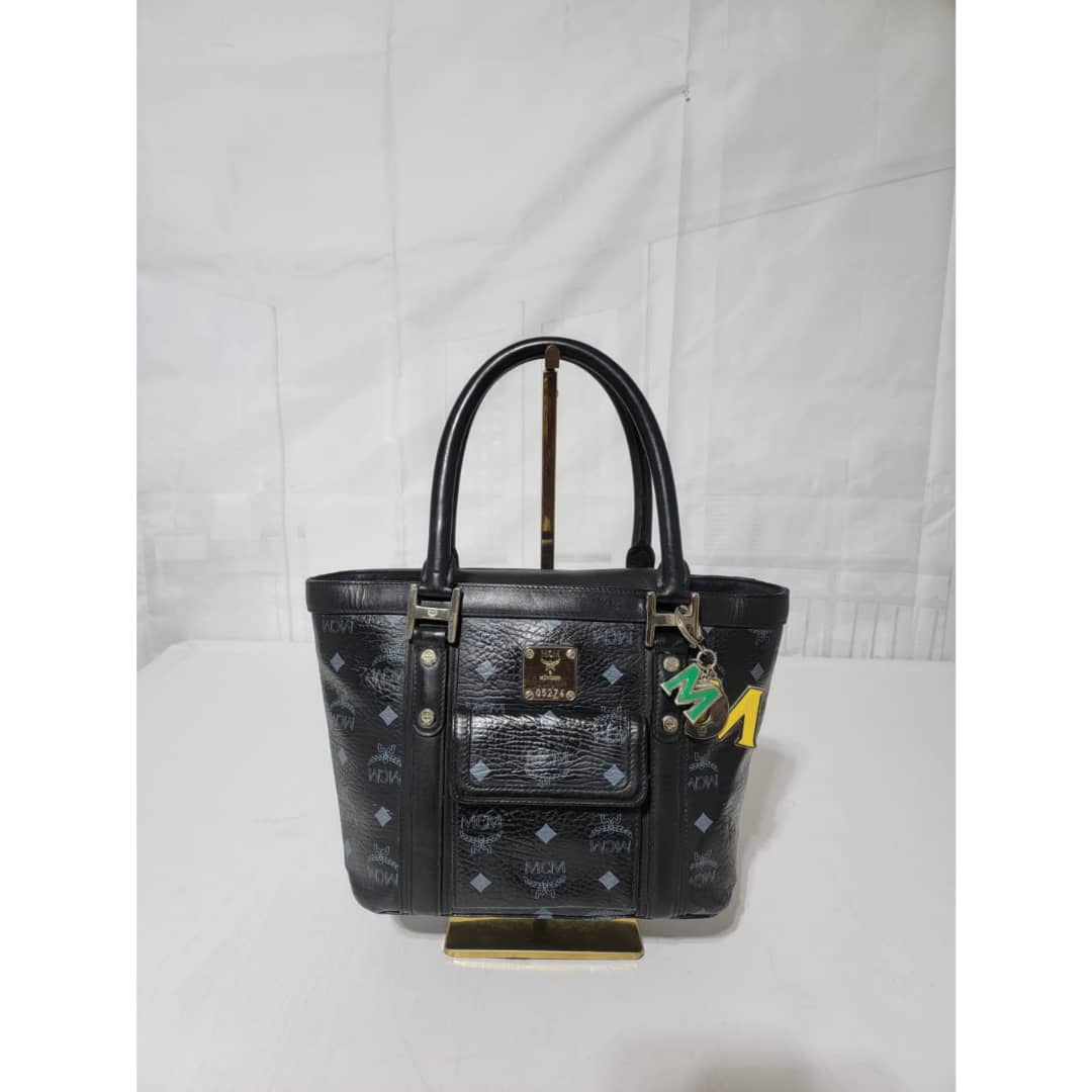 This authentic MCM Small Visetos Coated Canvas and Leather Pocket Tote Black is in it’s good pre-owned condition. The exterior canvas is clean and beautiful. Interior is clean. Comes with a front pocket and a multicolored charm. Silver hardware. It is a very beautiful bag in great condition.
