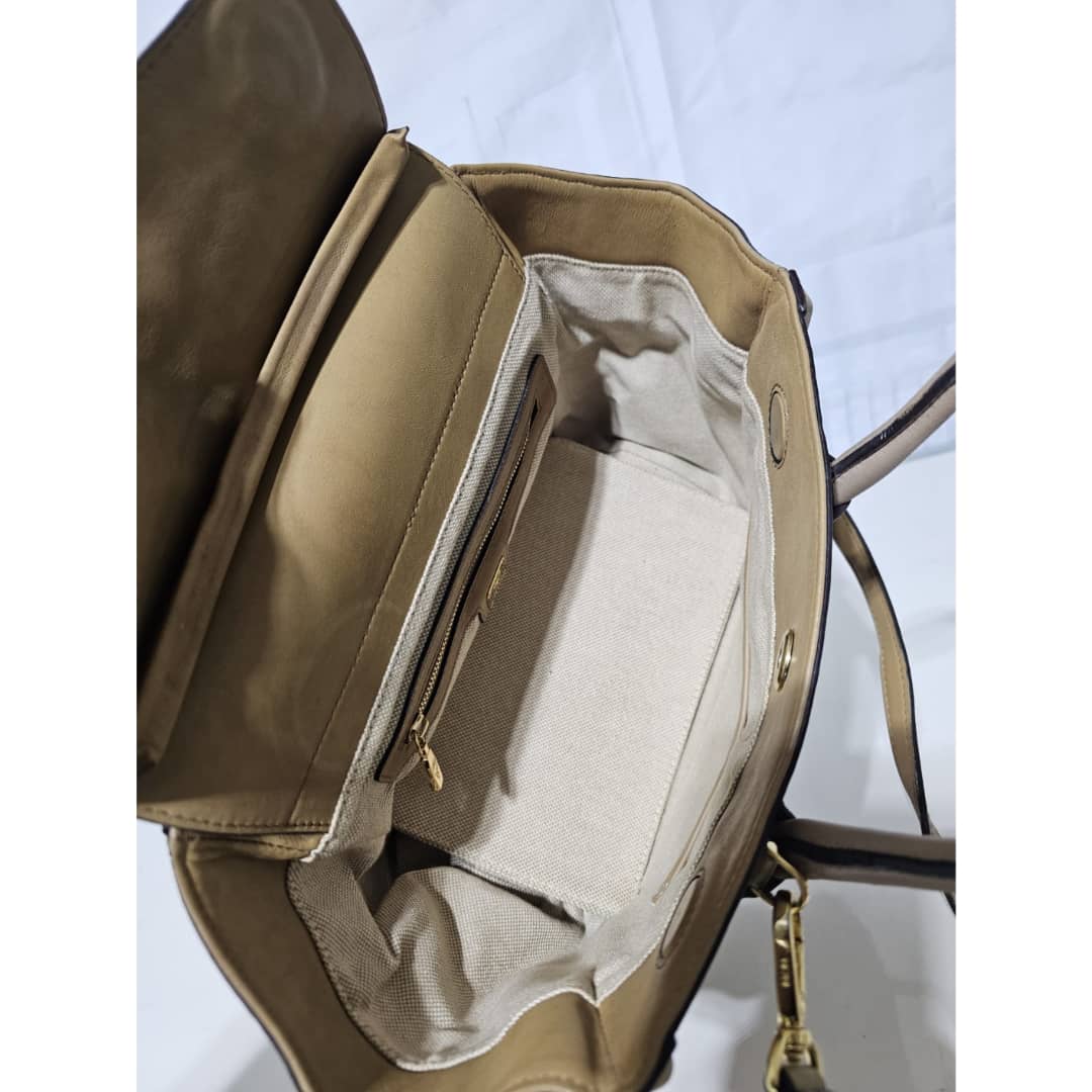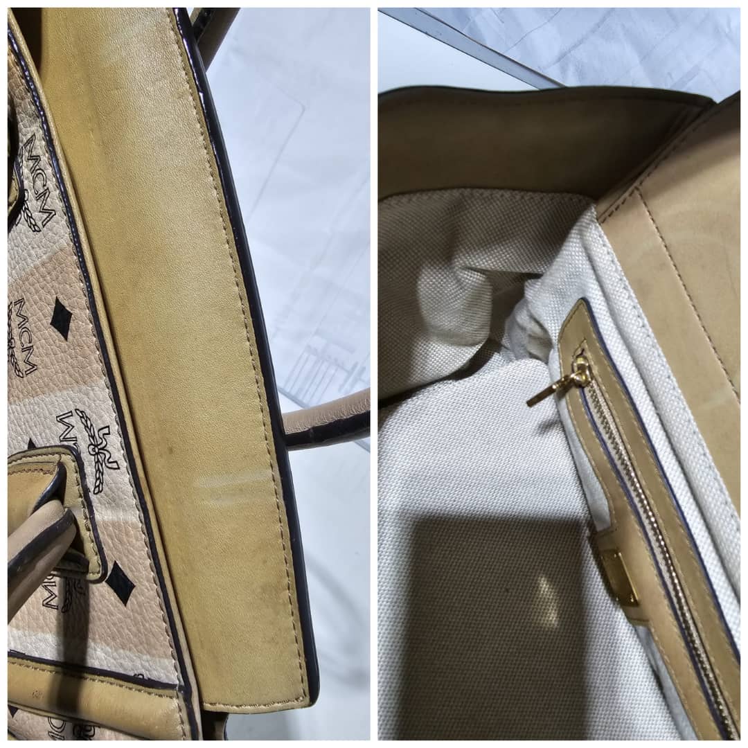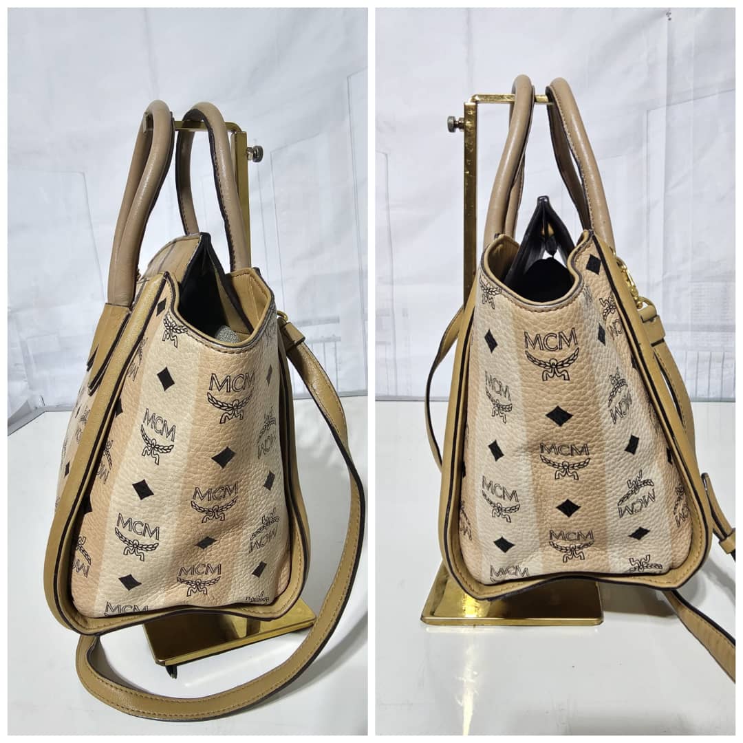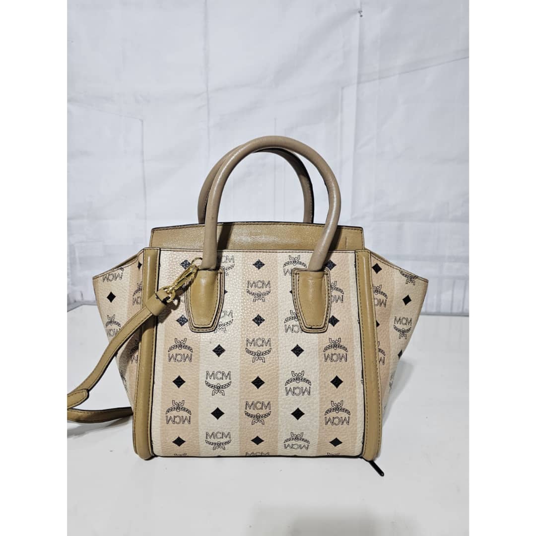 This authentic MCM Striped Visetos Small Kathy Double Zip Tote Beige is in it’s good pre-owned condition. The exterior canvas and leather is clean and beautiful. The interior is clean. The handle and top flap has little scratches (Kindly review pictures above).