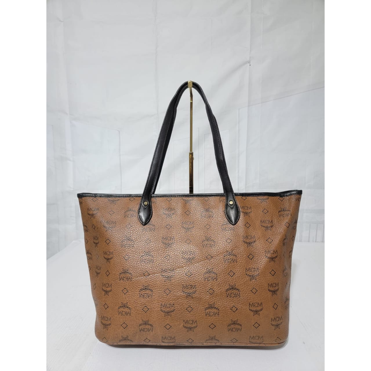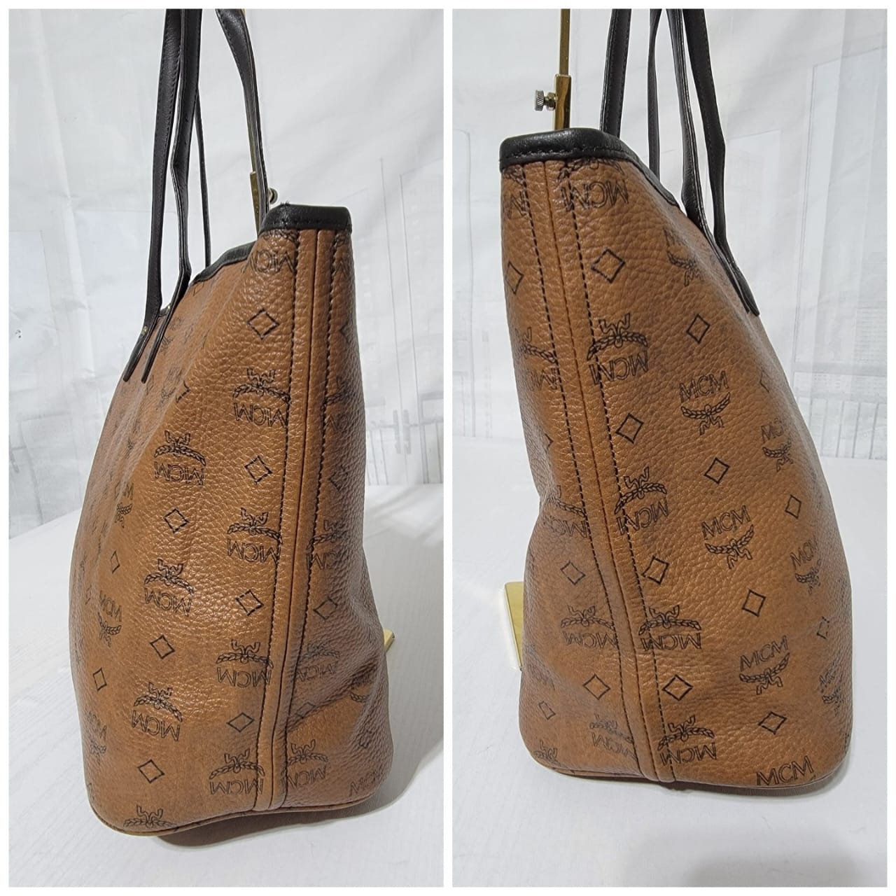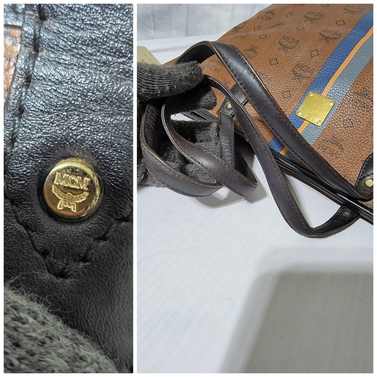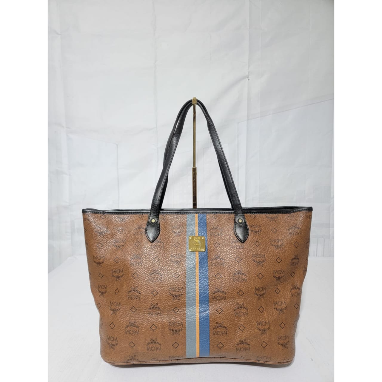 This authentic MCM Top Zip Stripped Shopper Tote Bag Brown is in it’s good pre-owned condition. The exterior is clean and beautiful. Interior is clean. Gold hardware. It has a deep brown color trim and handle.