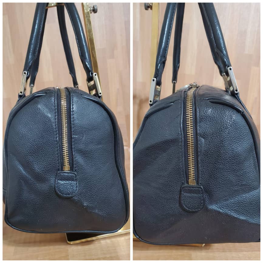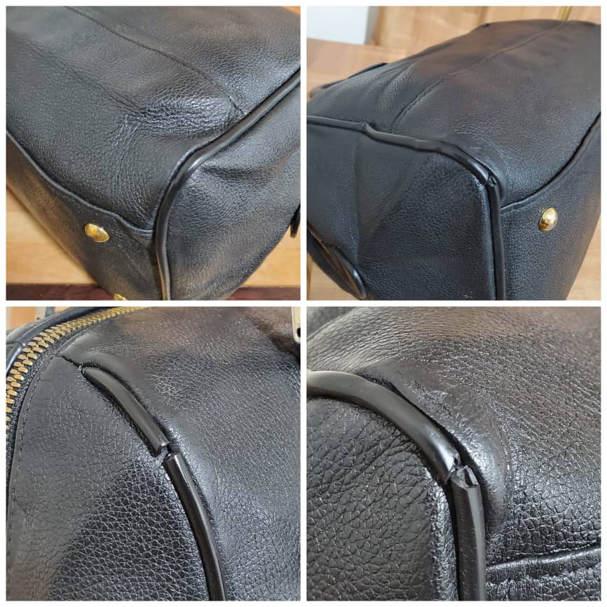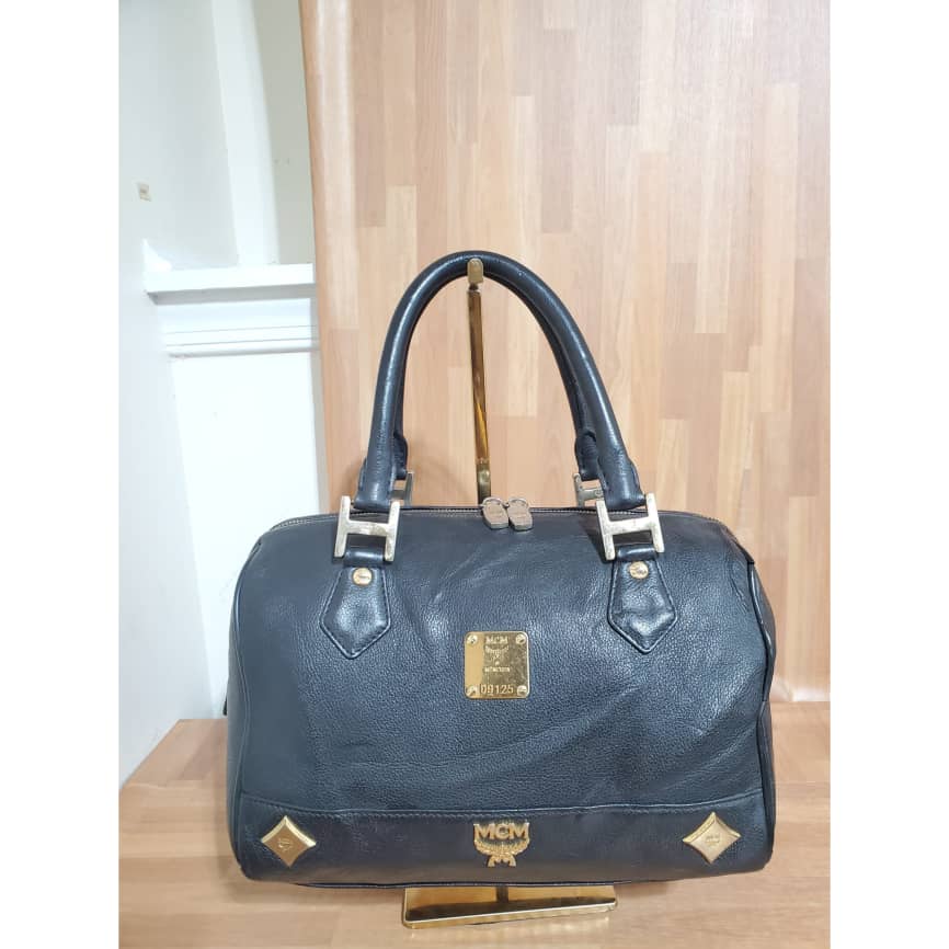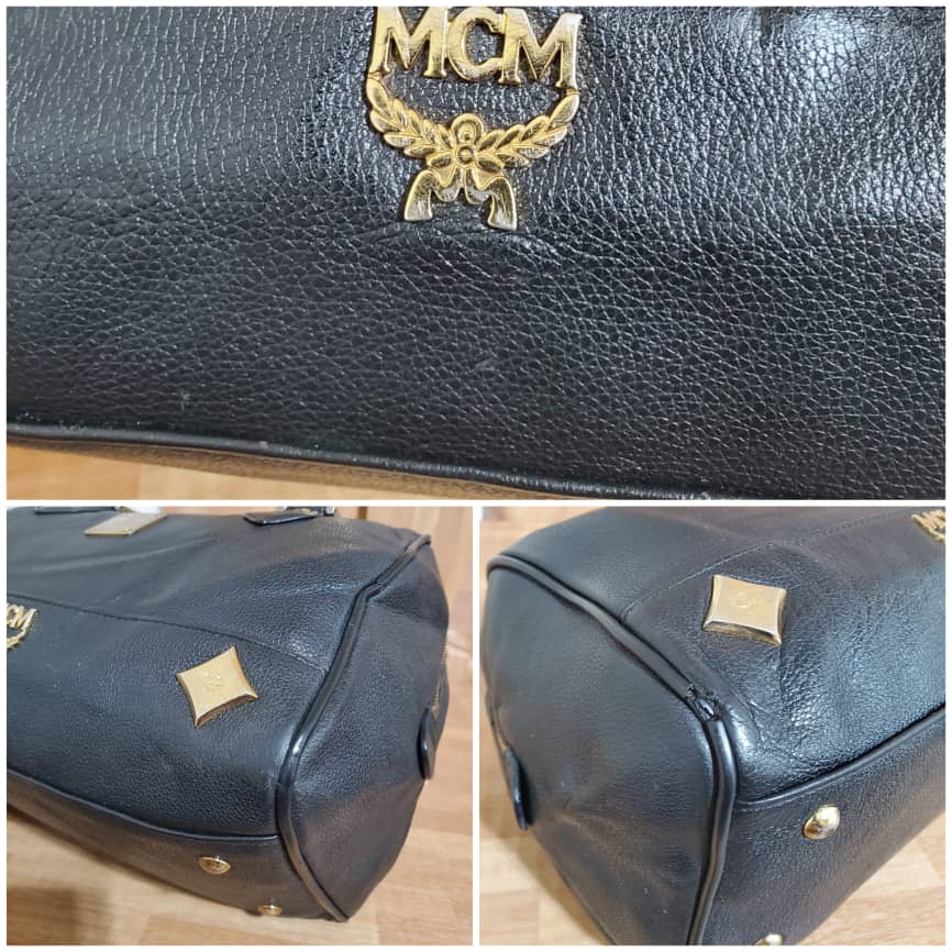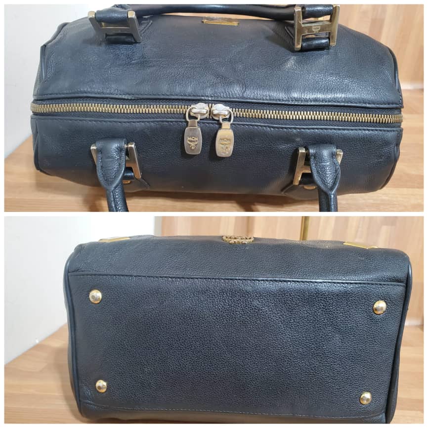 This authentic MCM Vintage Boston Bag Caviar Leather is in its pre-owned good condition. Gold hardware. The exterior leather is clean and beautiful. Interior is clean. The edges trim pipe shows cuts in between kindly check pictures. Still holds it shape.