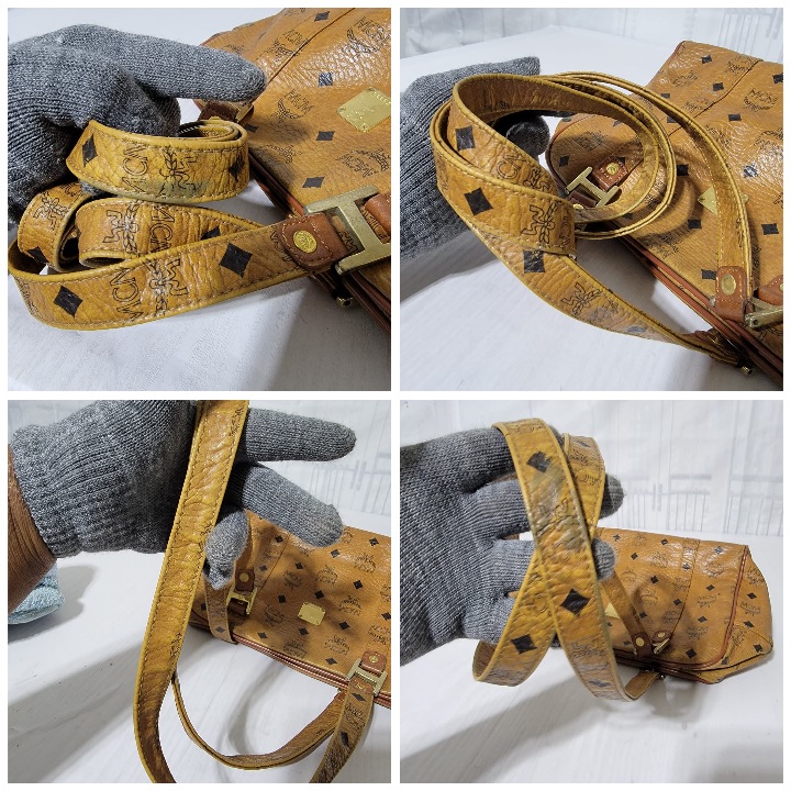 This authentic MCM Full Zip Shoulder Bag Cognac is in it’s good pre-owned condition. The exterior coated leather is clean, it is in it’s vintage condition (Kindly look at pictures above). Gold hardware shows scratches and scratches to the leather. Interior is clean, it’s in good vintage condition. Handle shows rubbing wear