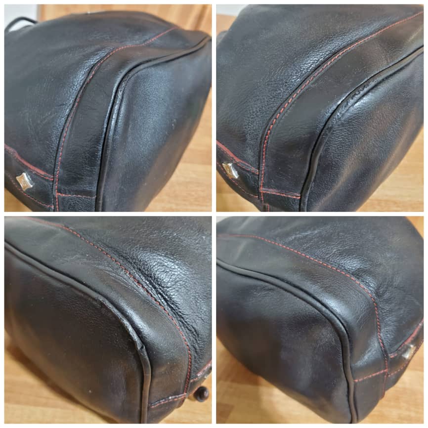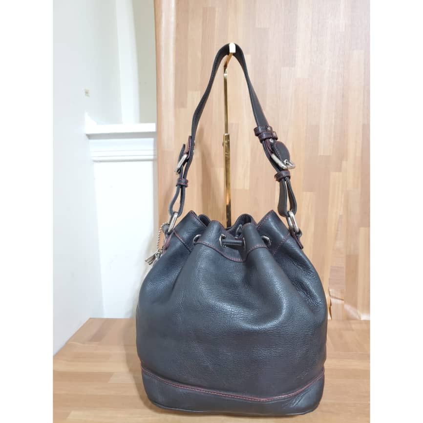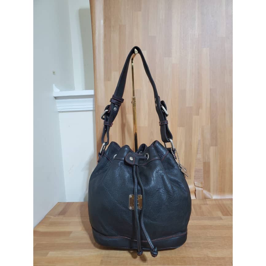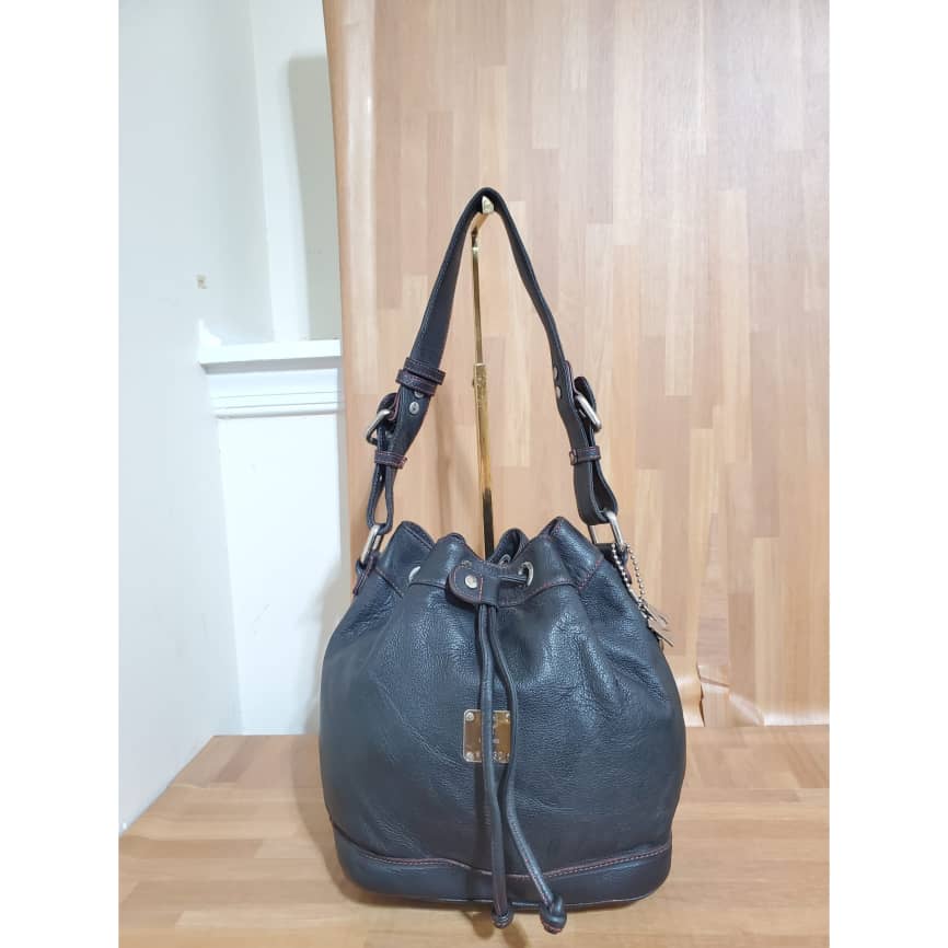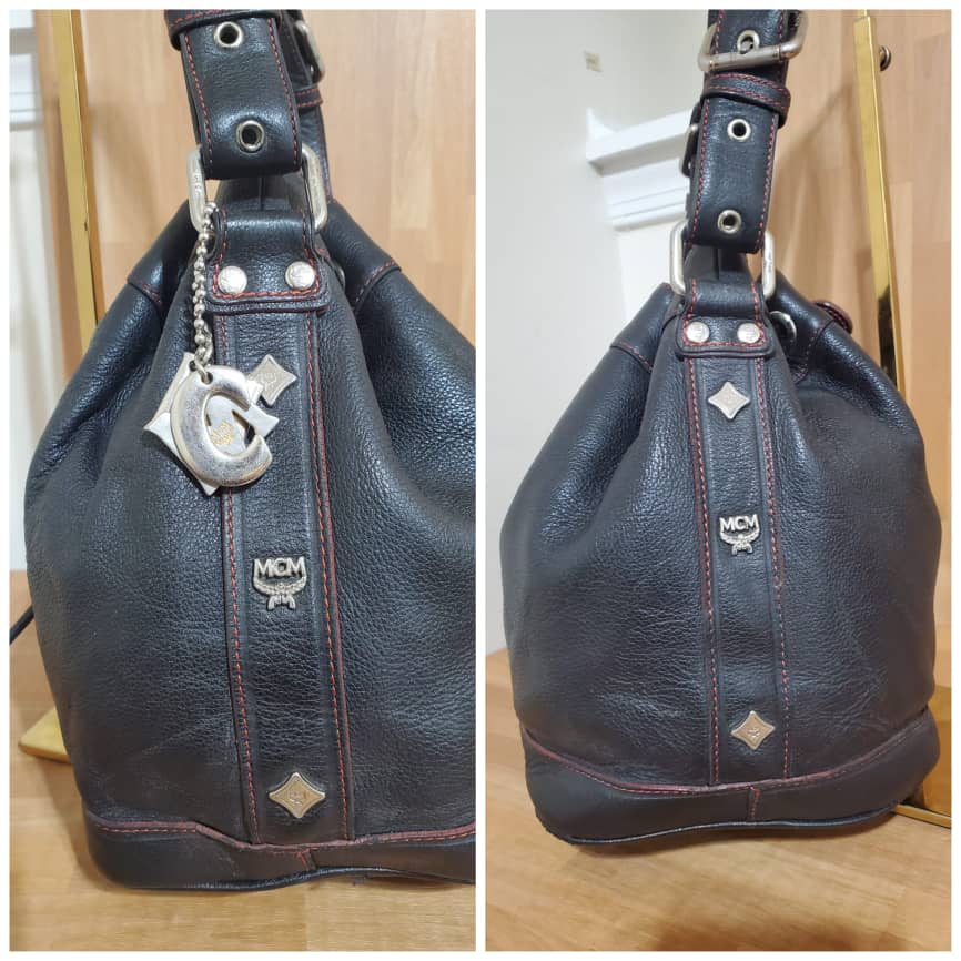 This authentic MCM Vintage Drawstring Bucket Shoulder Bag silver hardware, is in it’s pre-owned condition.has sign of use .The exterior leather is clean and beautiful. Interior is clean. Has mcm charm.