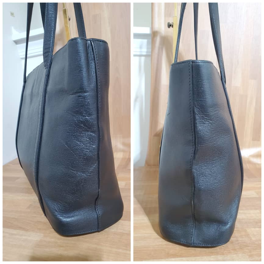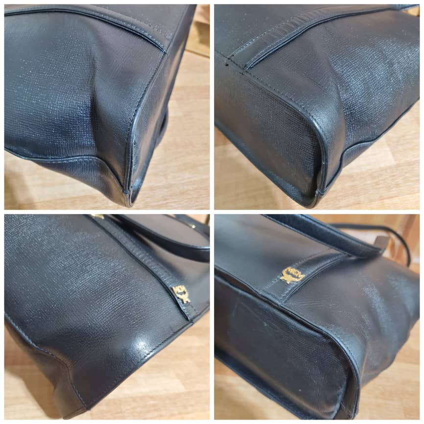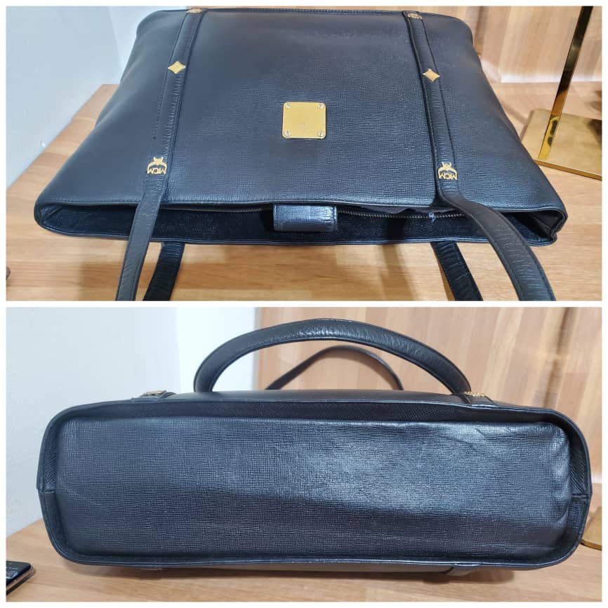 This authentic MCM Vintage Leather Signature Gold Studs Tote is in its pre-owned good condition. The exterior leather is clean and beautiful. Interior is clean. Gold hardware bright and crispy. Overall great condition. And a beautiful Tote Bag