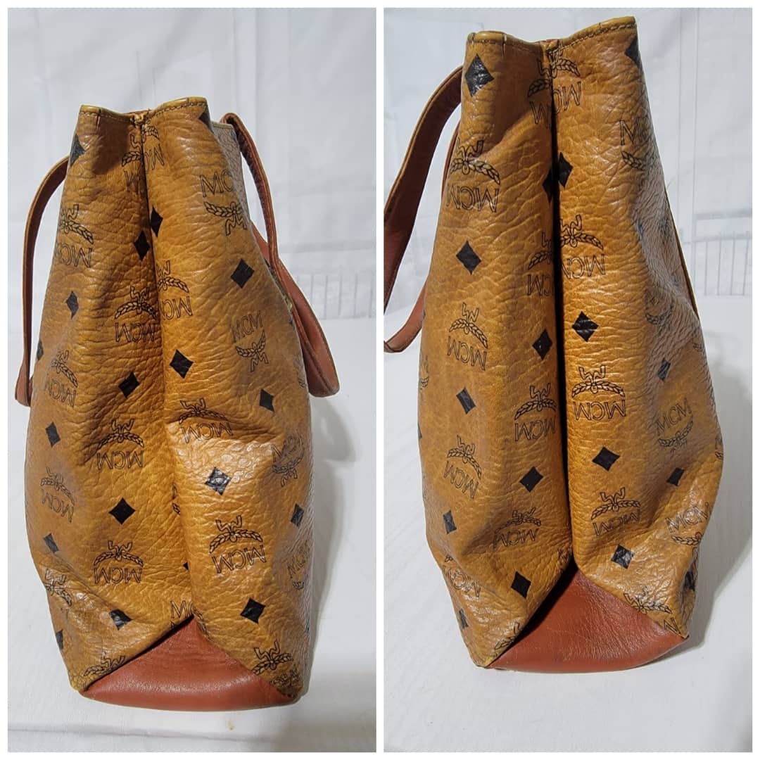 This authentic MCM Vintage Shopper Tote Bag is in it’s good pre-owned condition. The exterior canvas is clean and beautiful but shows sign of wear. The base edges shows scuffing. The handle strap shows scratches . Interior is clean but generally shows sign of use wear pen marks inside the bag (Kindly look at pictures above).