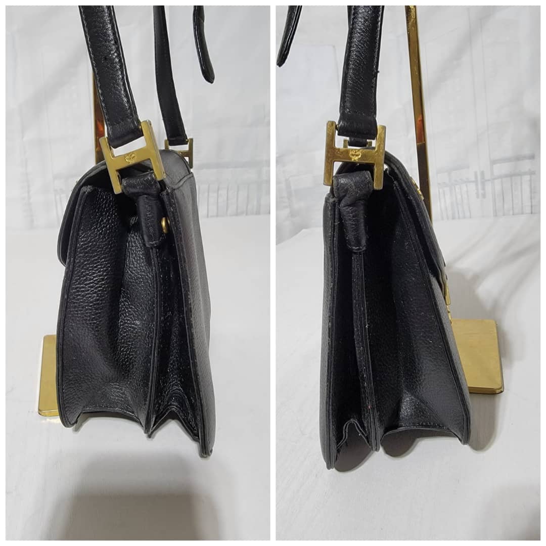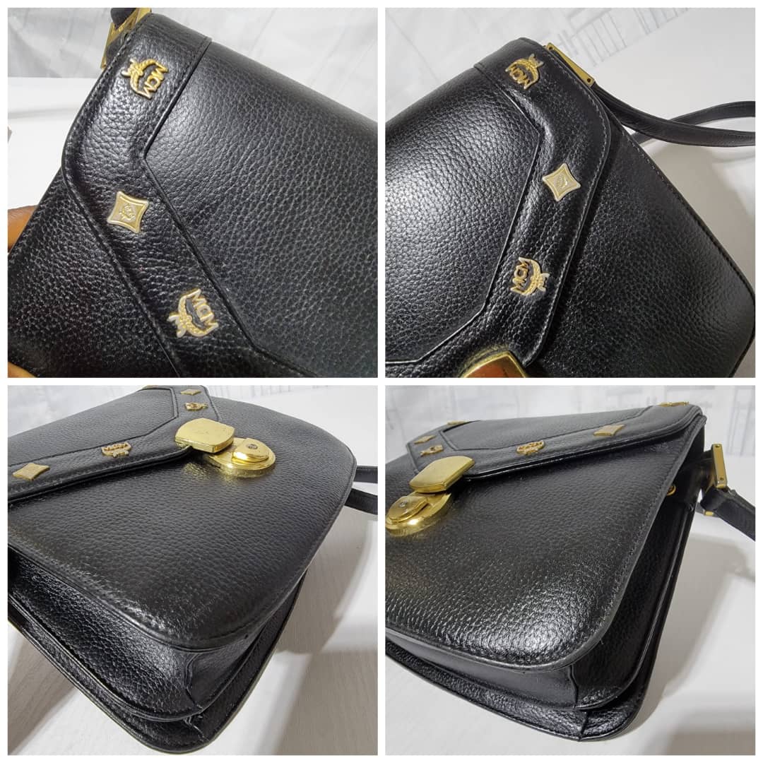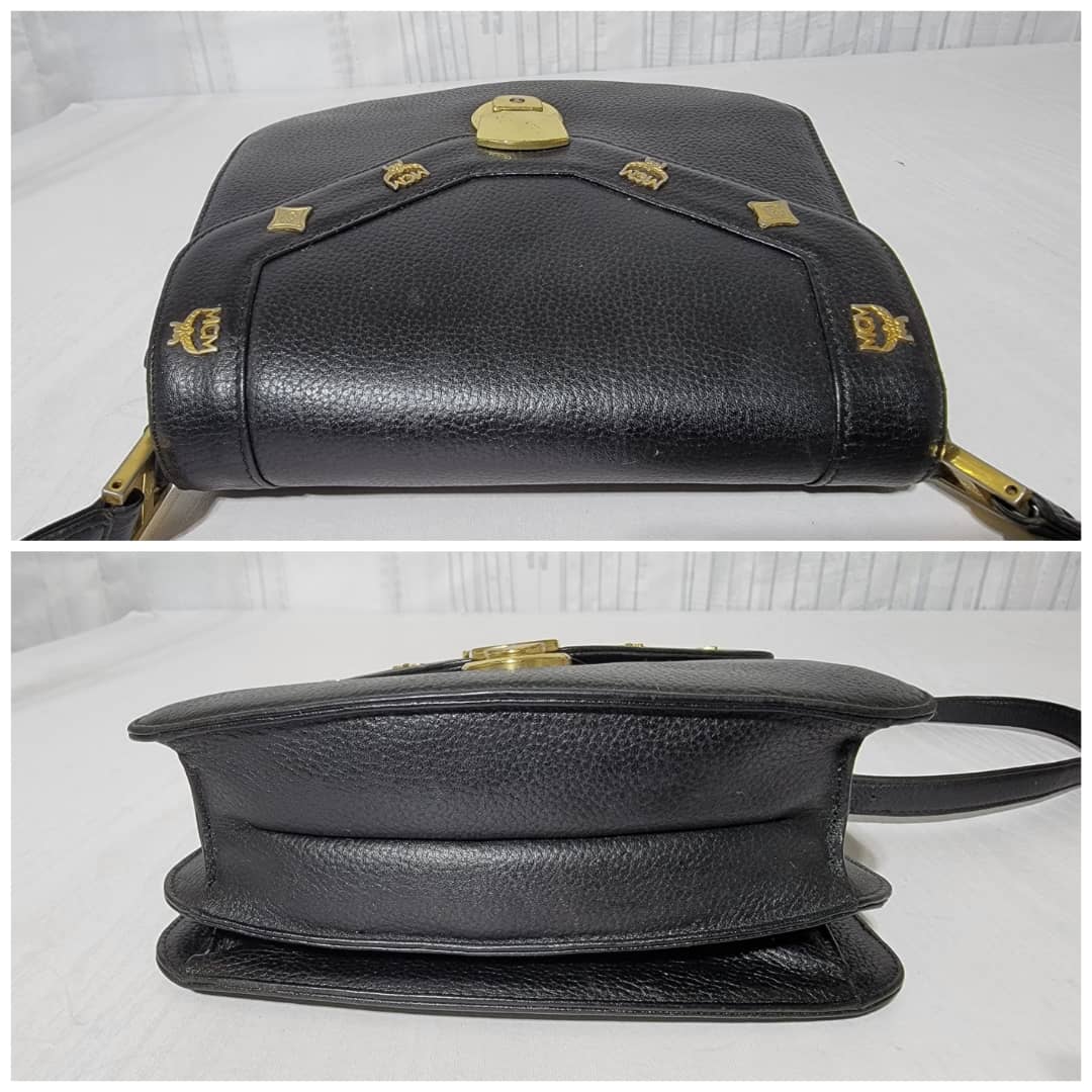 This authentic MCM Vintage Textured Leather Crossbody Bag Black is in it’s good pre-owned condition. The exterior leather is clean and beautiful. Interior is clean. Gold hardware shows some rubbing. Can be worn as a crossbody/shoulder bag. Adjustable strap.