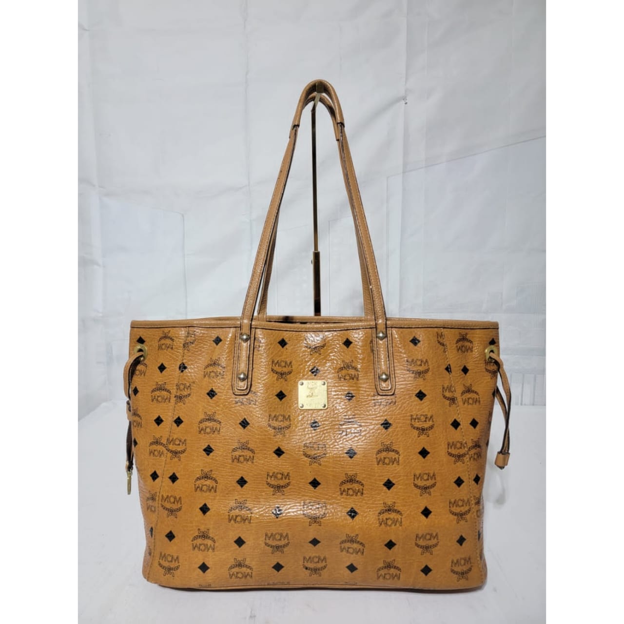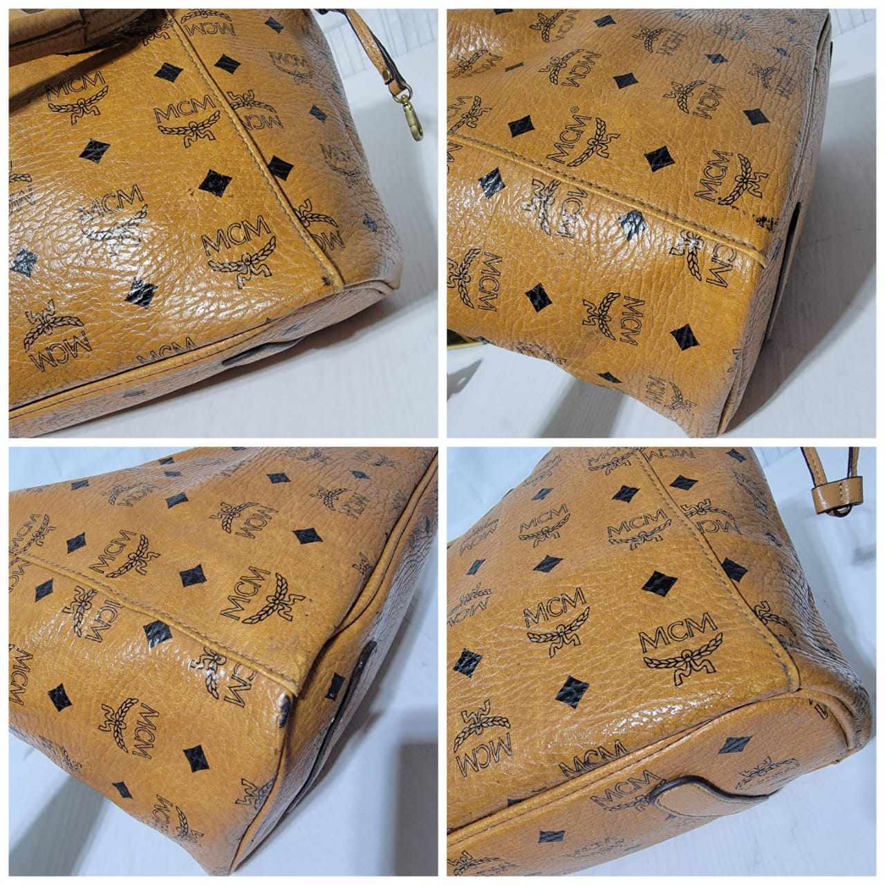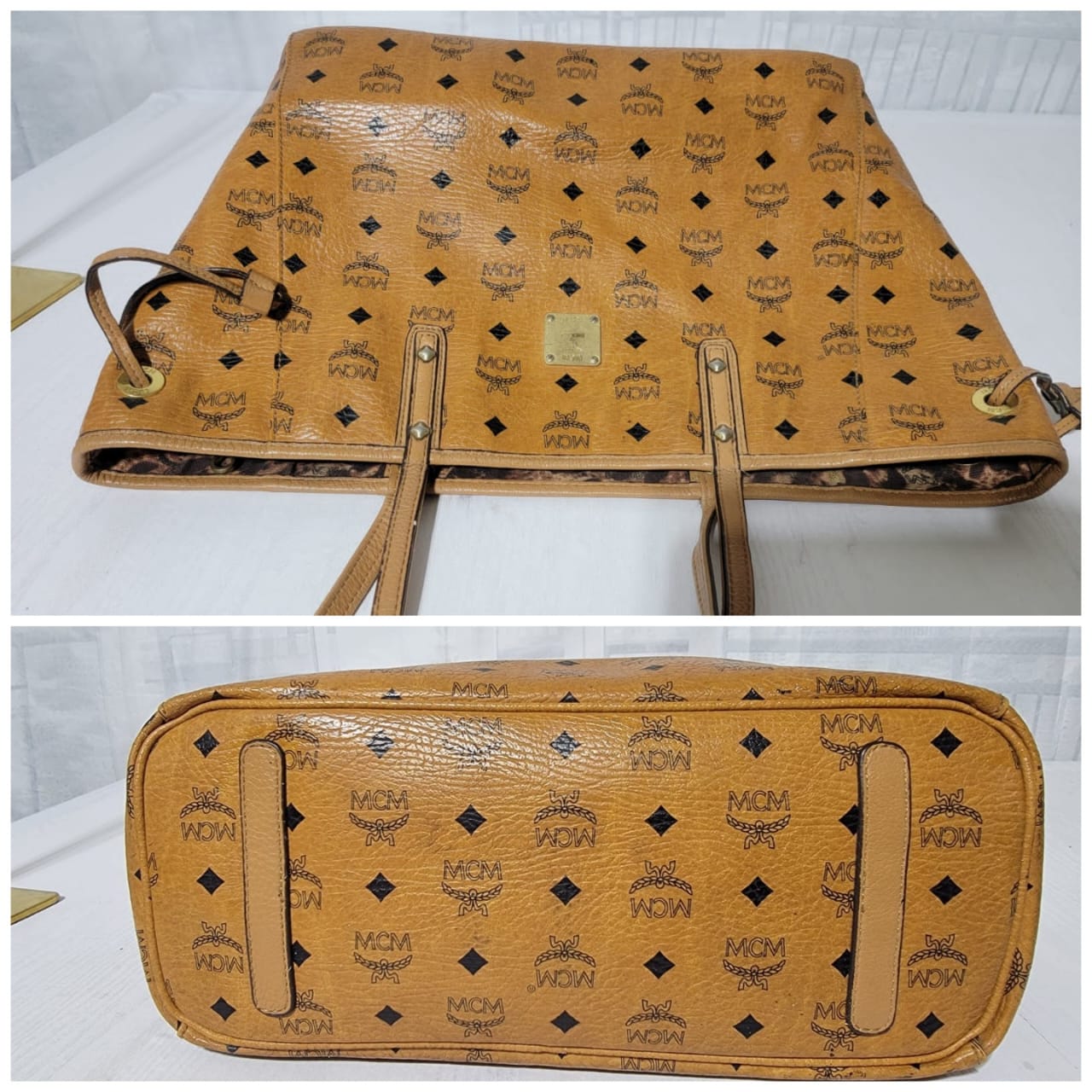 This authentic MCM Visetos Coated Canvas Project Reversible Shopper Tote Cognac is in it’s good pre-owned condition. The exterior is clear and beautiful. Interior is clean. Gold hardware shows rubbing.