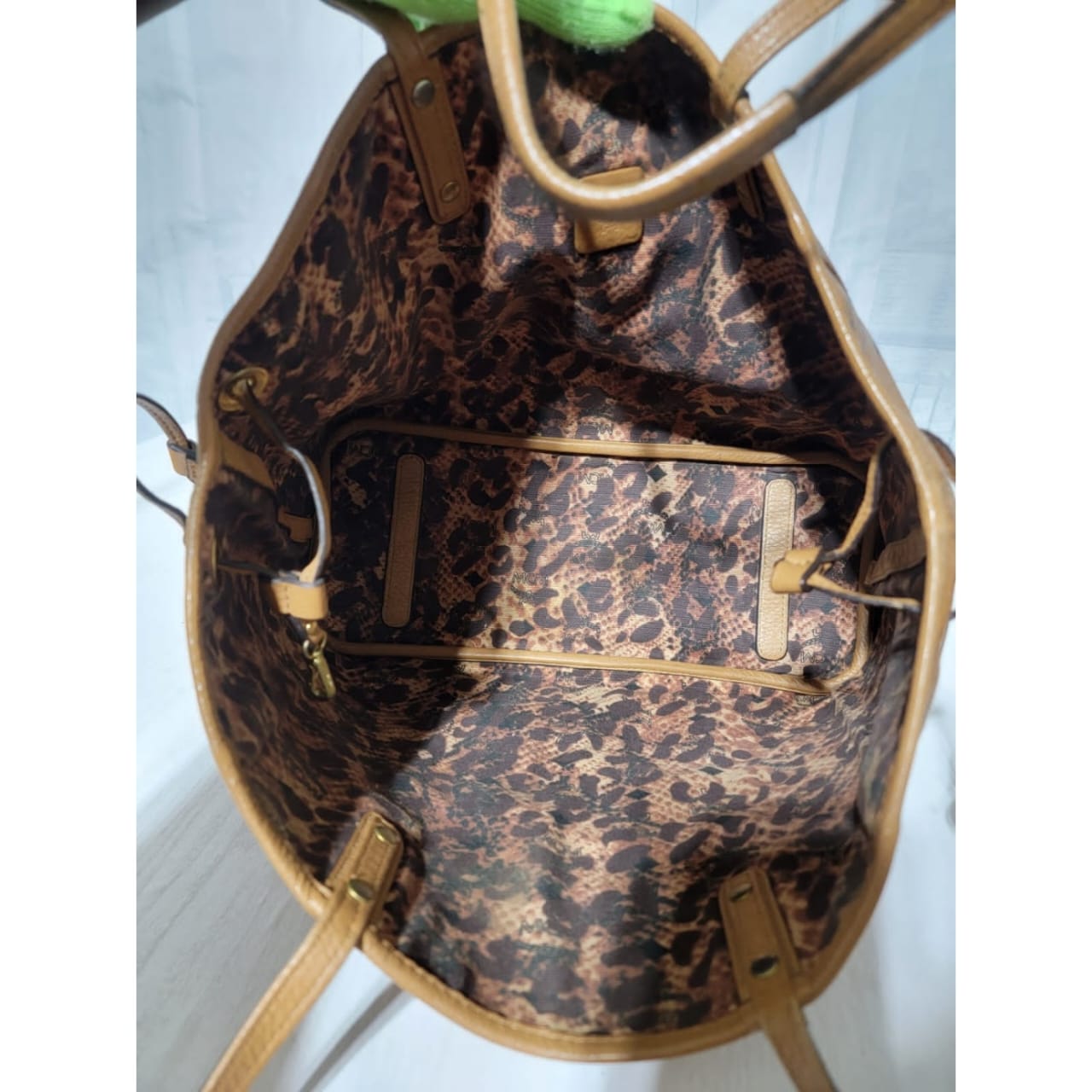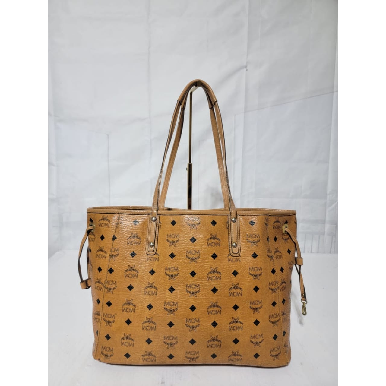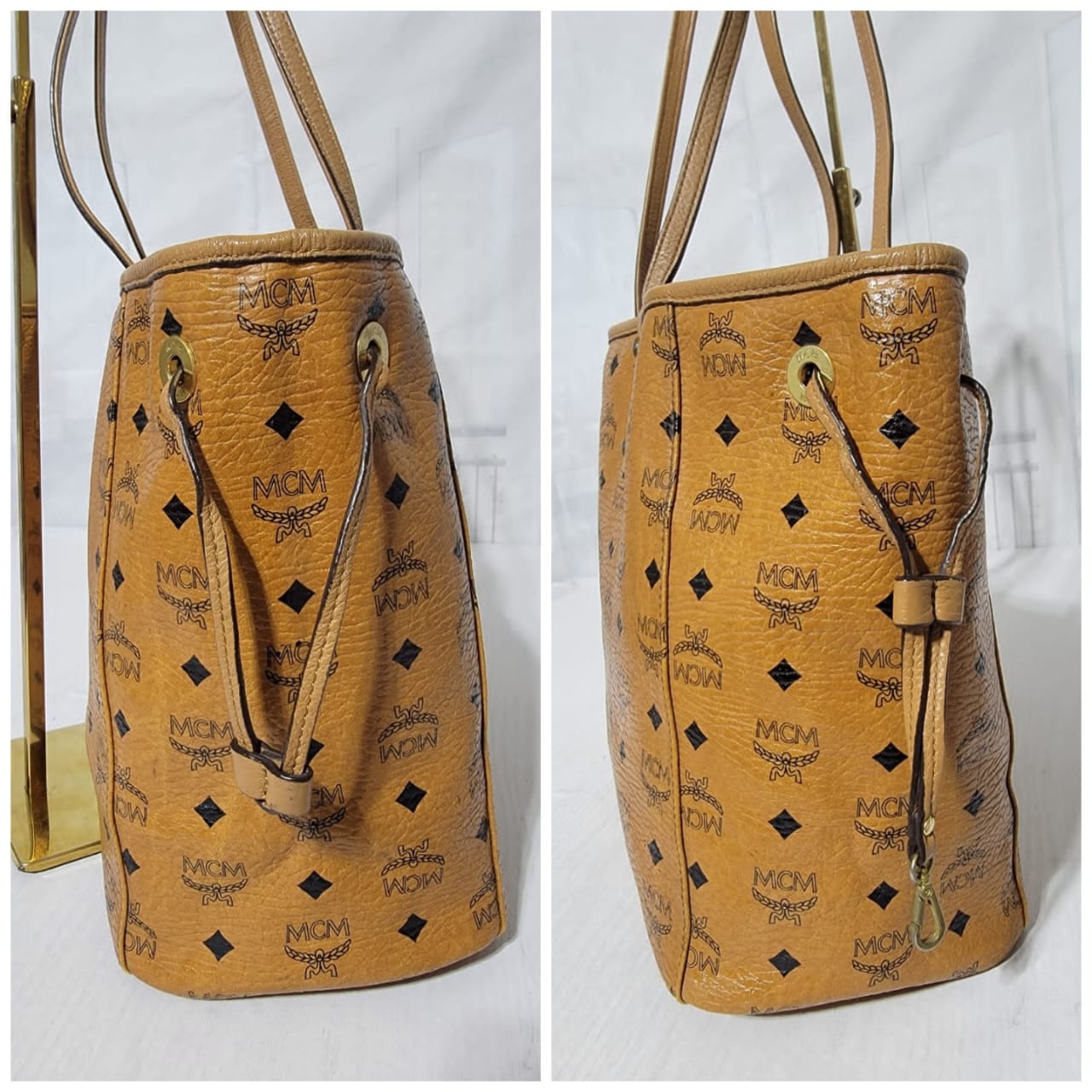 This authentic MCM Visetos Coated Canvas Project Reversible Shopper Tote Cognac is in it’s good pre-owned condition. The exterior is clear and beautiful. Interior is clean. Gold hardware shows rubbing.