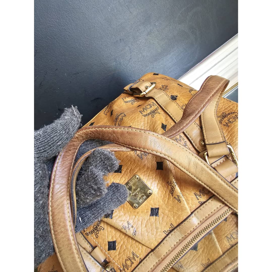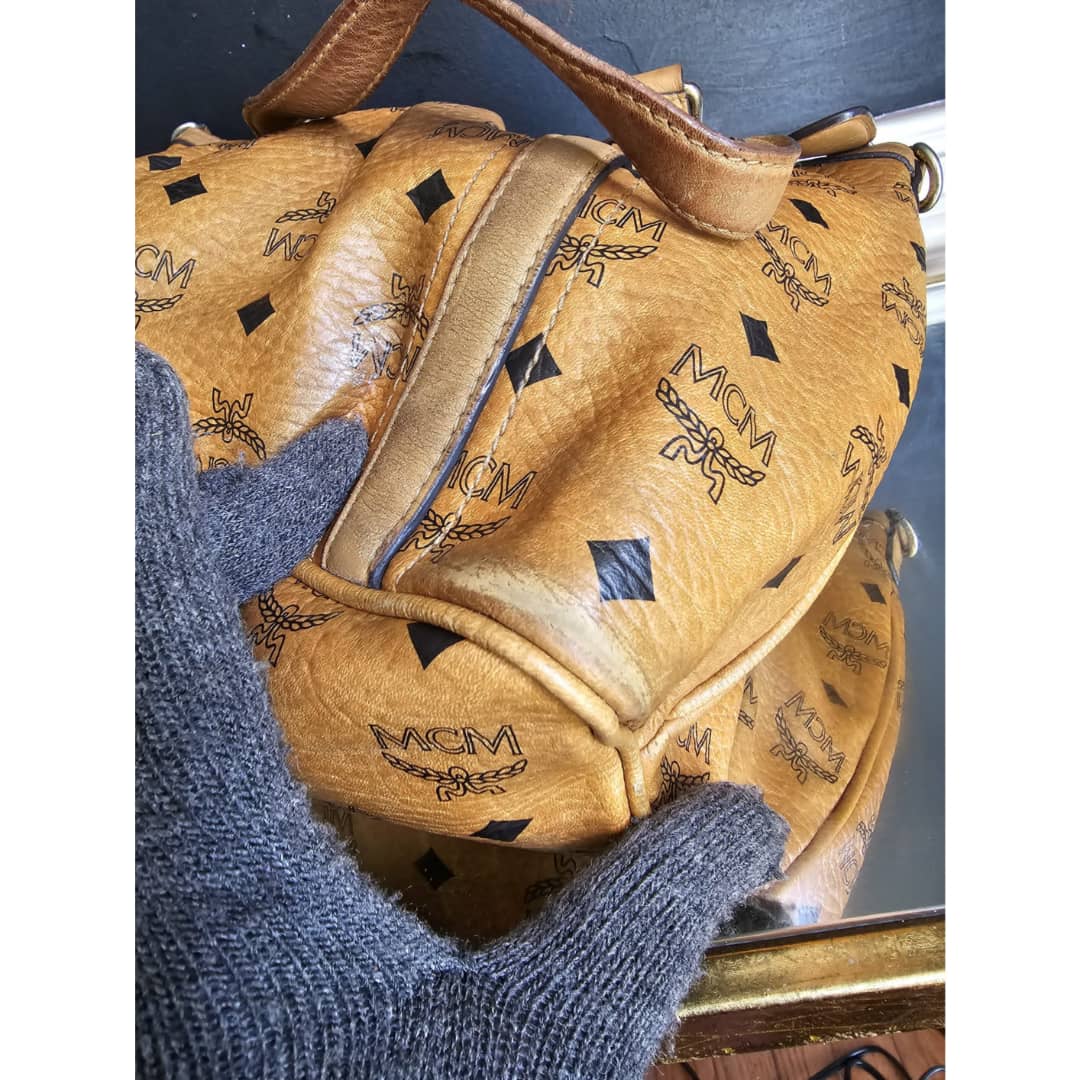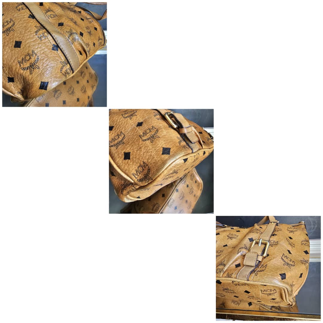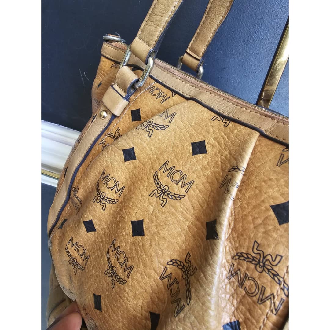 This authentic MCM Visetos PVC Handbag/Shoulder Bag Brown is in it’s good pre-owned condition. The exterior leather is clean and beautiful, shows some wear at the pleated corner of the bag. Handle shows some rubbing. Interior is clean. Gold hardware. No long strap but a chain strap can be added.